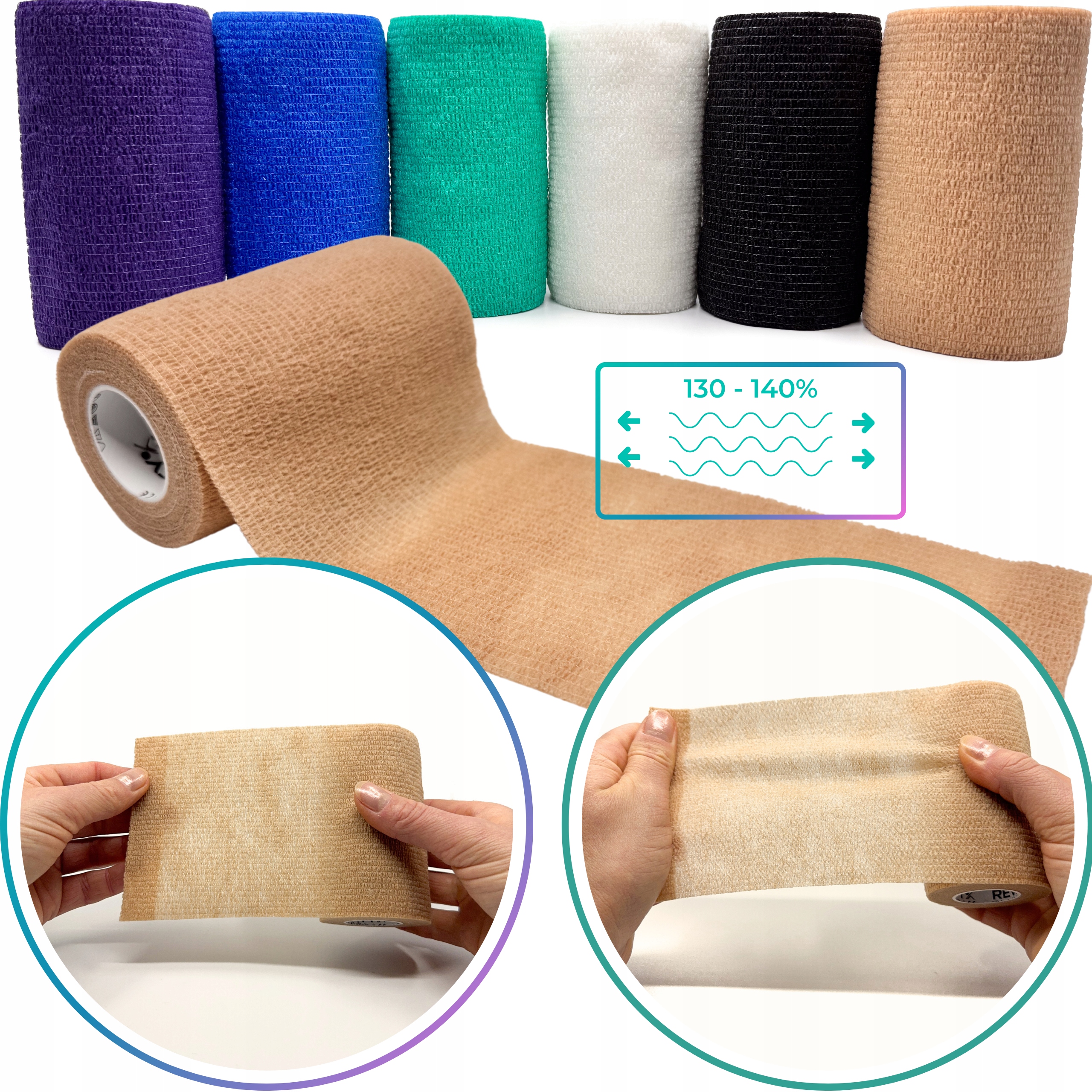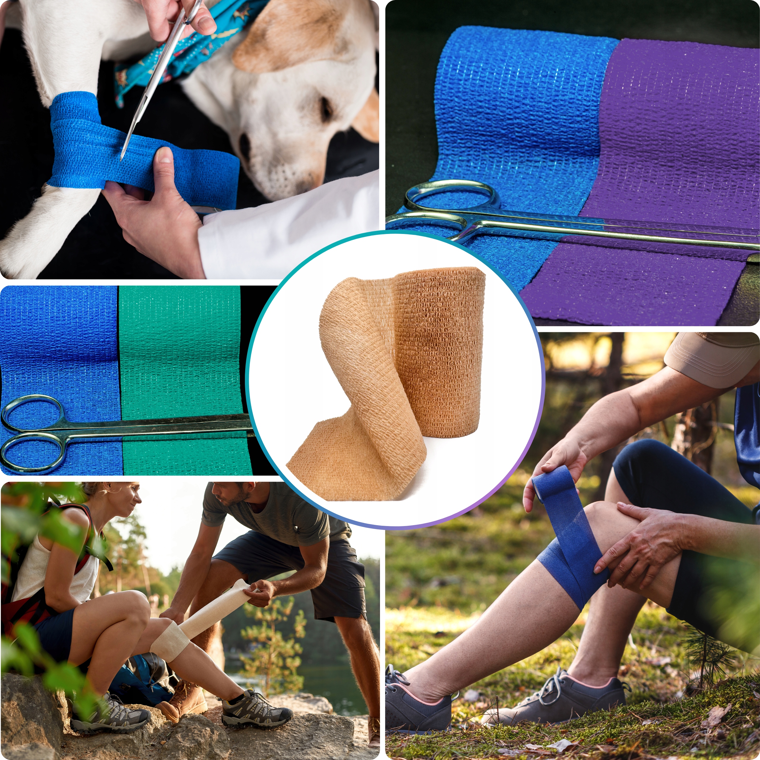 DLA LUDZI I ZWIERZĄT — komfortowe bandażowanie bez przyklejania do skóry/sierści.