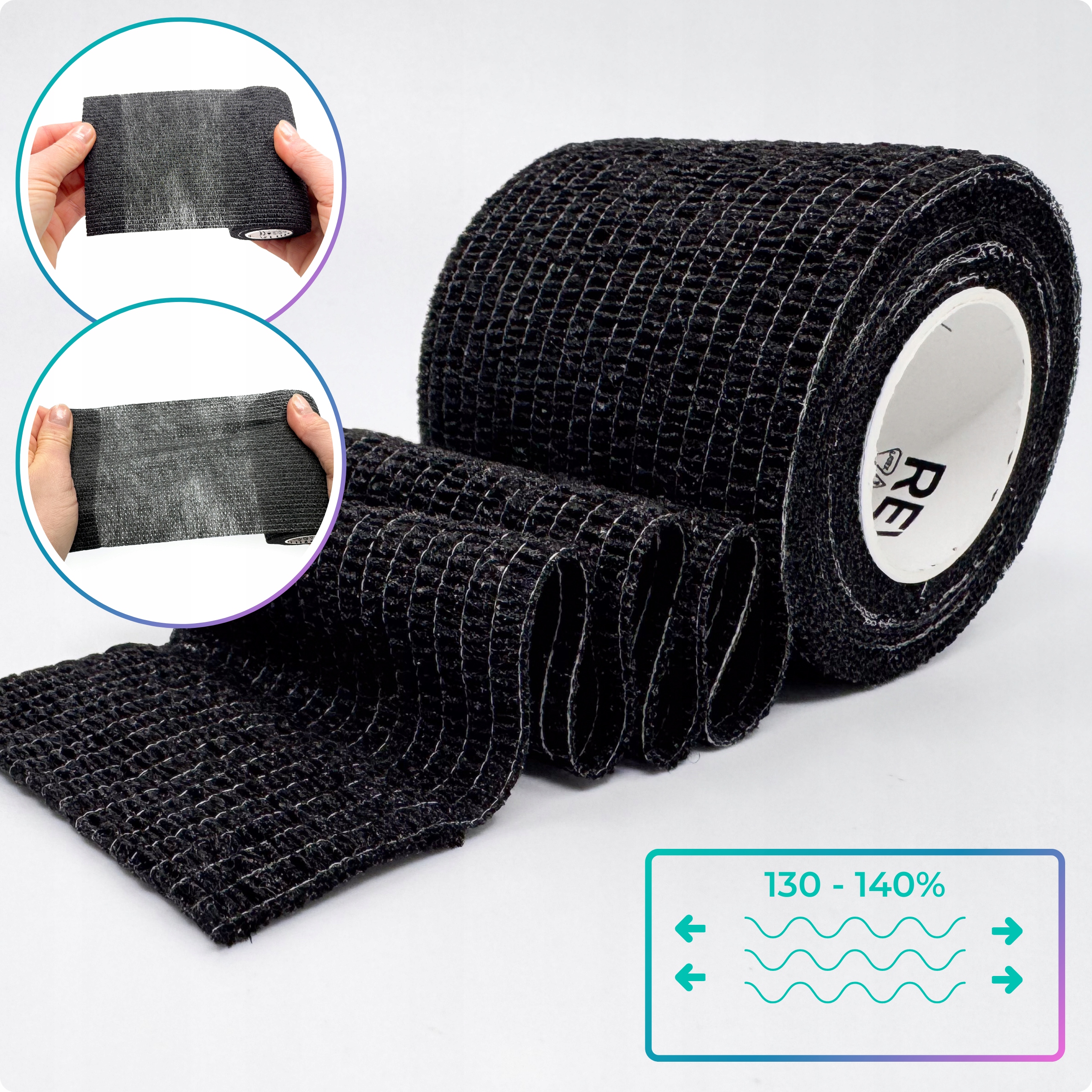 ✅ KOHEZYJNY I ODDYCHAJĄCY — przylega do siebie, skóra „oddycha”, nie nasiąka wodą.