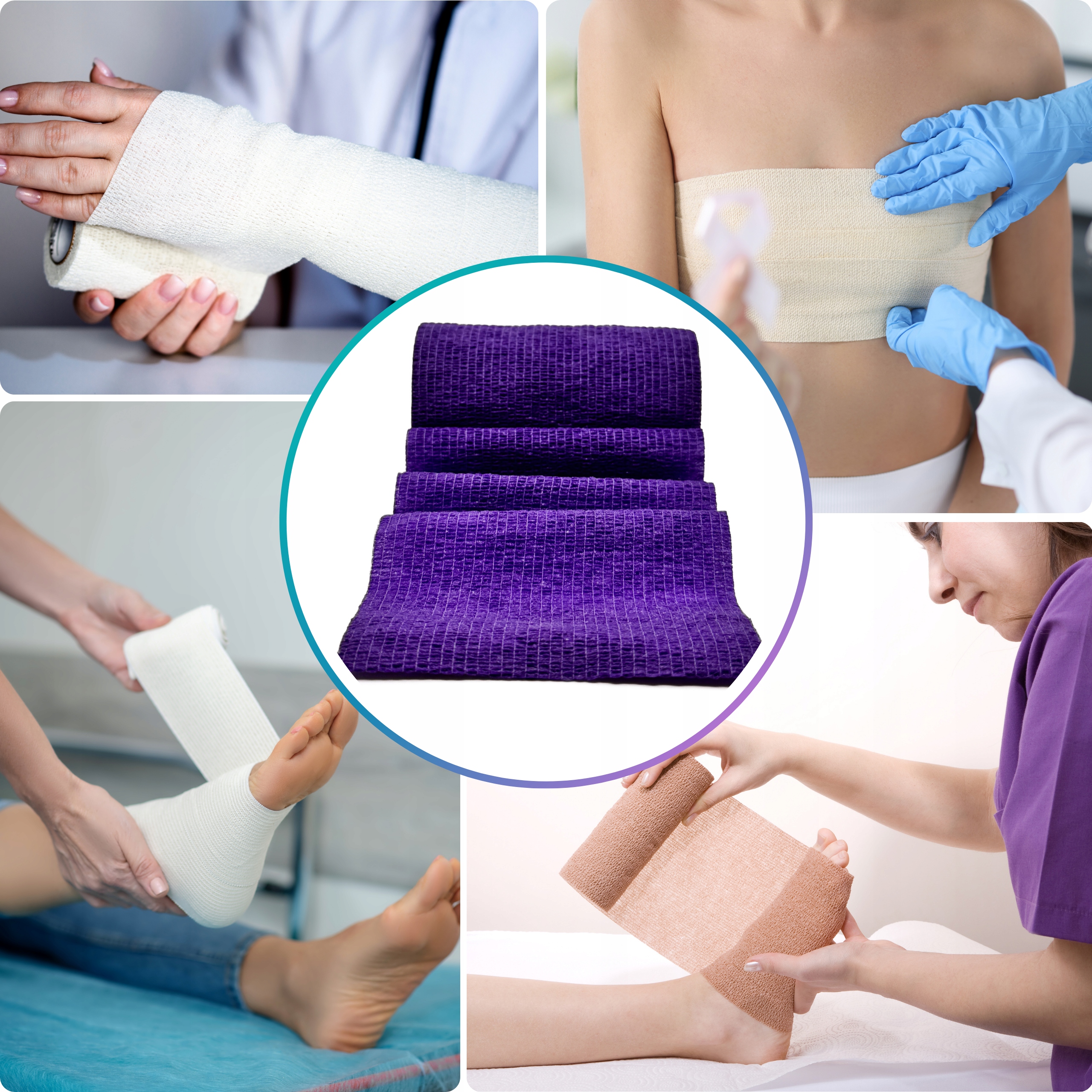 Medycyna: opatrunki podtrzymujące, unieruchamianie oraz stabilizacja miejsc wymagających kompresji.