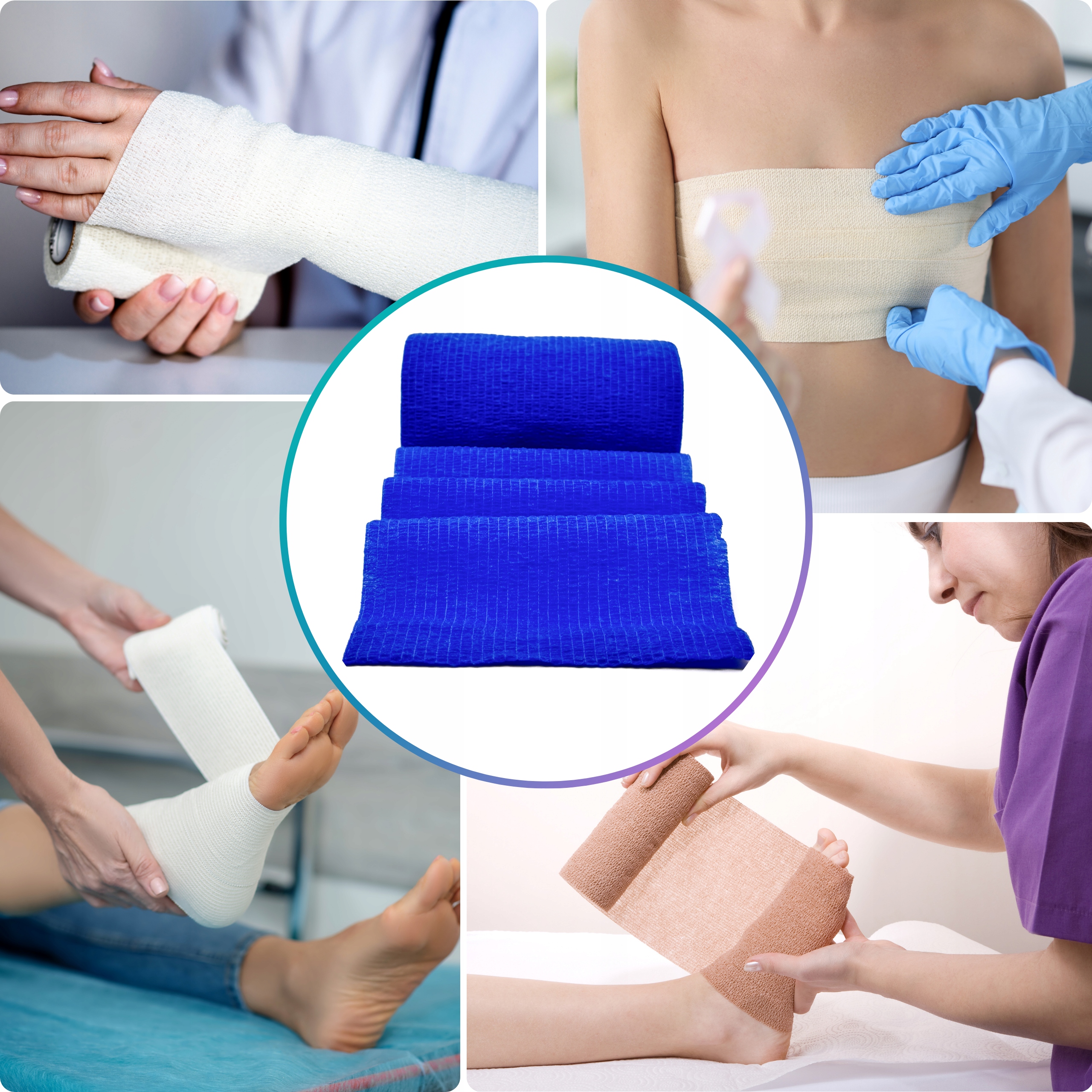 • Medycyna: opatrunki podtrzymujące, unieruchamianie oraz stabilizacja miejsc wymagających kompresji.