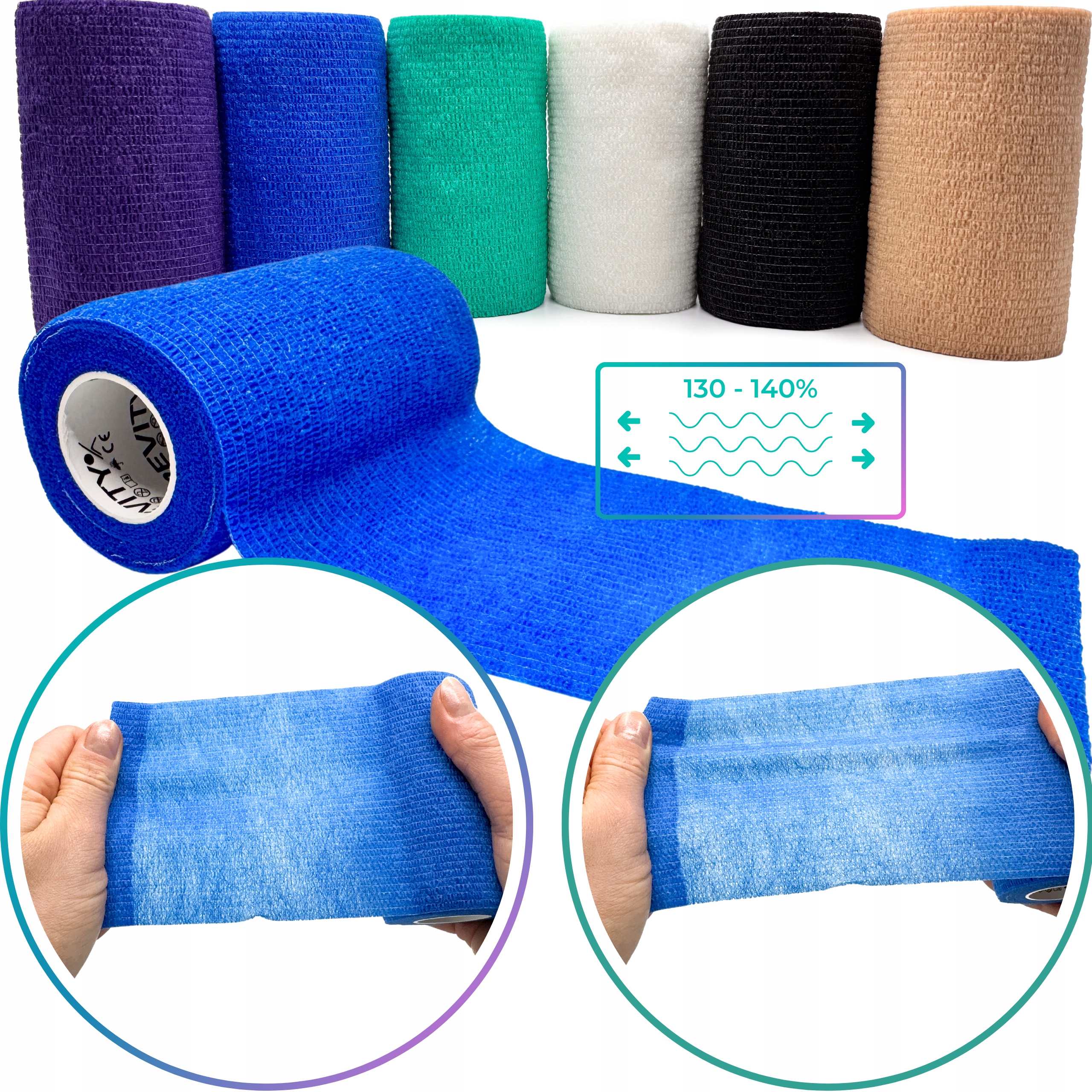 DLA LUDZI I ZWIERZĄT — komfortowe bandażowanie bez przyklejania do skóry/sierści.