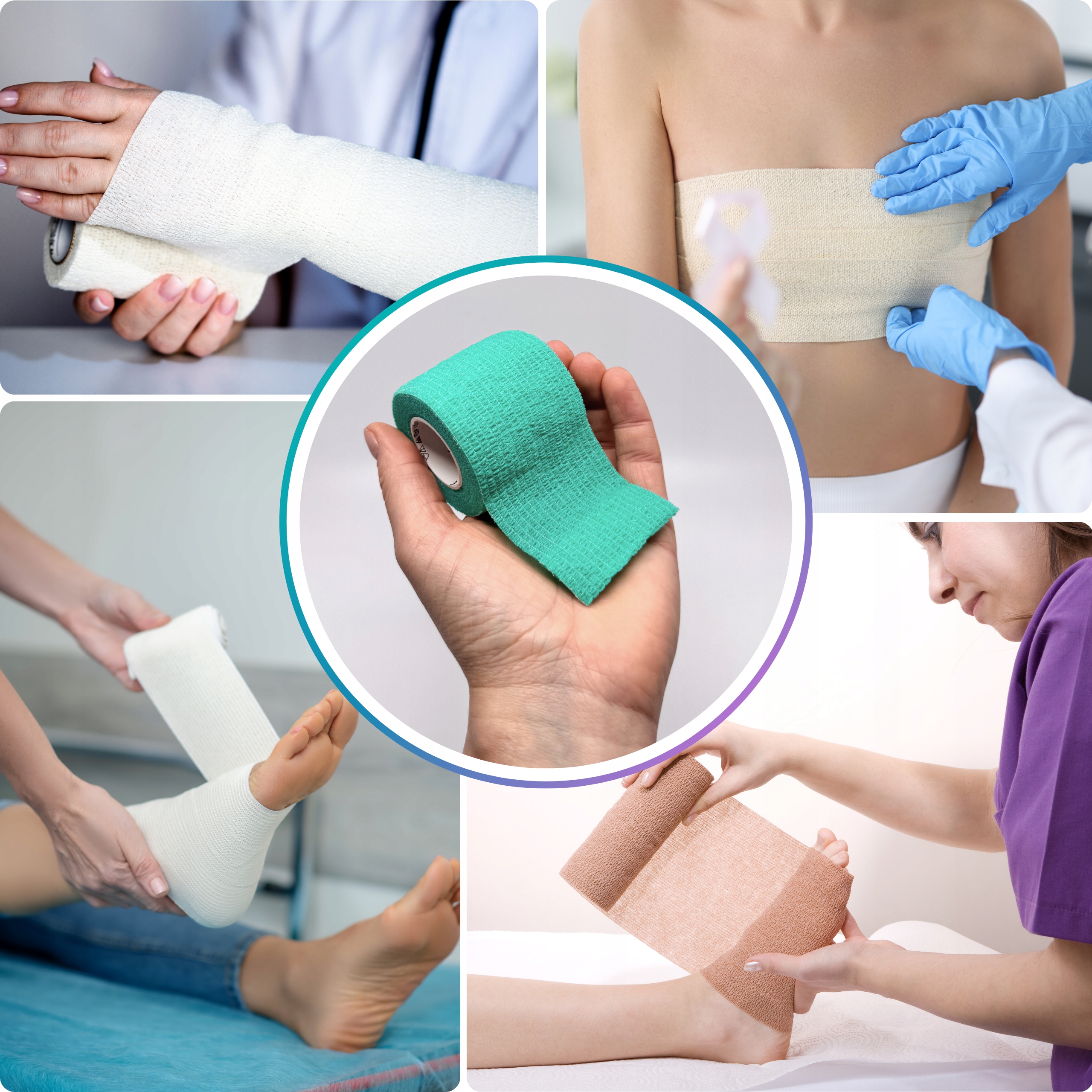 Medycyna: opatrunki podtrzymujące, unieruchamianie oraz stabilizacja miejsc wymagających kompresji.