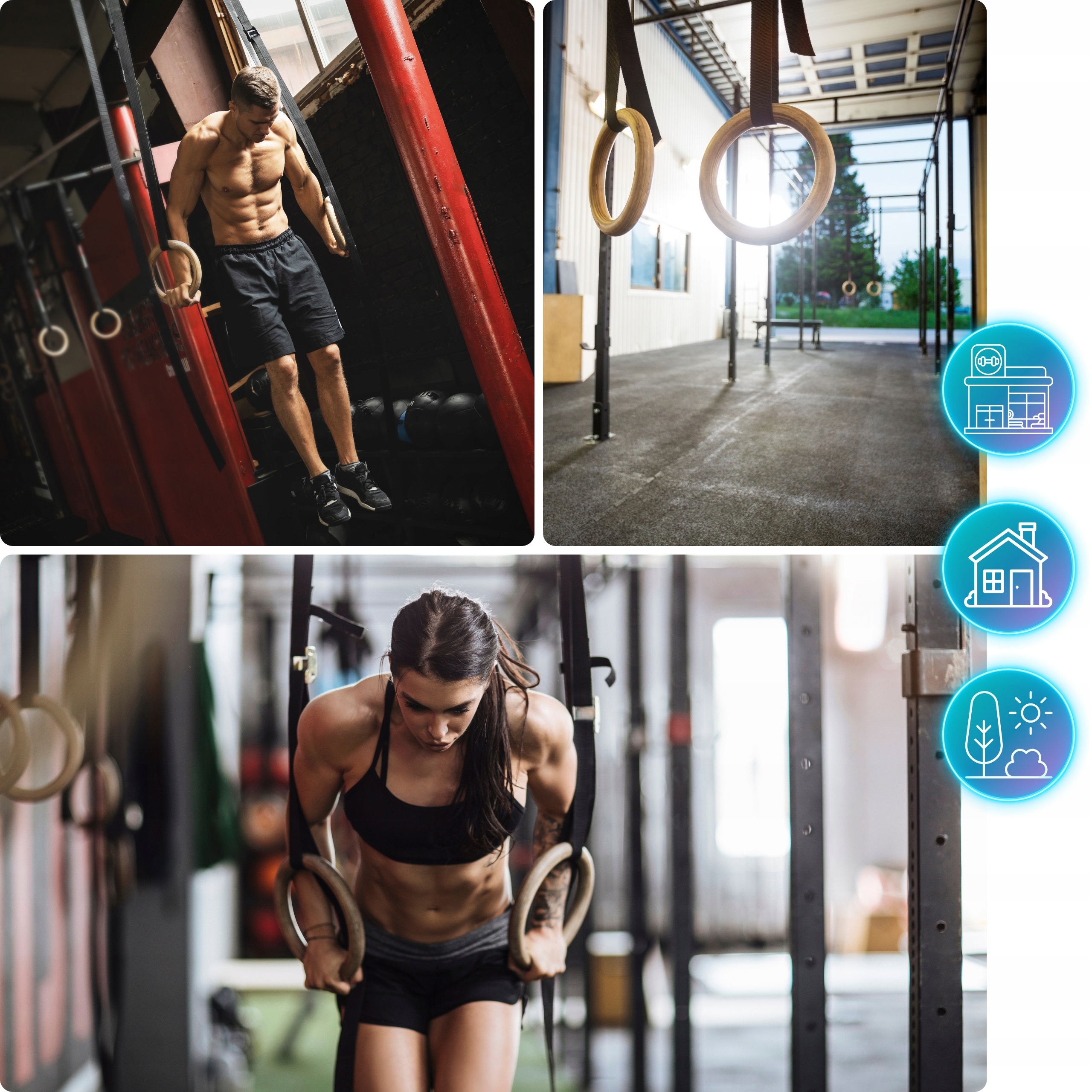 ✅Koła są super lekkie, a pozwijane i umieszczone w worku możesz z łatwością zabrać ze sobą na trening na siłowni, w plenerze lub sali fitness. Nic nie stoi również na przeszkodzie, aby rozłożyć swój zestaw w domu zaczepiając je o drążek, futrynę drzwi, drewnianą belkę dachu czy innego typu mocowanie np. GRAVITY HOOK dostępny u nas w innej ofercie.