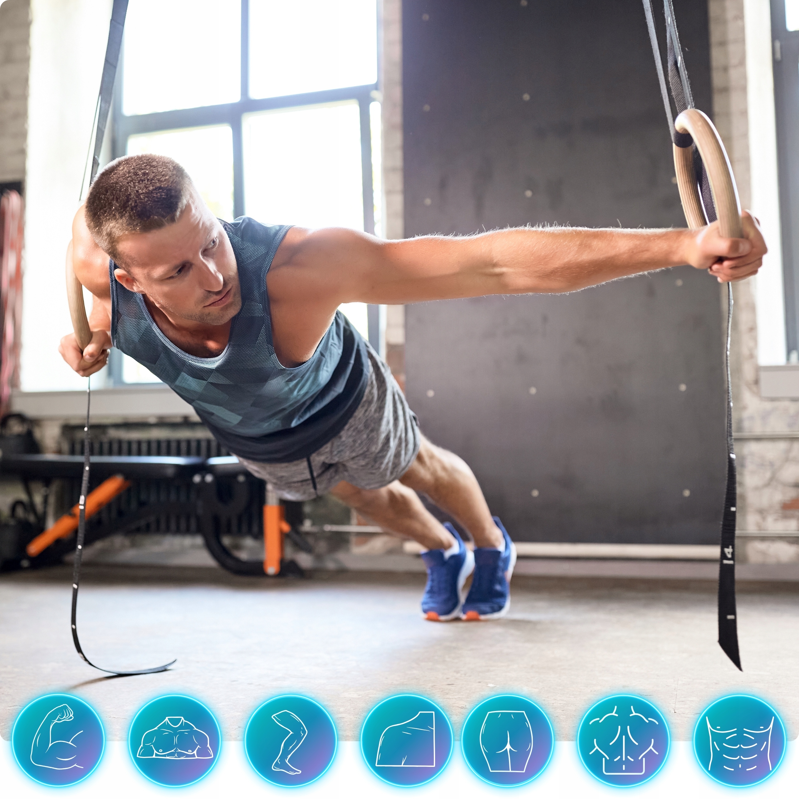 ✅ Pasy nośne - 2 szt. - Zalecamy, aby dla bezpieczeństwa waga użytkownika nie przekraczała 150 kg, jednak pasy mają znacznie wyższą nośność (nawet 500 kg przy statycznym obciążeniu), więc możesz ćwiczyć bez obaw