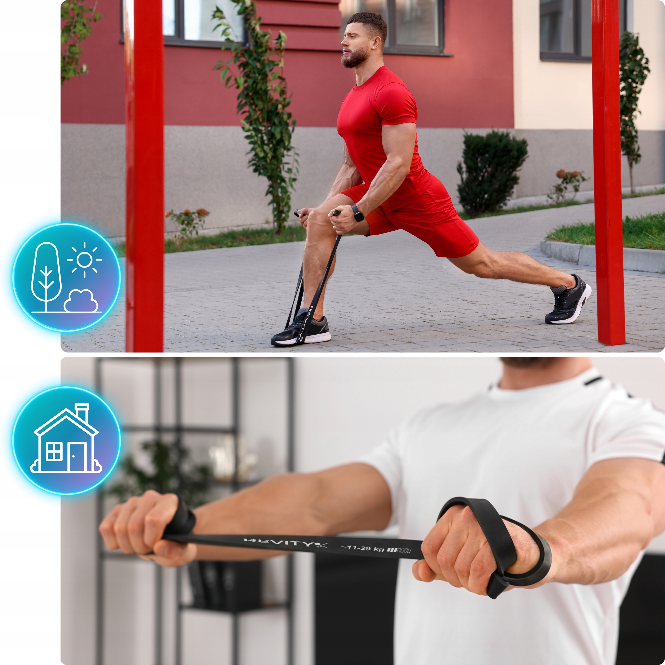 Gumy do ćwiczeń Power Band A+ marki REVITY to ulepszona wersja taśm oporowych Power Band wykonana z najwyższej jakości naturalnego lateksu Gumy przeznaczone są do treningu fitness, oporowego, crossfit. Mają formę zamkniętych pętli, są niewielkie dlatego można je ze sobą zabrać w zasadzie wszędzie. Nasze gumy wykorzystywane są również przez fizjoterapeutów podczas terapii oraz bezpośrednio przez użytkowników w domach do rozciągania i mobility oraz powrot do formy po kontuzji. Odpowiednio stosowane przybliżają Cię do Twoich celów treningowych i zdrowotnych. Mają bardzo uniwersalne zastosowanie. Potocznie nazywamy je grubymi gumami :)
