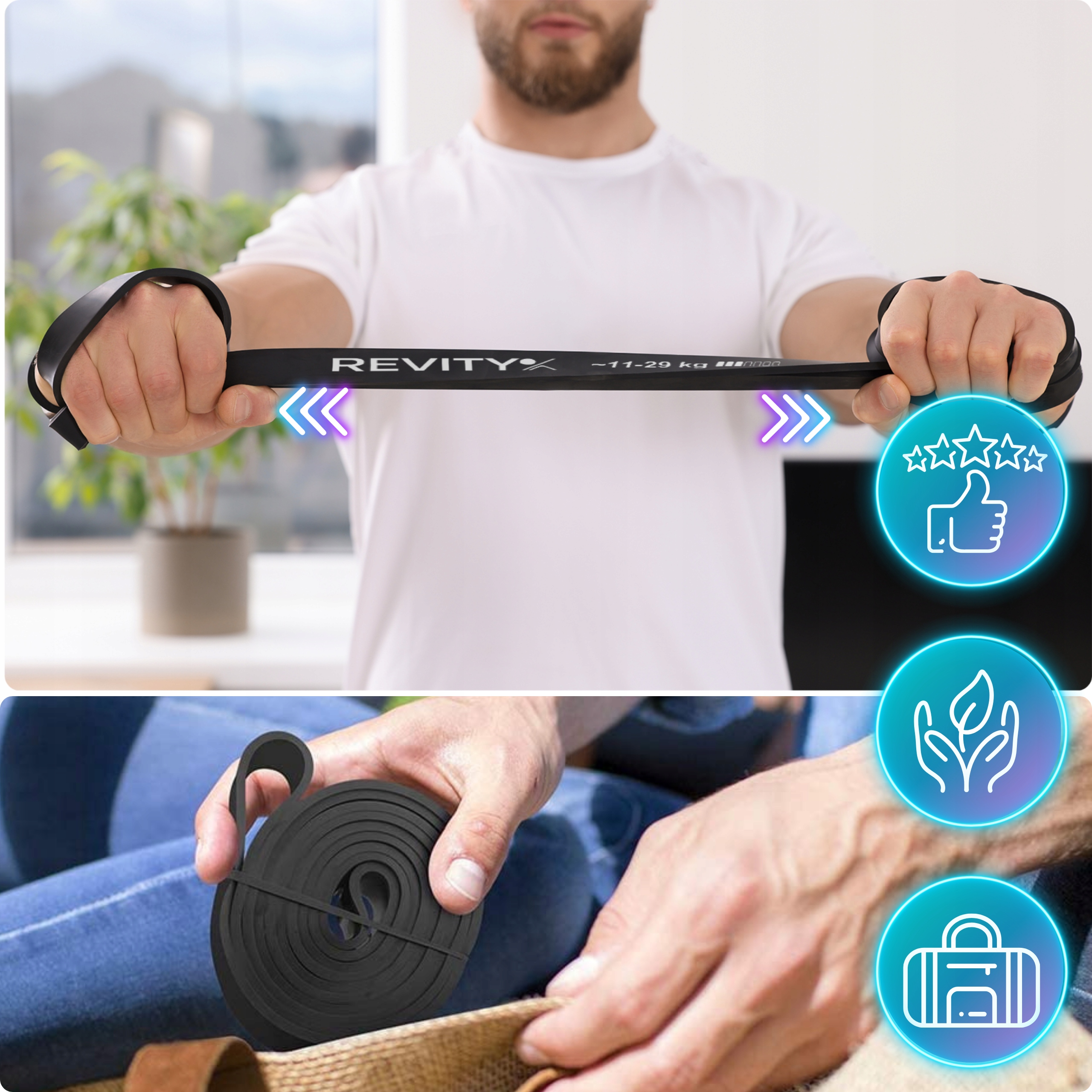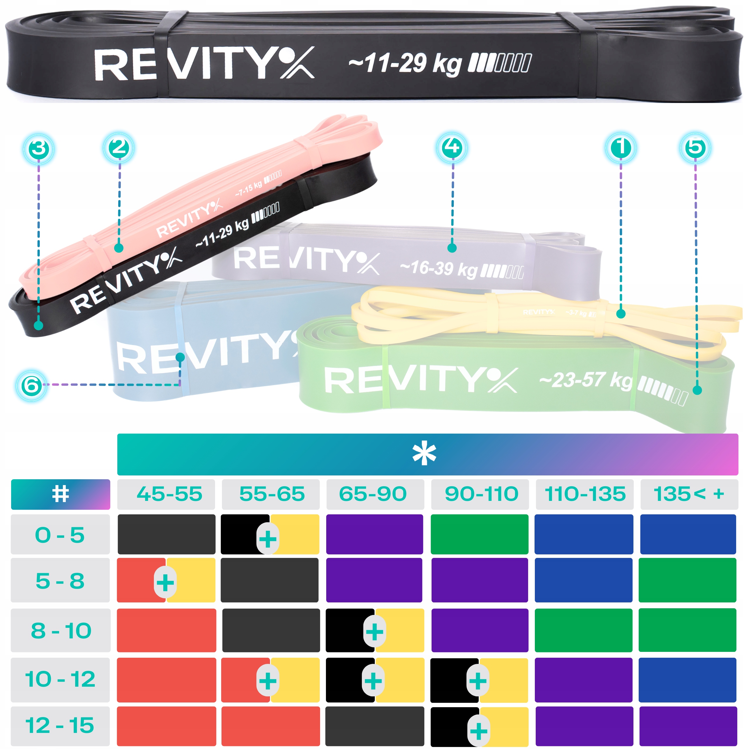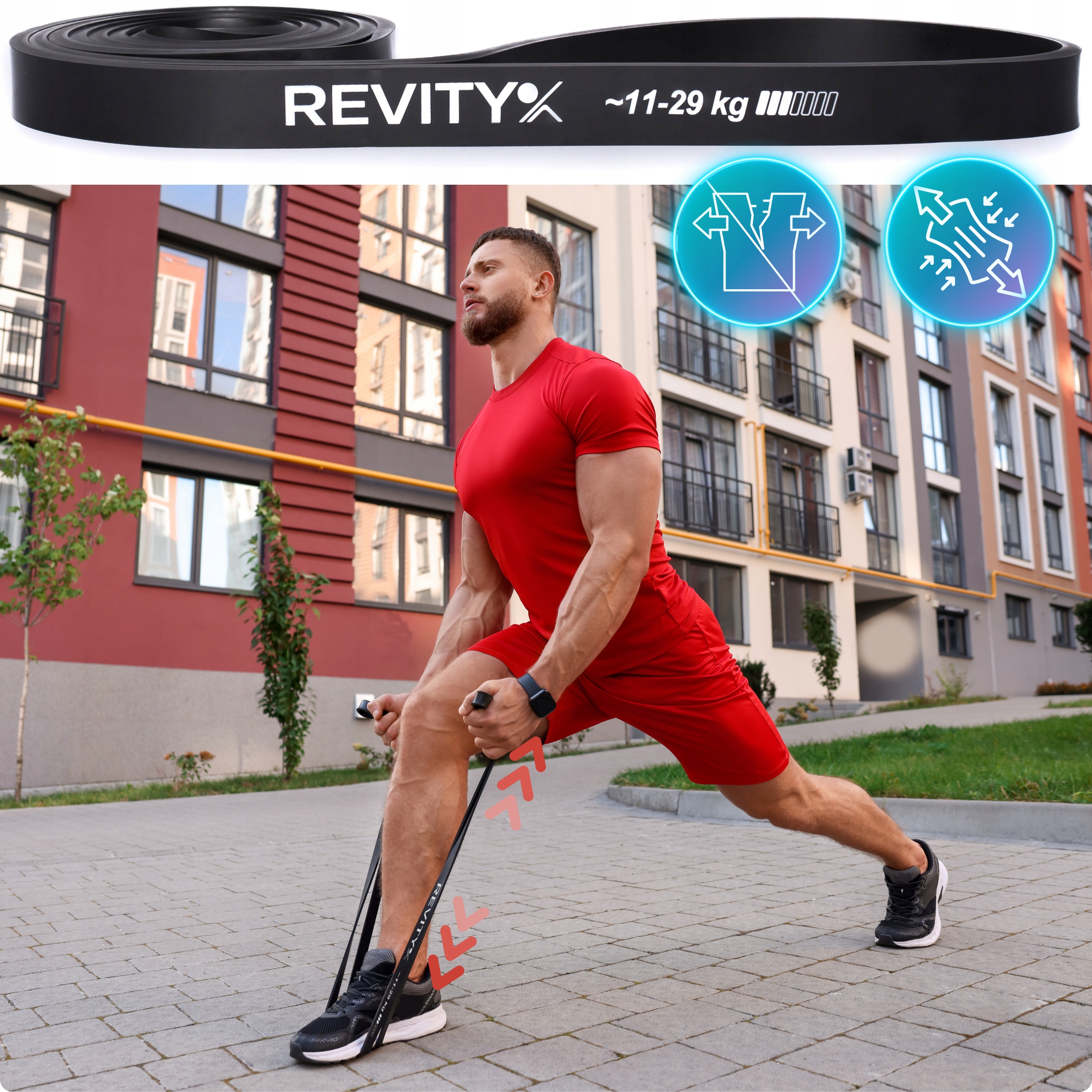 ✅ CZYTELNE OZNACZENIA – Na powierzchni gumy sportowej znajduje się wyraźne oznaczenie poziomu oporu oraz logo marki Revity. Dzięki temu podczas treningu łatwo rozpoznasz właściwą taśmę – szczególnie gdy pracujesz z zestawem gum o różnej sile oporu.