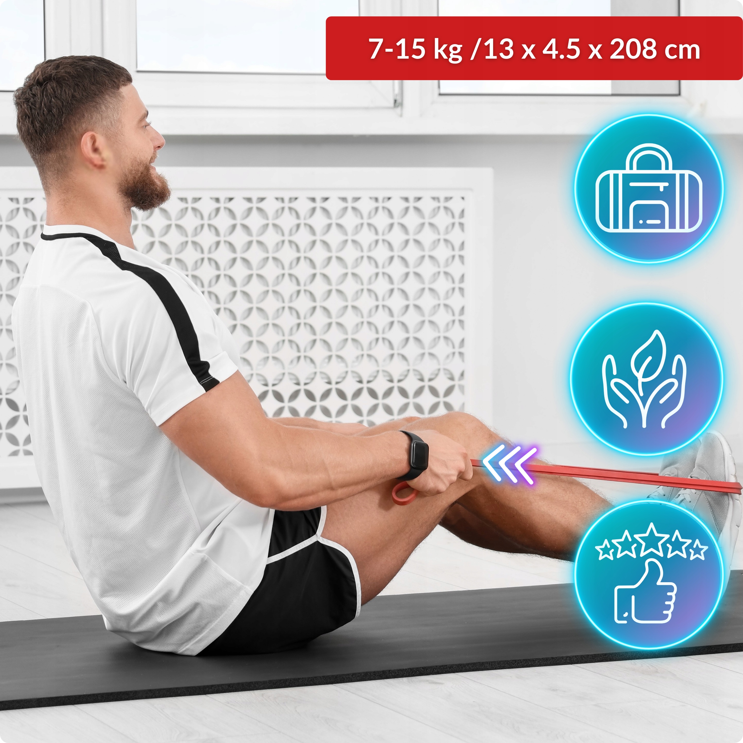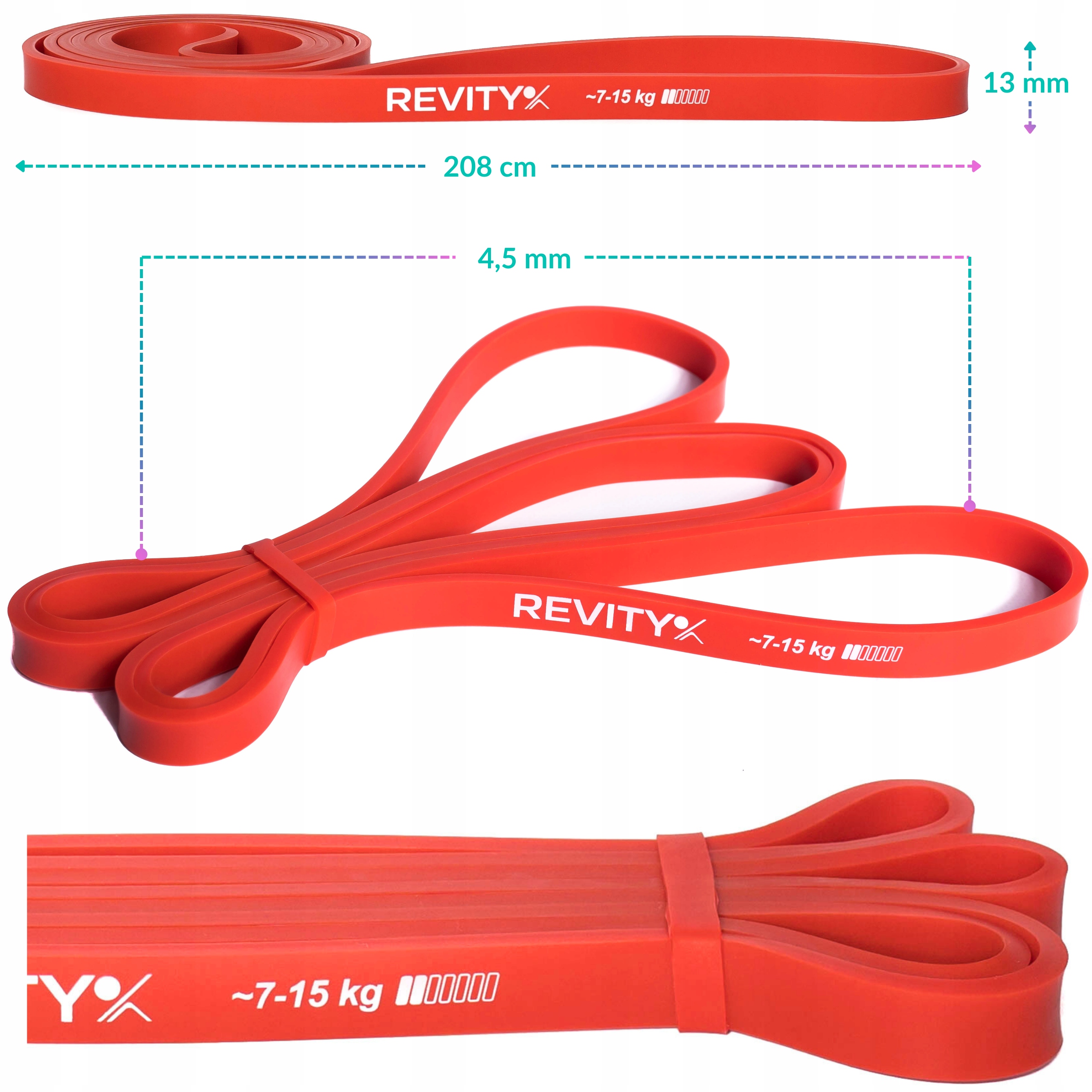 ➡️ Kolor czerwony, grubość 13 mm, opór 7-15 kg, długość pętli 208 cm