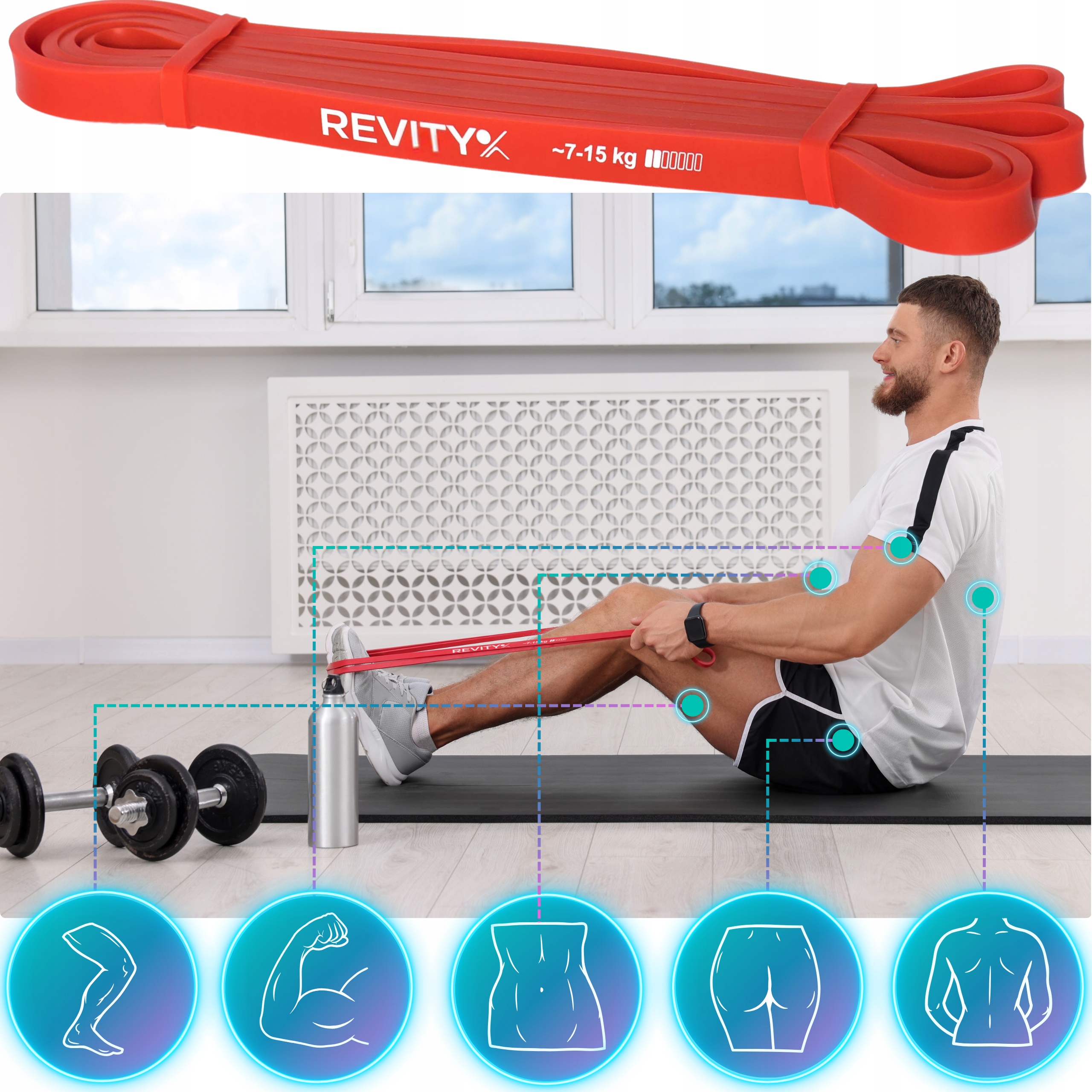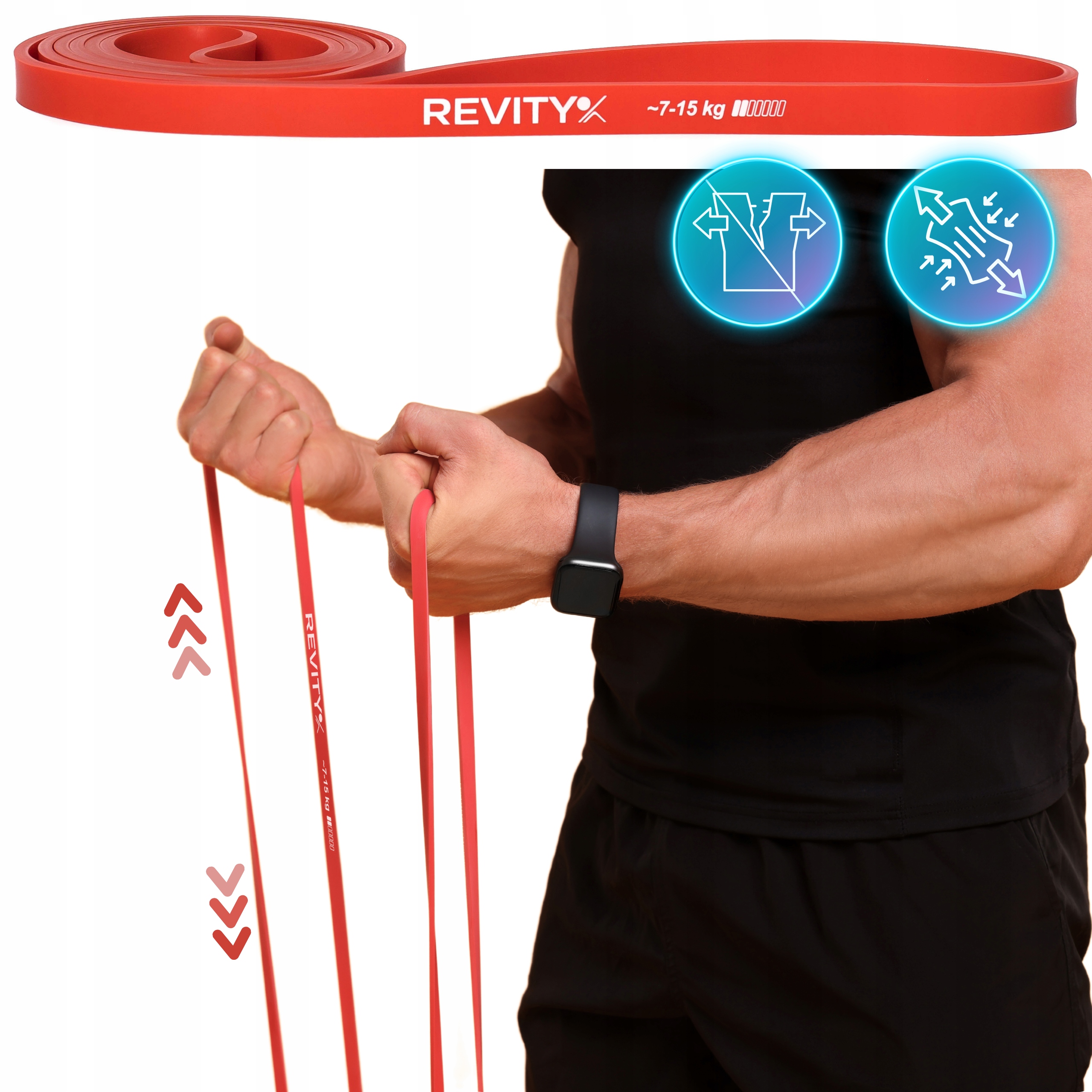 Gumy do ćwiczeń Power Band A+ marki REVITY to ulepszona wersja taśm oporowych Power Band wykonana z najwyższej jakości naturalnego lateksu Gumy przeznaczone są do treningu fitness, oporowego, crossfit. Mają formę zamkniętych pętli, są niewielkie dlatego można je ze sobą zabrać w zasadzie wszędzie. Nasze gumy wykorzystywane są również przez fizjoterapeutów podczas terapii oraz bezpośrednio przez użytkowników w domach do rozciągania i mobility oraz powrot do formy po kontuzji. Odpowiednio stosowane przybliżają Cię do Twoich celów treningowych i zdrowotnych. Mają bardzo uniwersalne zastosowanie. Potocznie nazywamy je grubymi gumami :)