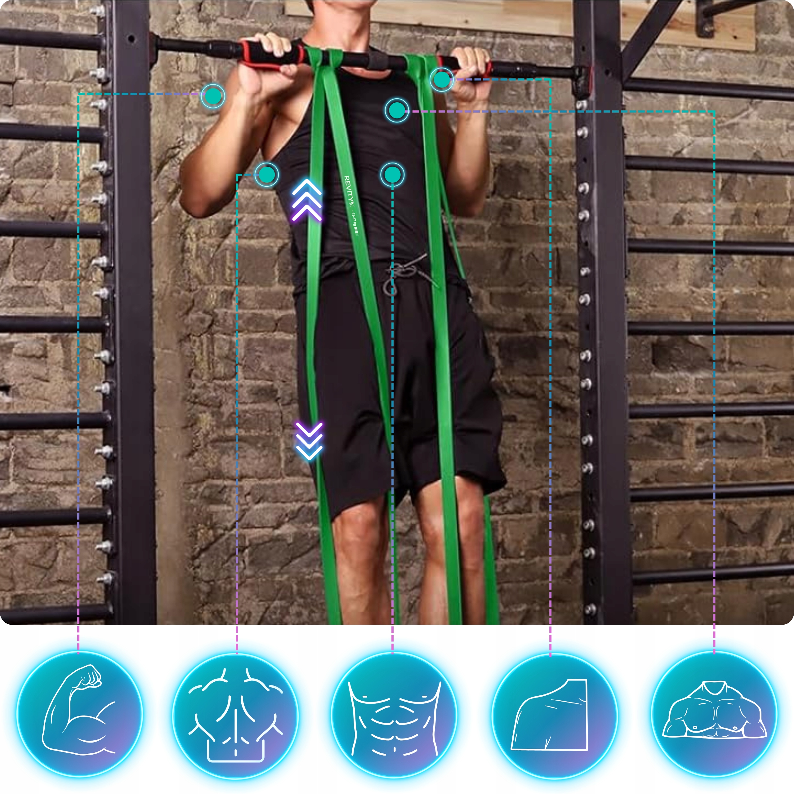 ✅ Guma nadaje się również do nauki i progresowania podciągania na drążku (w szczególności początkujący).