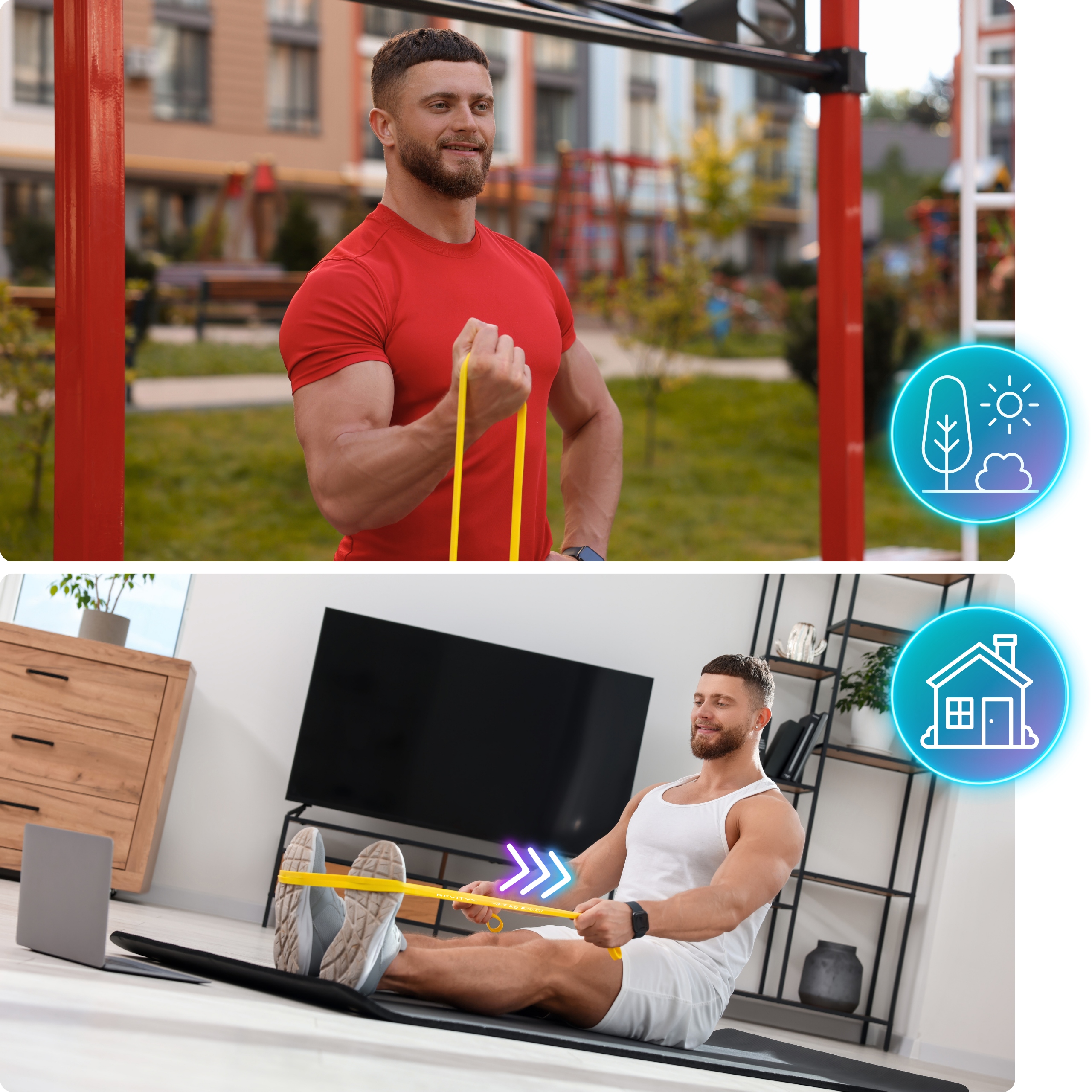Przykładowe ćwiczenia, które możesz wykonać z gumami treningowymi: