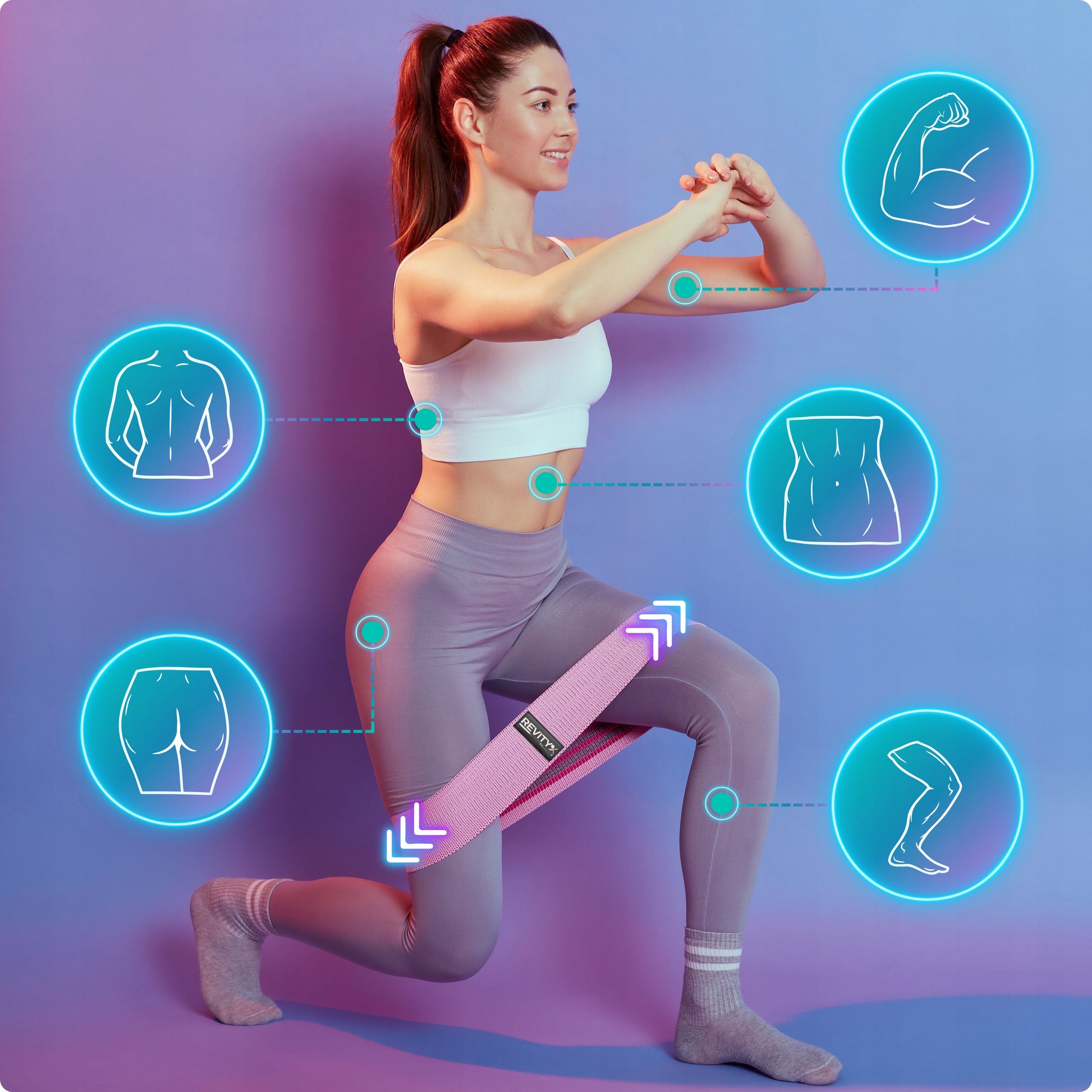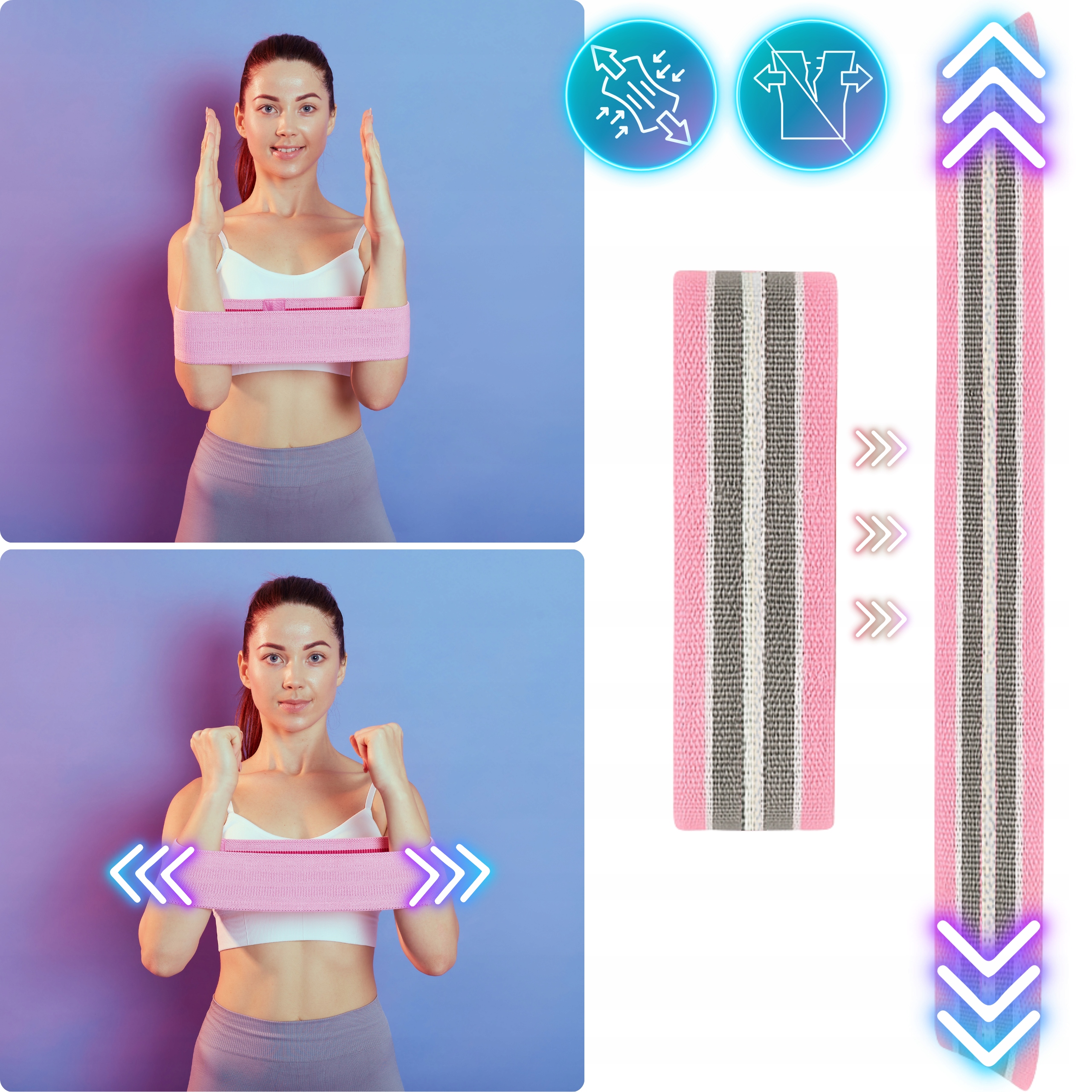 Materiałowe gumy do ćwiczeń nie ślizgają się, nie rolują, nie zsuwają, a także nie uciskają skóry. Są przyjemne dla ciała, nieuczulające i niepowodujące podrażnień.