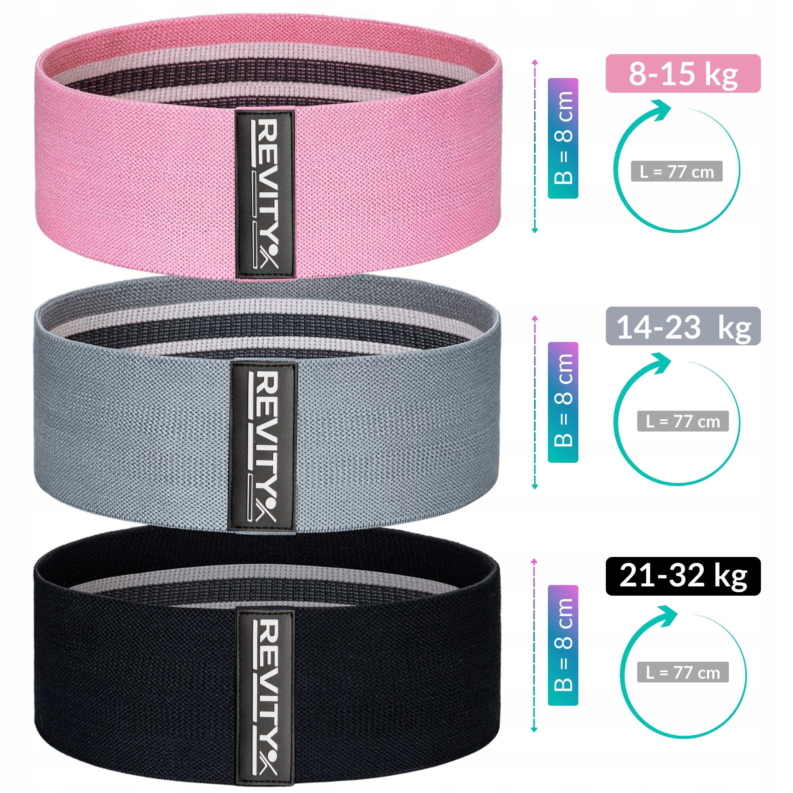 ✅ ZRÓŻNICOWANY OPÓR - zestaw 3 gum do ćwiczeń. Każda guma do ćwiczeń ma inny opór: 8-15 kg, 14-23 kg, 21-32 kg. Zróżnicowany opór pozwala na ciągłą progresję i stymulację pośladków do spalania tłuszczu i modelowania.