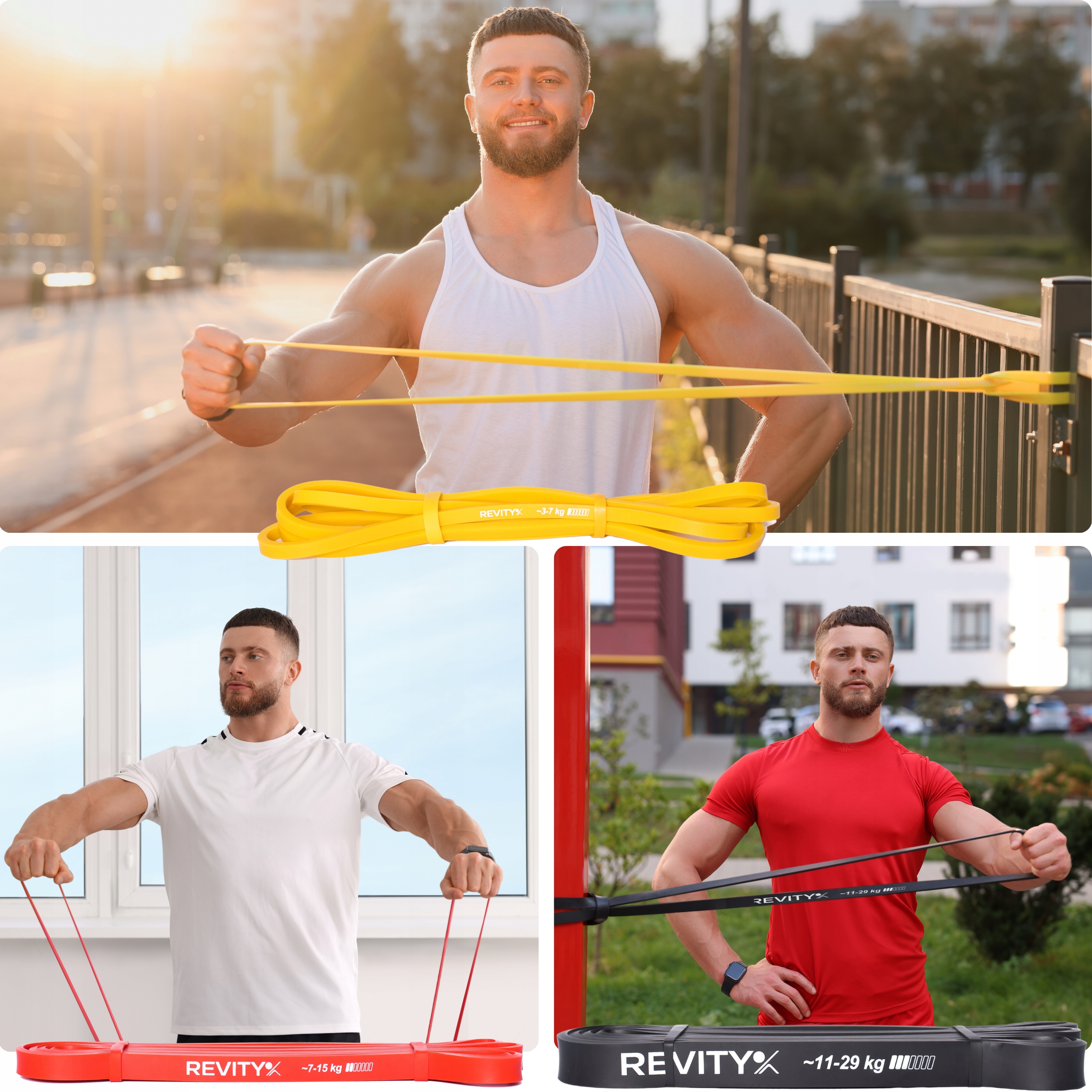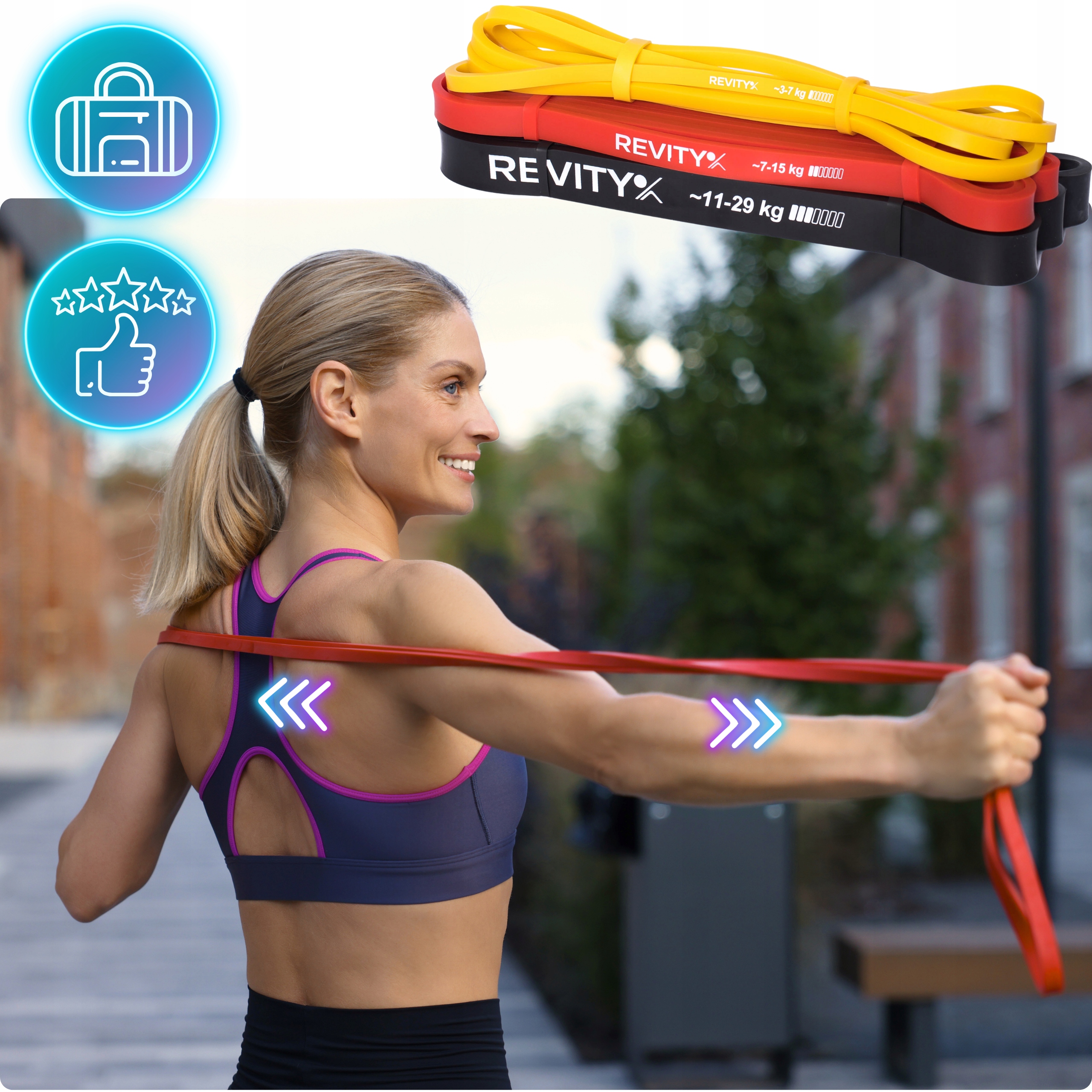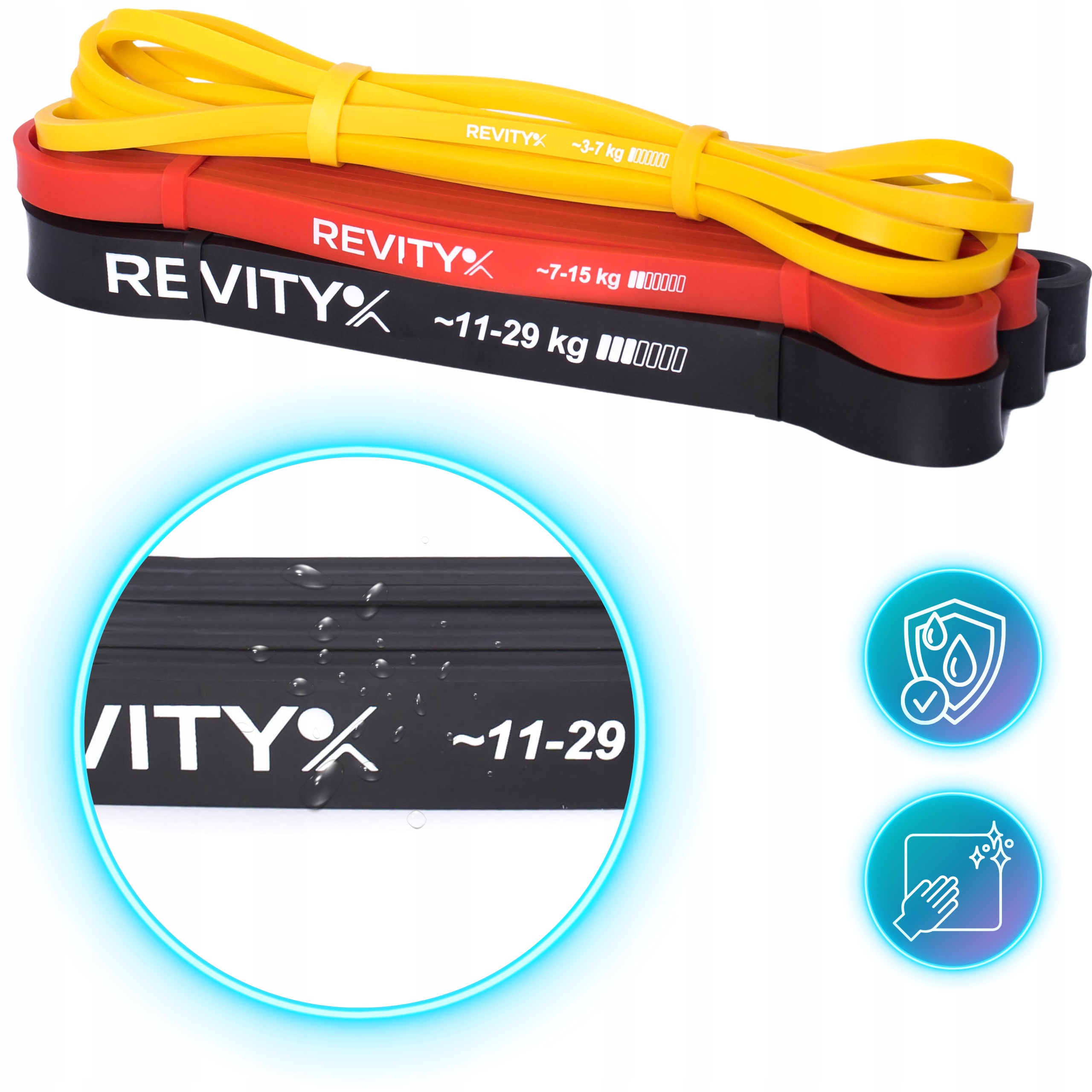 Gumy do ćwiczeń Power Band A+ marki REVITY to ulepszona wersja taśm oporowych Power Band wykonana z najwyższej jakości naturalnego lateksu. Taśmy przeznaczone są do treningu fitness, oporowego, crossfit czy siłowego. Mają formę zamkniętych pętli, są niewielkie dlatego można je ze sobą zabrać w zasadzie wszędzie. Nasze gumy wykorzystywane są również przez fizjoterapeutów podczas terapii oraz bezpośrednio przez użytkowników w domach do rozciągania i mobility oraz powrotu do formy po kontuzji.