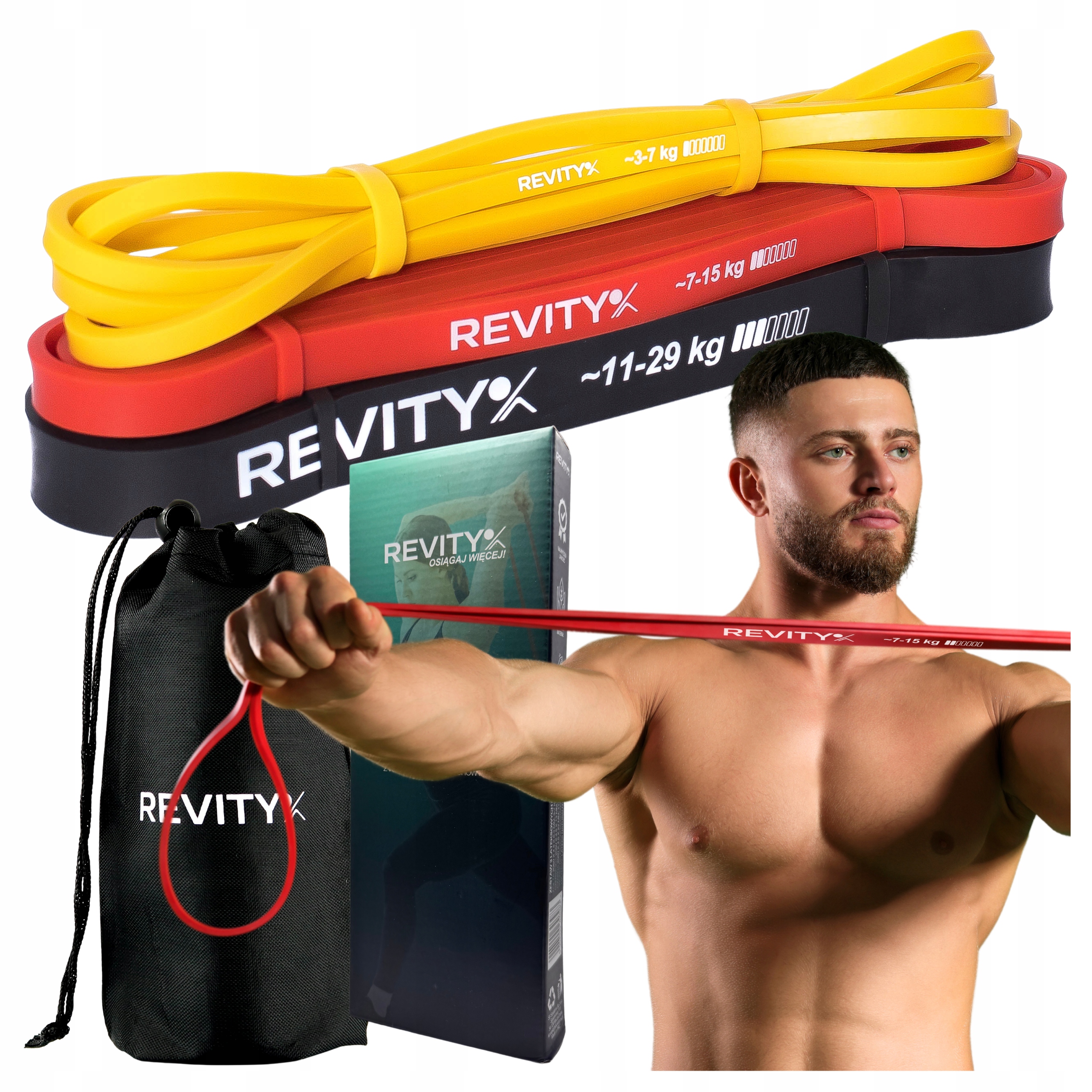 Gumy są polskiej marki REVITY. W swojej ofercie mieliśmy gumy do ćwiczeń jeszcze zanim inni popularni sprzedawcy je dorzucili do swojej oferty. Trenujemy z nimi niemal każdego dnia i wiemy o treningu z gumami niemalże wszystko (ale i tak cały czas się uczymy!). Gumy, które oferujemy powstają z najwyższej jakości naturalnego lateksu, nie śmierdzą, nie powodują alergii, nie pękają. Tysiące klientów przetestowało podstawową wersję POWER BANDS. Zaufaj ich opinii i wybierz jeszcze lepszą wersję A+, w której dopracowaliśmy opory oraz skupiliśmy się na tym, aby gumy nie traciły oporu po kilku treningach. Wytrzymują nawet 4x wydłużenie - zalecamy uważać przy takim wydłużeniu, opór znacząco przekracza maksymalny dla takiego wydłużenia. (PS. Zawsze możesz porównać nasze gumy z konkurencyjnymi i zostawić te, które bardziej Ci odpowiadają).