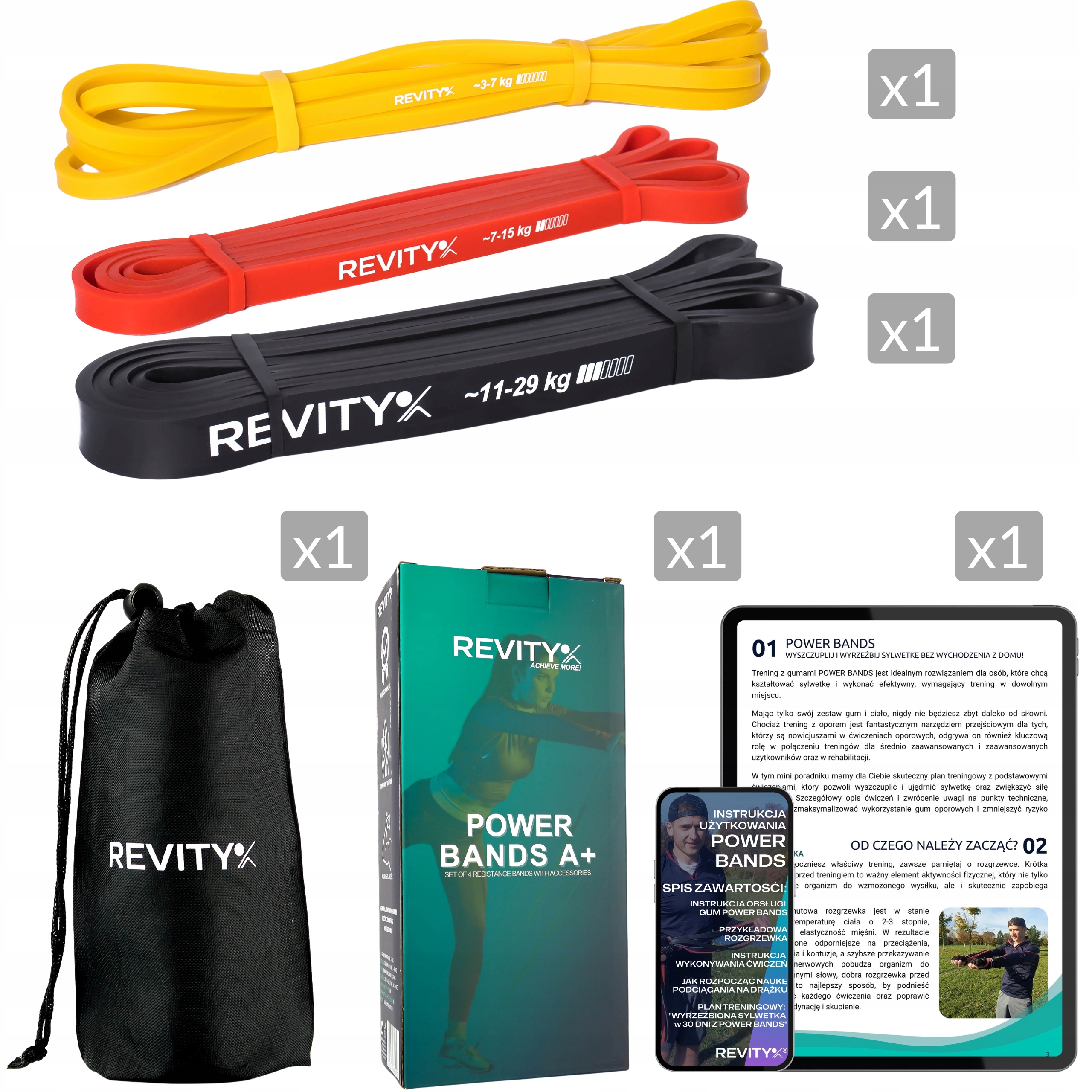 ✅ INSTRUKCJA W PDF - Wraz z gumami otrzymasz kompletną instrukcję wykonywania ćwiczeń, rozgrzewki oraz planami treningowymi w zależności od Twojego celu treningowego.