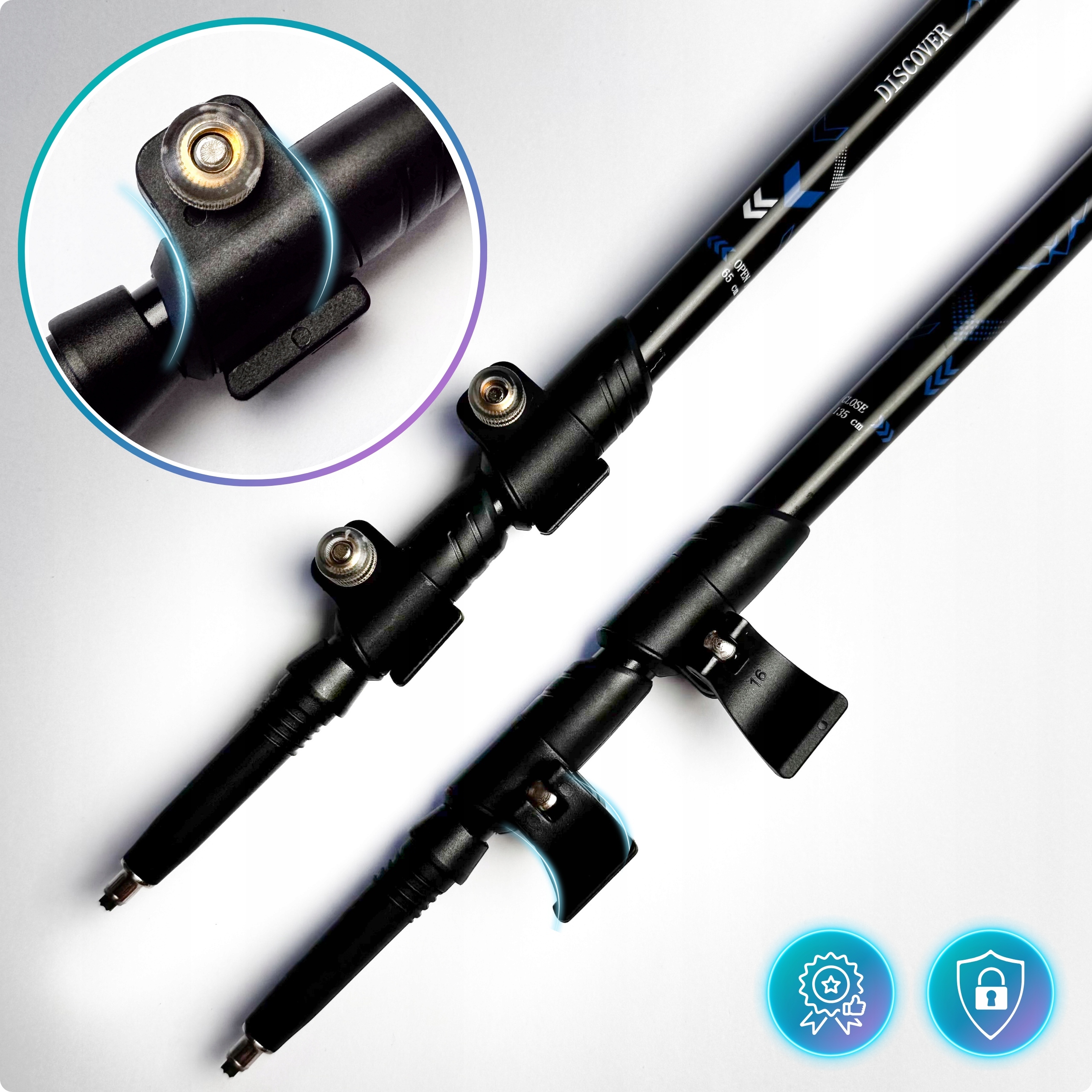 ✅ 2× kije trekkingowe z blokadami Quick Lock w czarno niebieskiej wersji kolorystycznej