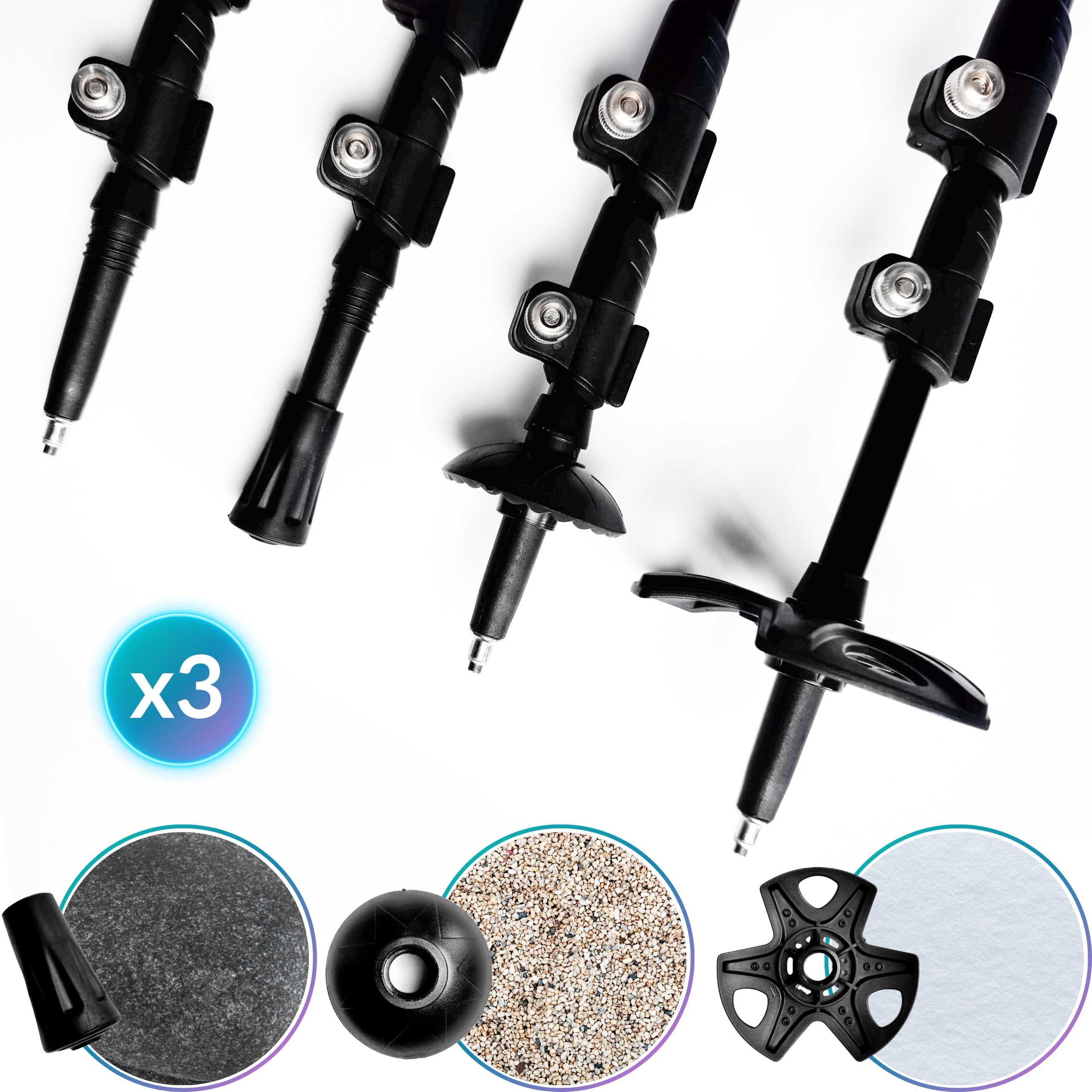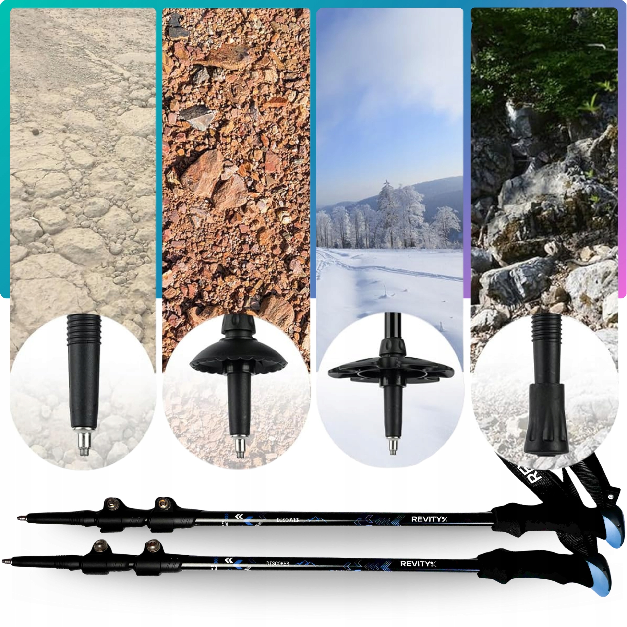 ✅ UNIWERSALNE KOŃCÓWKI NA 3 RODZAJE NAWIERZCHNI - dzięki temu poradzisz sobie w każdych warunkach – od miejskich chodników po ścieżki w lesie i górskie zbocza.