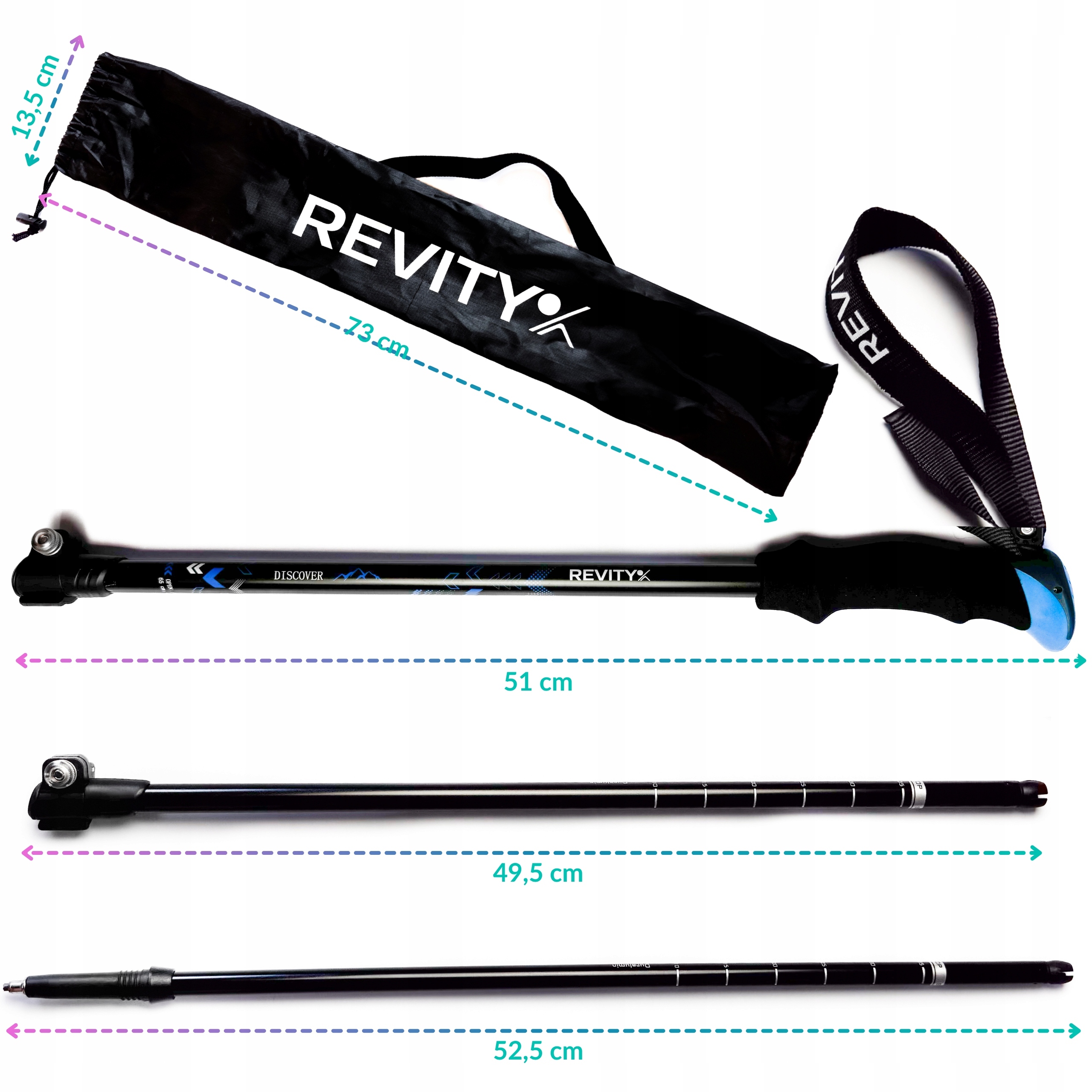 ✅ SKŁADANE I KOMPAKTOWE – co sprawia, że są idealne w podróży. Po złożeniu kijki mają zaledwie 64 cm długości i z łatwością mieszczą się w dołączonym pokrowcu Revity (73 × 13,5 cm). Można je schować w plecaku, przytroczyć na zewnątrz lub wrzucić do bagażnika. Nadrukowana skala z oznaczeniem wysokości pomoże Ci szybko i sprawnie ustawić kije i wyruszyć w drogę.