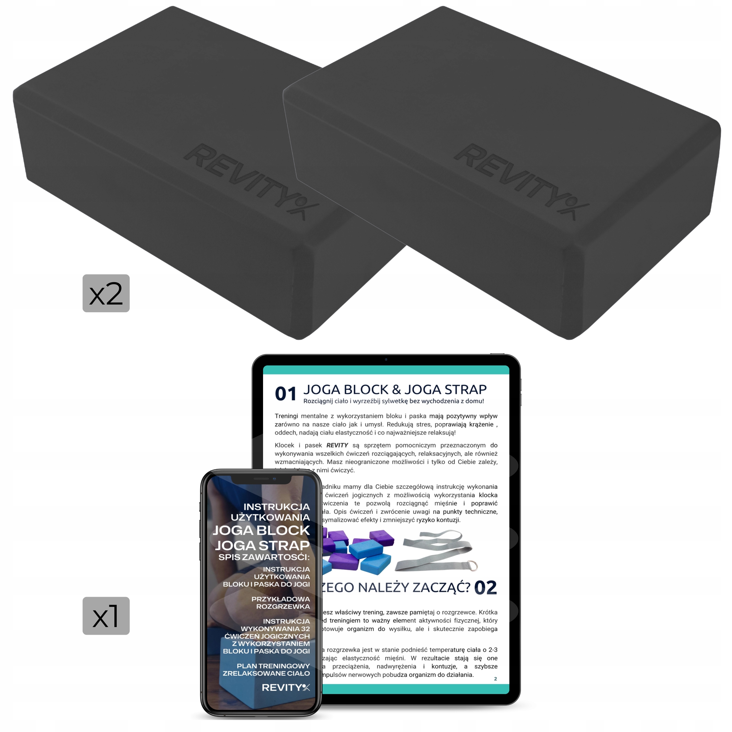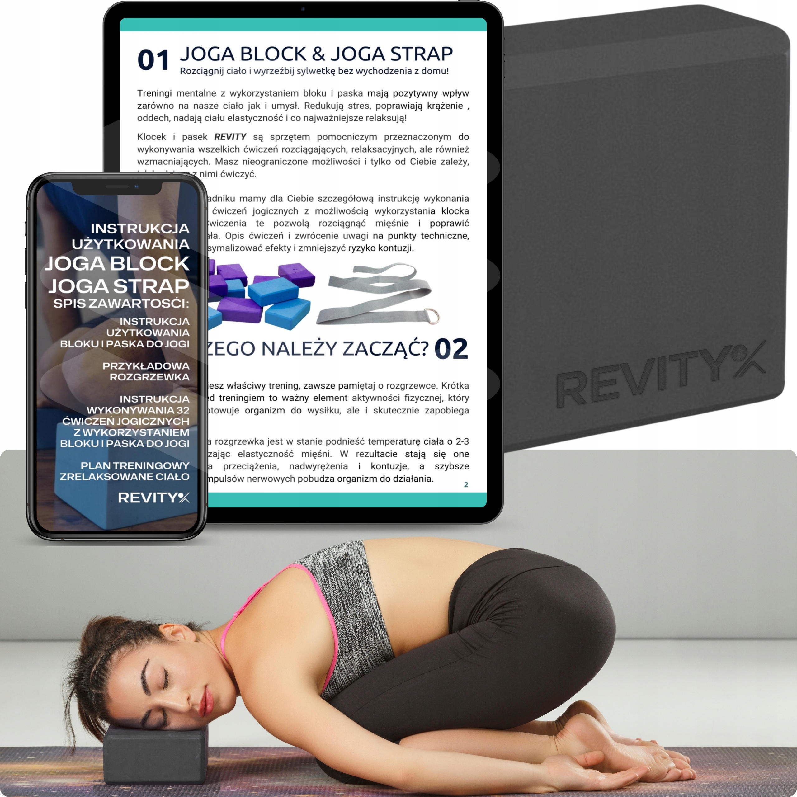 ✅ Dorzucamy gratis poradnik w PDF instrukcję wykonywania 32 ćwiczeń jogicznych z wykorzystaniem bloku i paska do jogi - możesz od razu po zakupie zacząć ćwiczyć (polecamy dobrać do zestawu pasek do jogi oraz 2 klocki).
