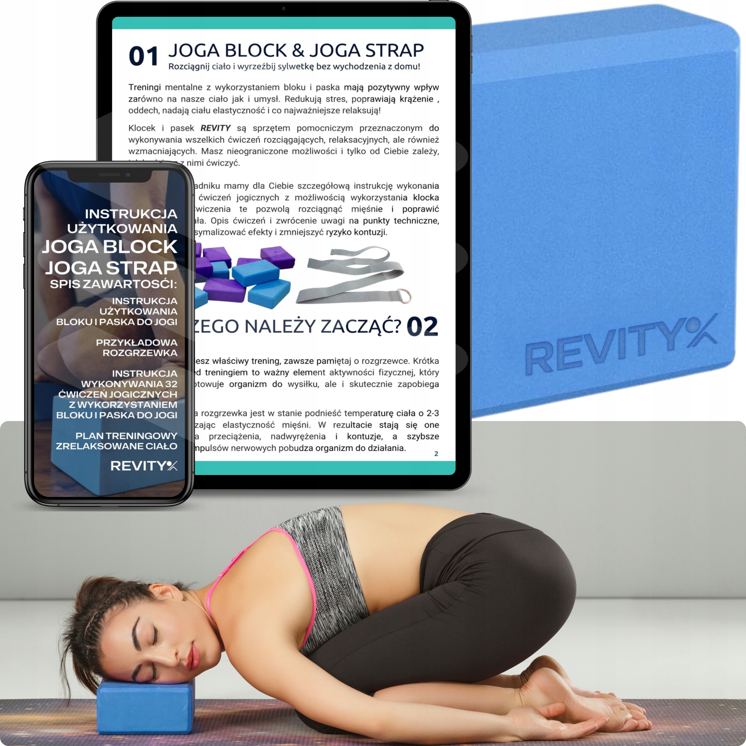 ✅ Dorzucamy gratis poradnik w PDF instrukcję wykonywania 32 ćwiczeń jogicznych z wykorzystaniem bloku i paska do jogi - możesz od razu po zakupie zacząć ćwiczyć (polecamy dobrać do zestawu pasek do jogi oraz 2 klocki).