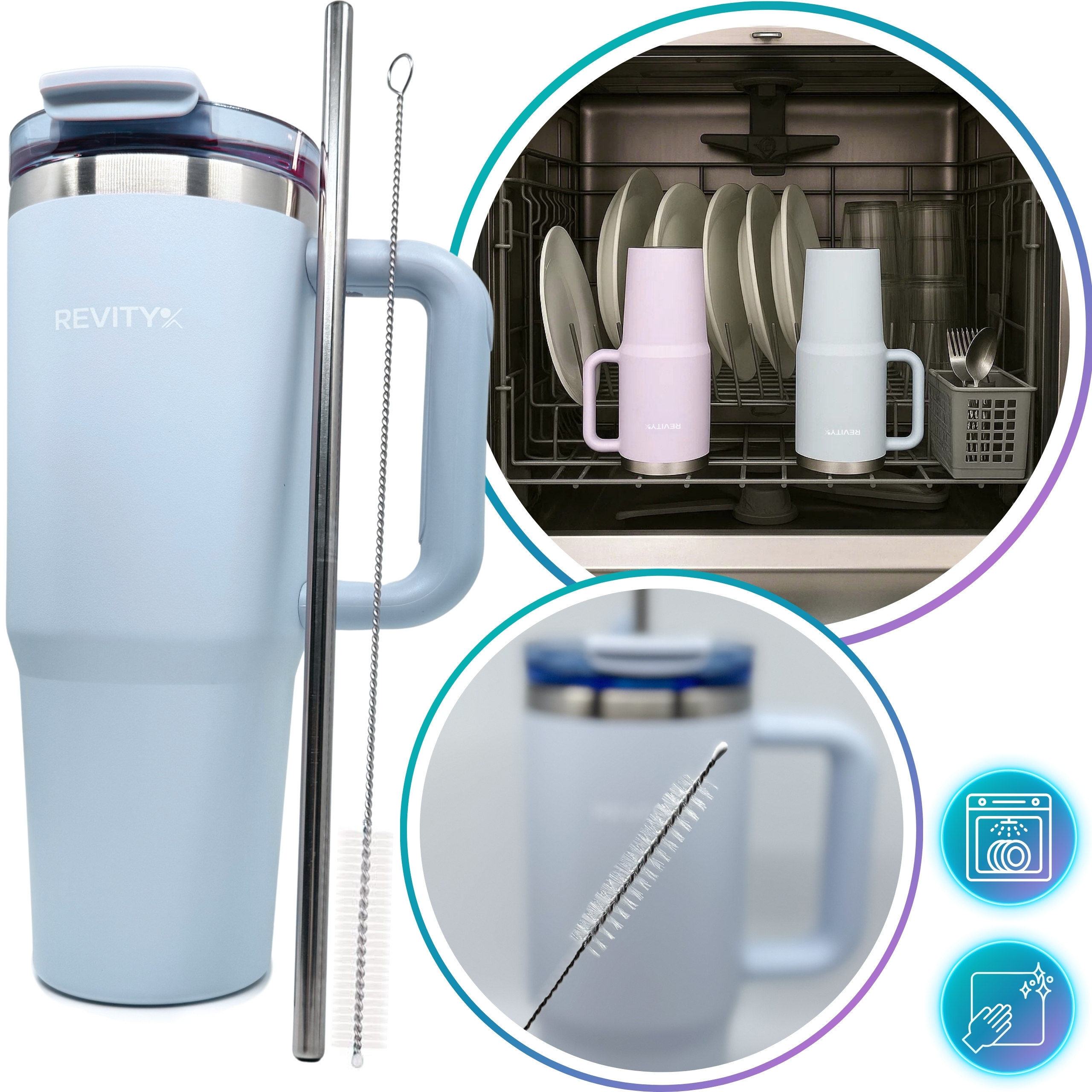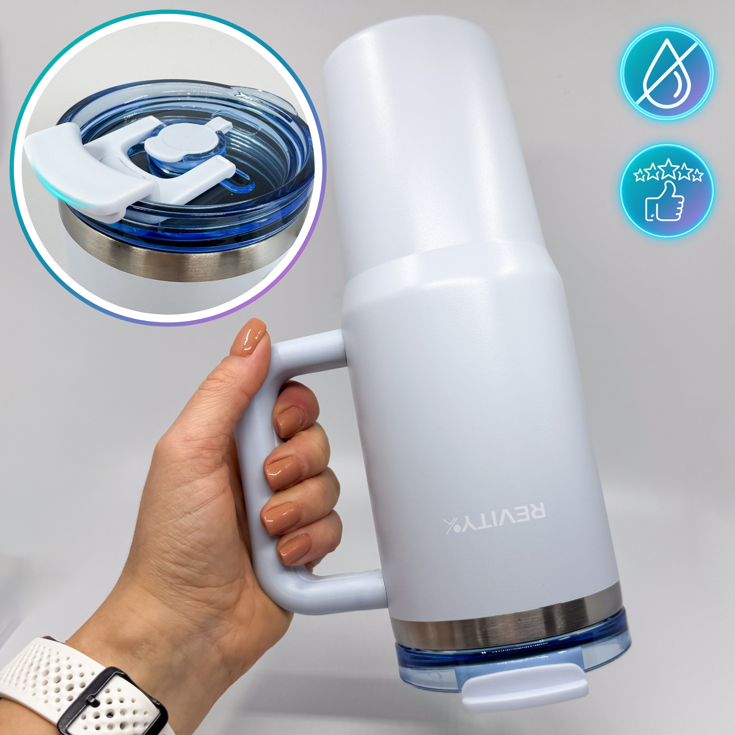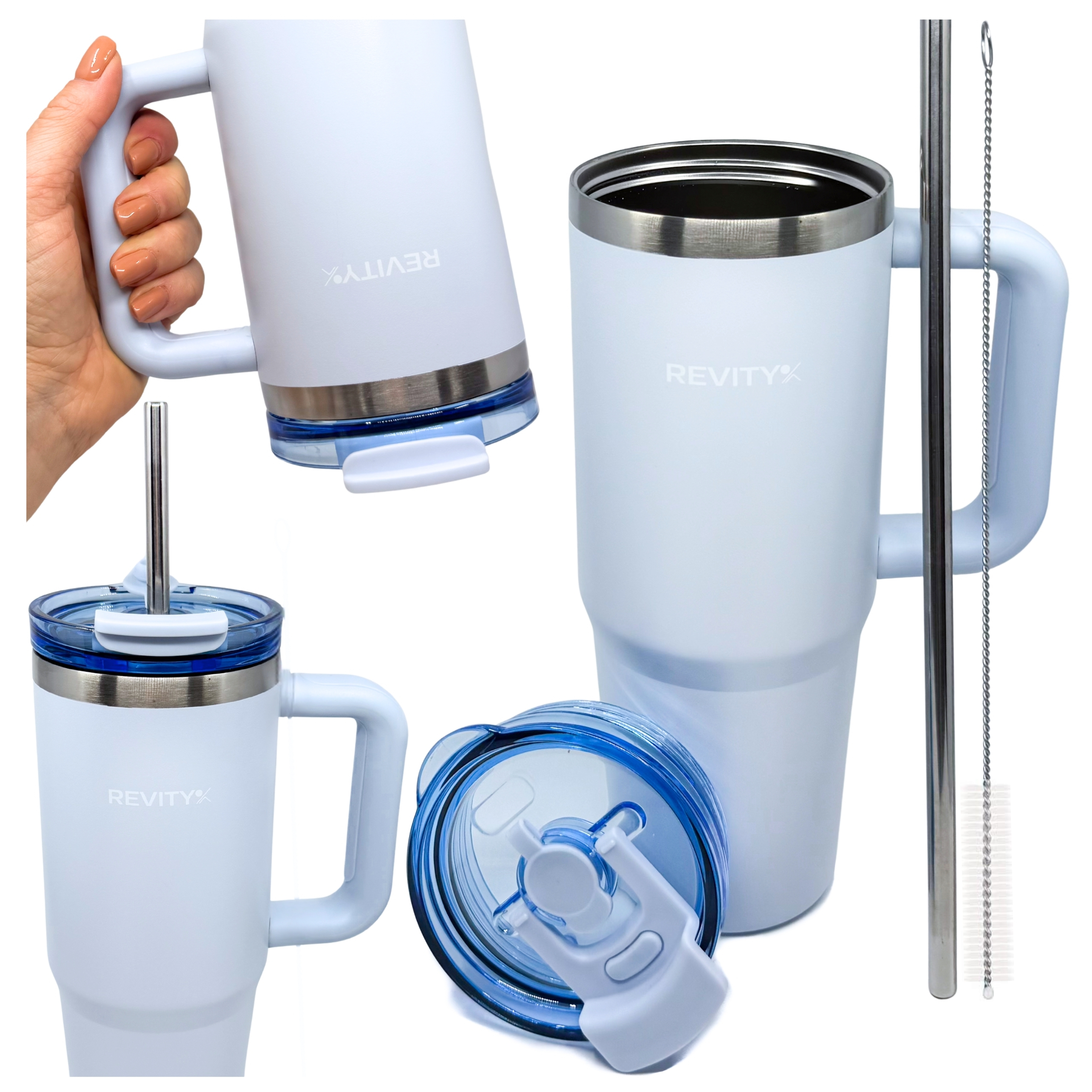 Duży, wytrzymały kubek termiczny Revity z uchwytem i pokrywką ze słomką i ustnikiem to wygodny sposób na ulubione napoje w domu, pracy i w podróży. Stal nierdzewna oraz podwójne ścianki z izolacją pomagają dłużej utrzymać temperaturę – na chłodno w upały i na ciepło w chłodniejsze dni. Ergonomiczny uchwyt ułatwia przenoszenie, a szczelna pokrywka ogranicza rozchlapywanie podczas ruchu. Idealny do wody, kawy mrożonej, smoothie czy izotoników.