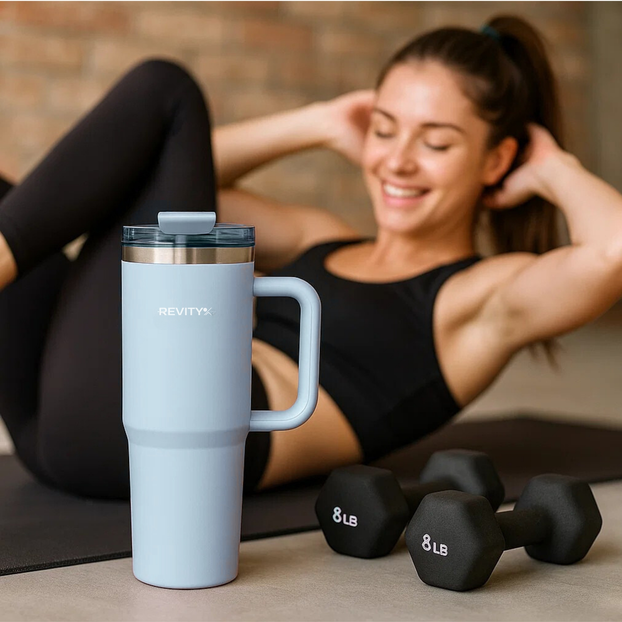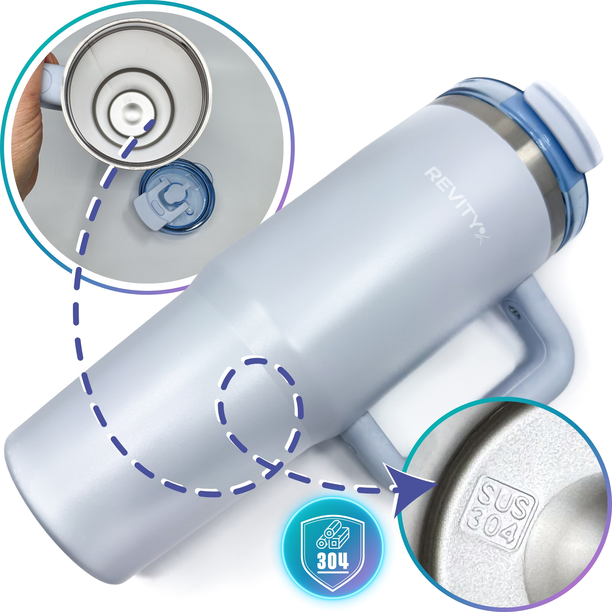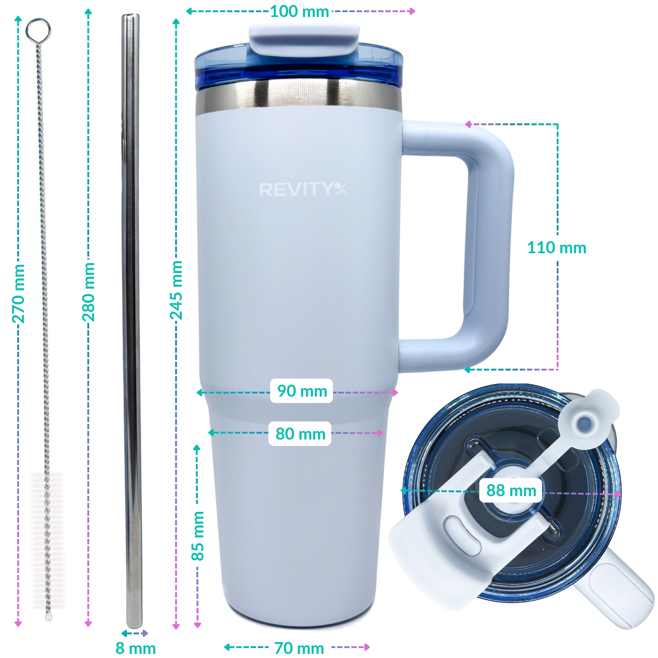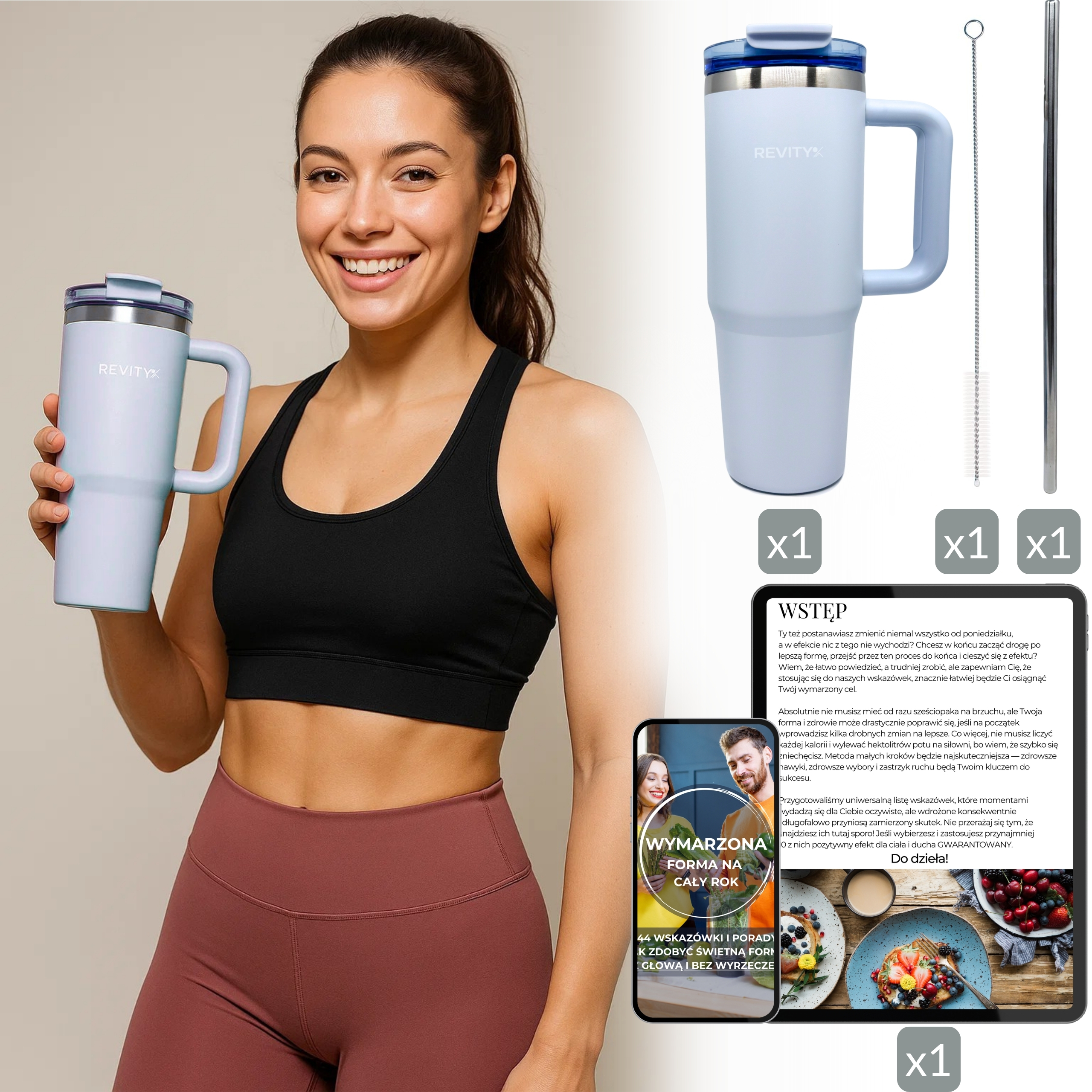 Duży, wytrzymały kubek termiczny Revity z uchwytem i pokrywką ze słomką i ustnikiem to wygodny sposób na ulubione napoje w domu, pracy i w podróży. Stal nierdzewna oraz podwójne ścianki z izolacją pomagają dłużej utrzymać temperaturę – na chłodno w upały i na ciepło w chłodniejsze dni. Ergonomiczny uchwyt ułatwia przenoszenie, a szczelna pokrywka ogranicza rozchlapywanie podczas ruchu. Idealny do wody, kawy mrożonej, smoothie czy izotoników.