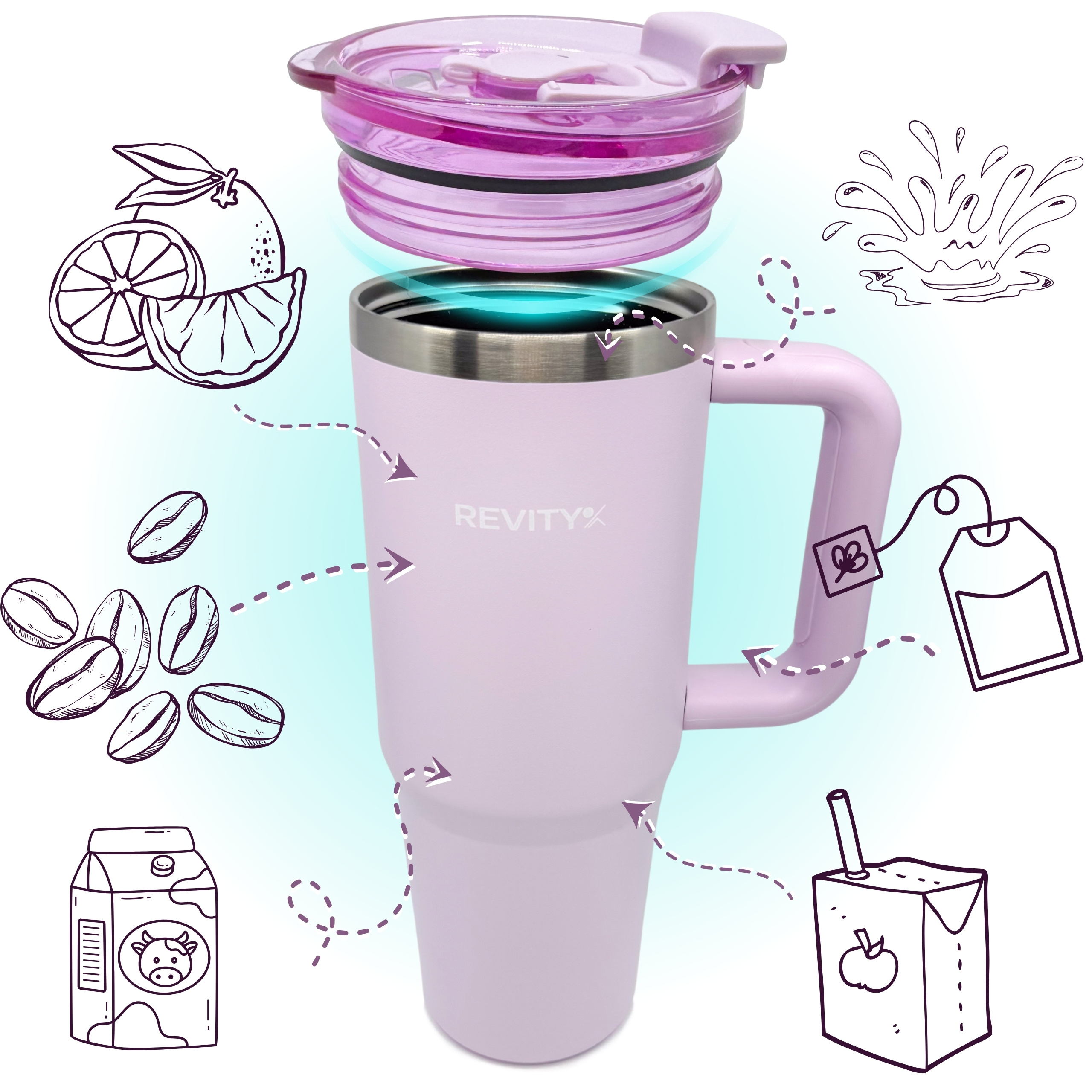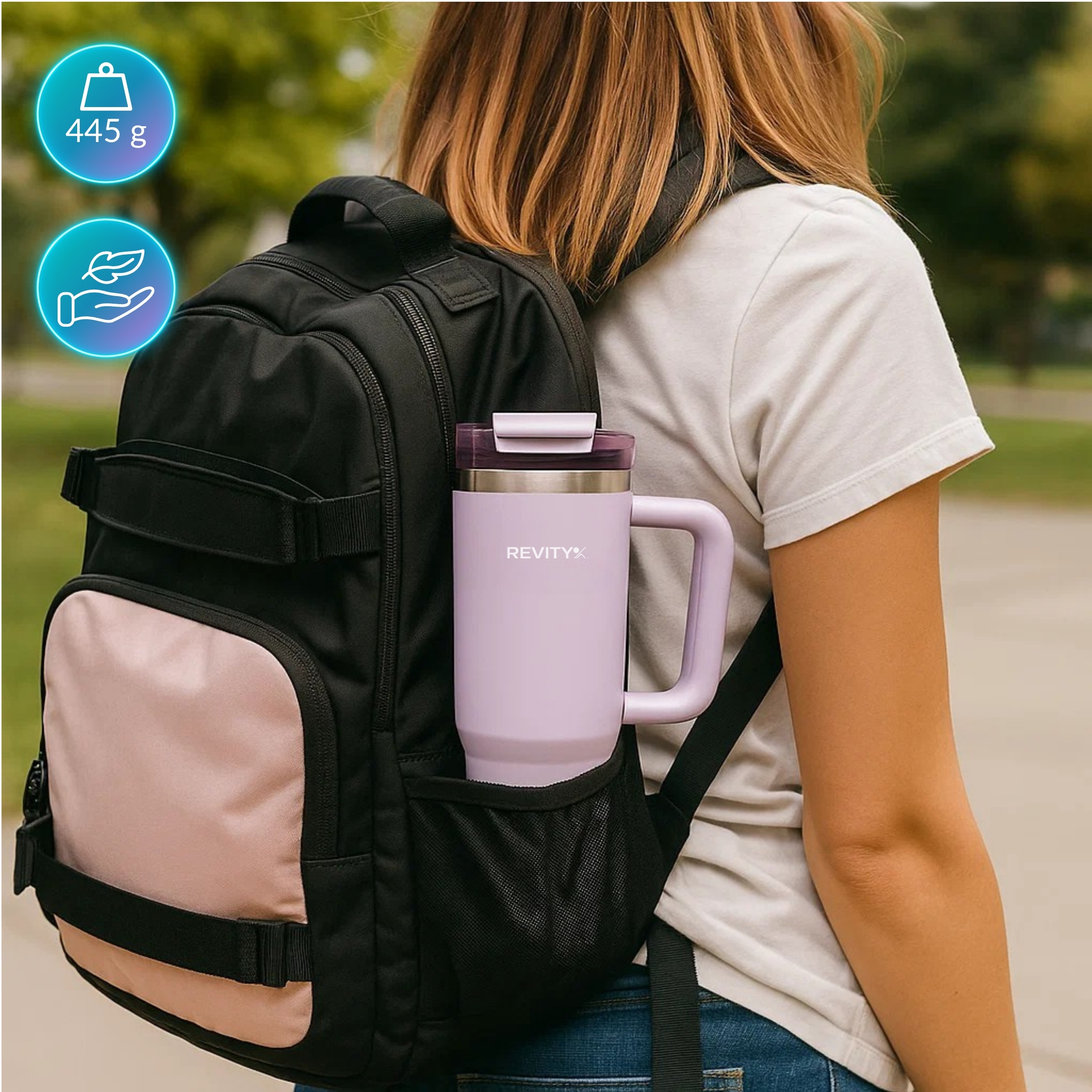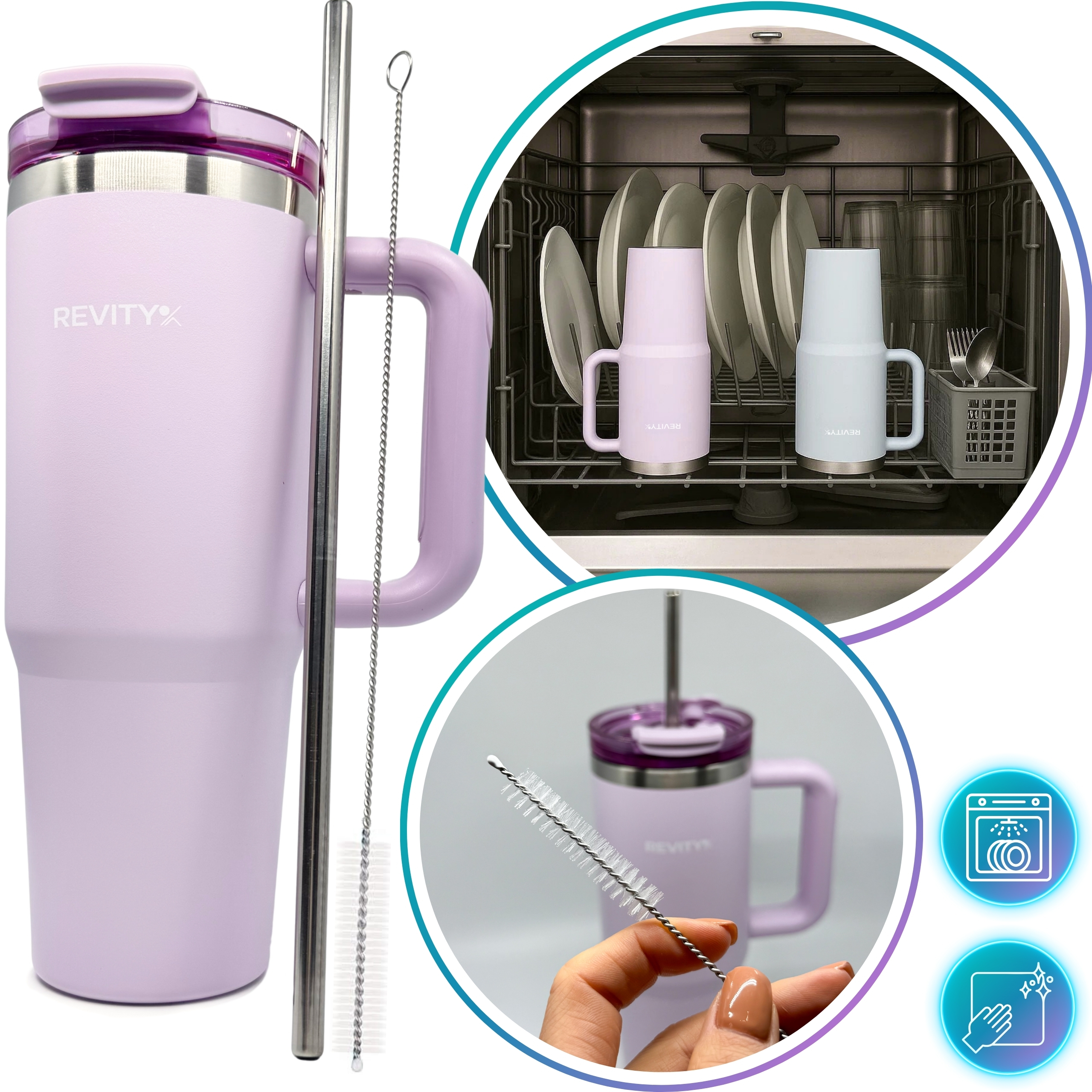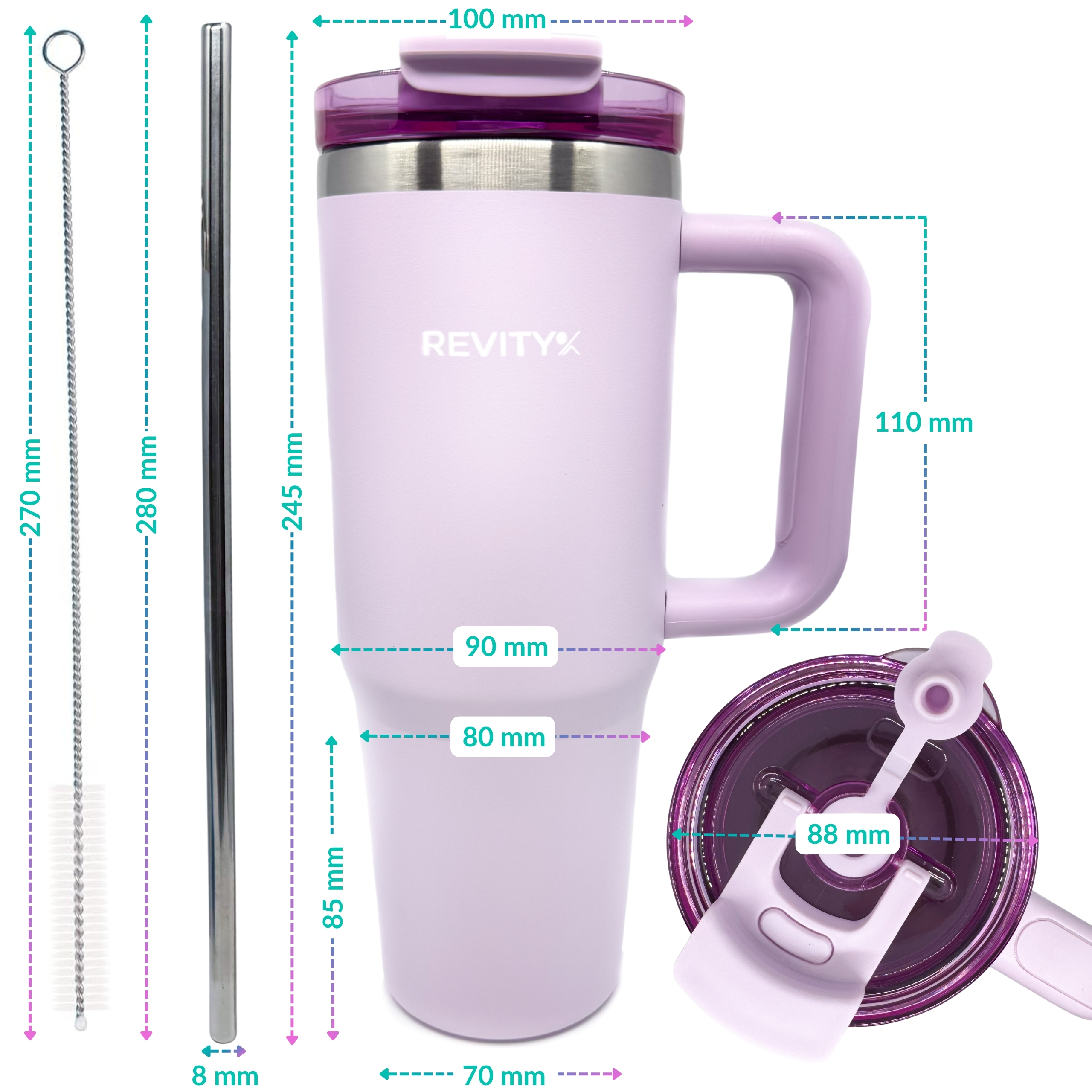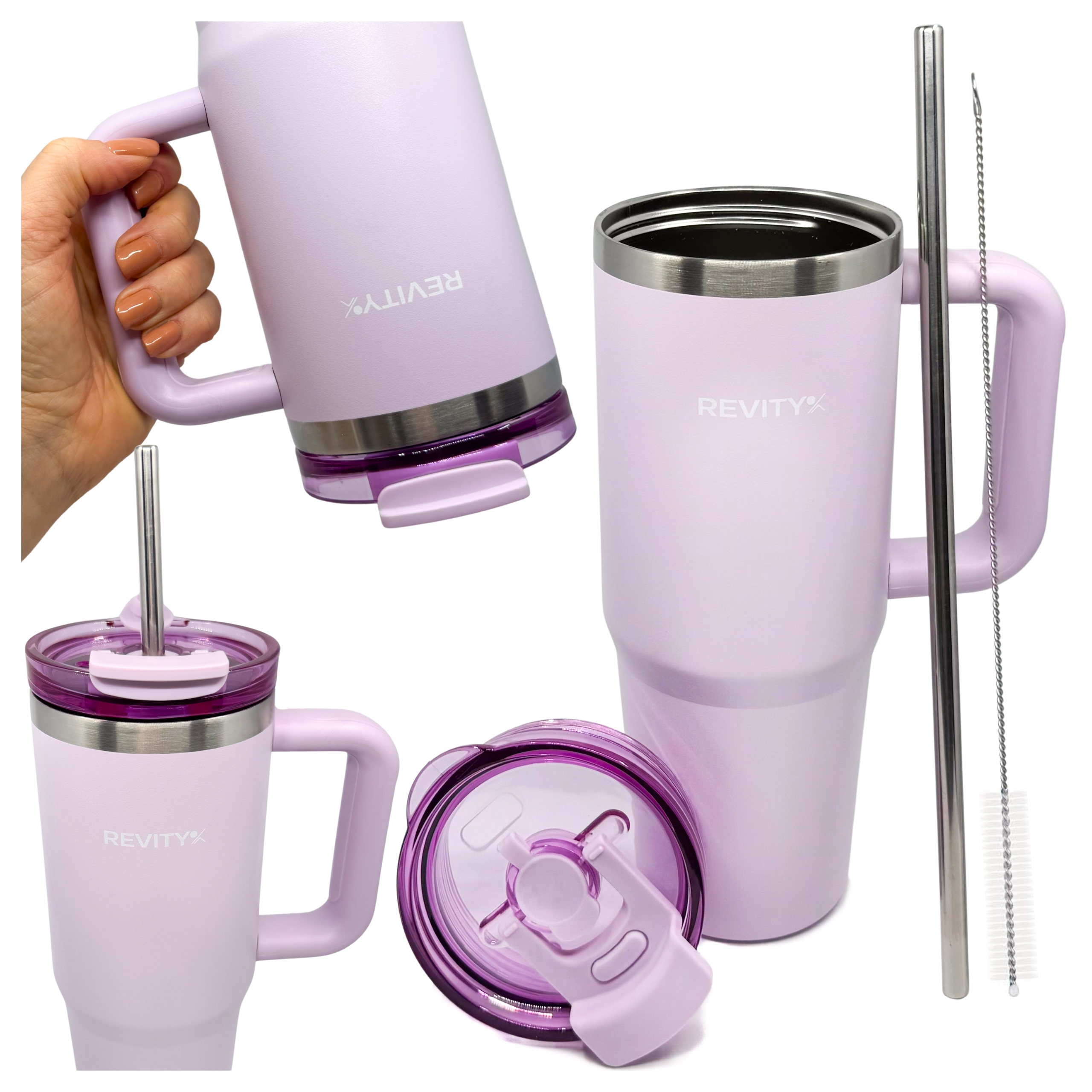 Duży, wytrzymały kubek termiczny Revity z uchwytem i pokrywką ze słomką i ustnikiem to wygodny sposób na ulubione napoje w domu, pracy i w podróży. Stal nierdzewna oraz podwójne ścianki z izolacją pomagają dłużej utrzymać temperaturę – na chłodno w upały i na ciepło w chłodniejsze dni. Ergonomiczny uchwyt ułatwia przenoszenie, a szczelna pokrywka ogranicza rozchlapywanie podczas ruchu. Idealny do wody, kawy mrożonej, smoothie czy izotoników.