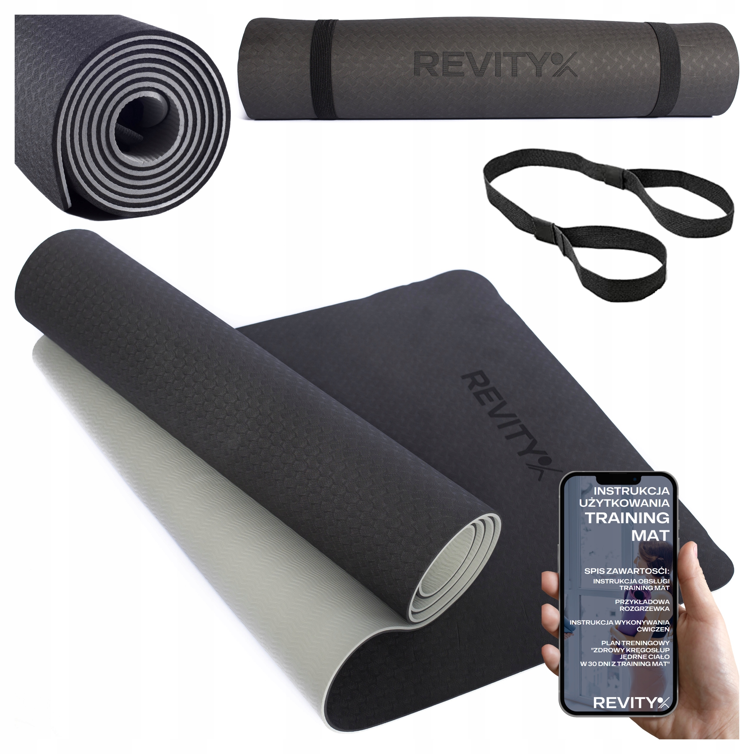 ✅ Wysokiej jakości mata TRAINING MAT od REVITY o wymiarach 183x61x0.6cm, w wybranym kolorze - prosimy o wskazanie, który wariant wybierasz. W przeciwnym wypadku spakujemy matę w kolorze czarnym.