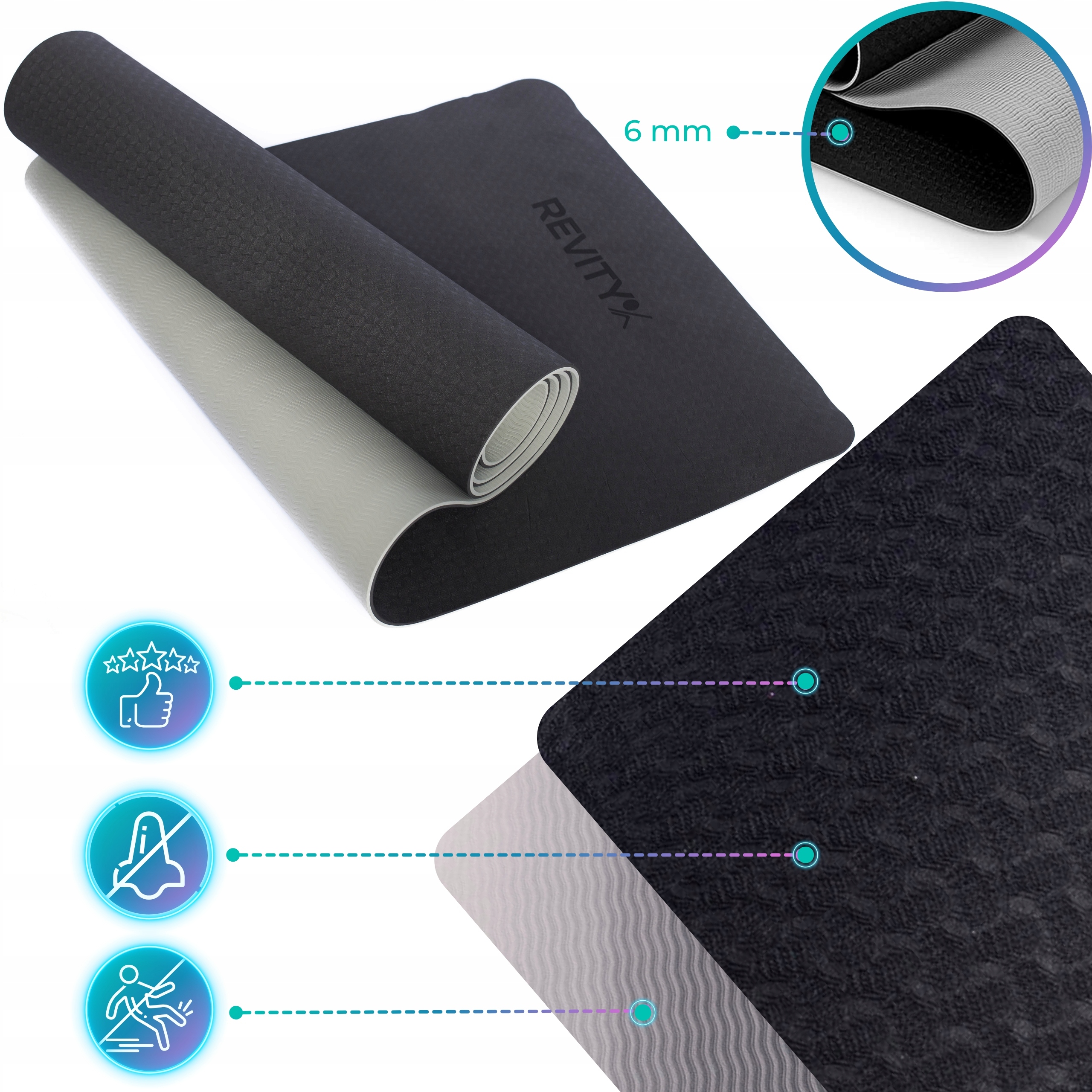 ✅ Wysokiej jakości pianka TPE – 6 mm grubości