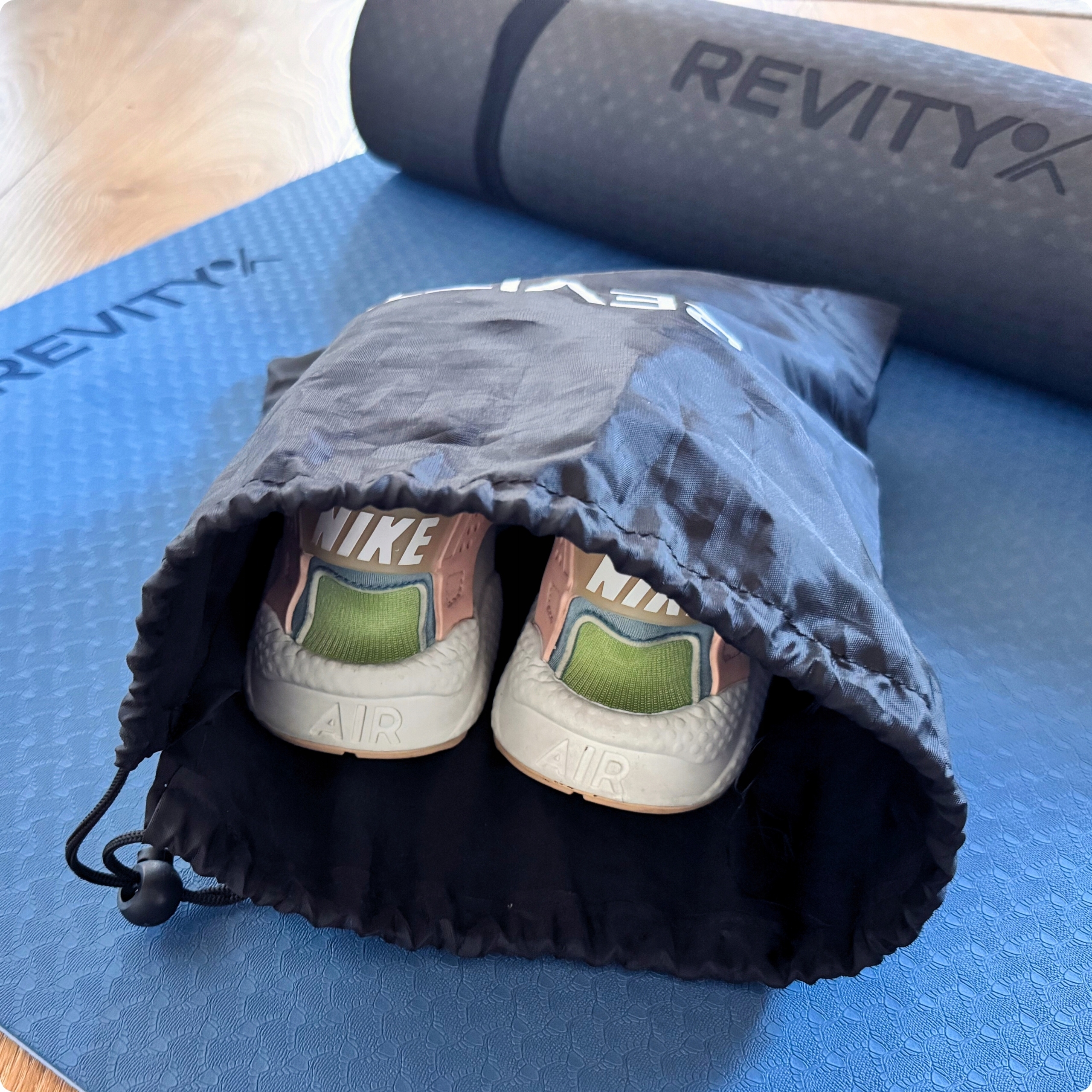 ✅ Worek jest wystarczająco duży, aby zmieściły się w nim akcesoria treningowe np. gumy do ćwiczeń czy buty na siłownię.