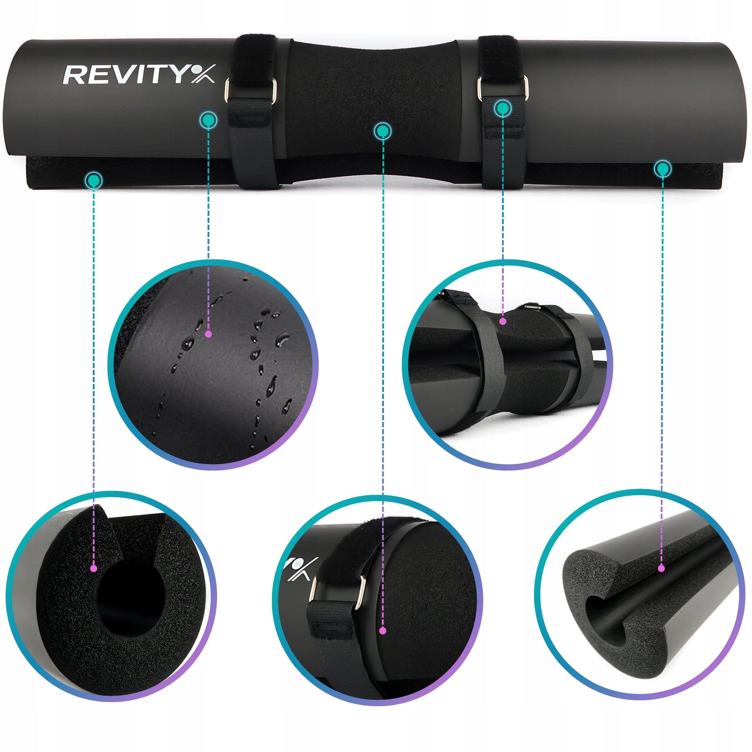 Piankowy ochraniacz na sztangę Revity zmniejsza punktowy nacisk na kark i biodra w ćwiczeniach takich jak hip thrust, przysiady, wykroki czy wypychanie bioder. Gęsta pianka równomiernie rozkłada obciążenie, zwiększa komfort i pomaga utrzymać stabilną pozycję sztangi. Kompaktowy format ułatwia szybkie założenie na gryf i spakowanie do torby treningowej.
