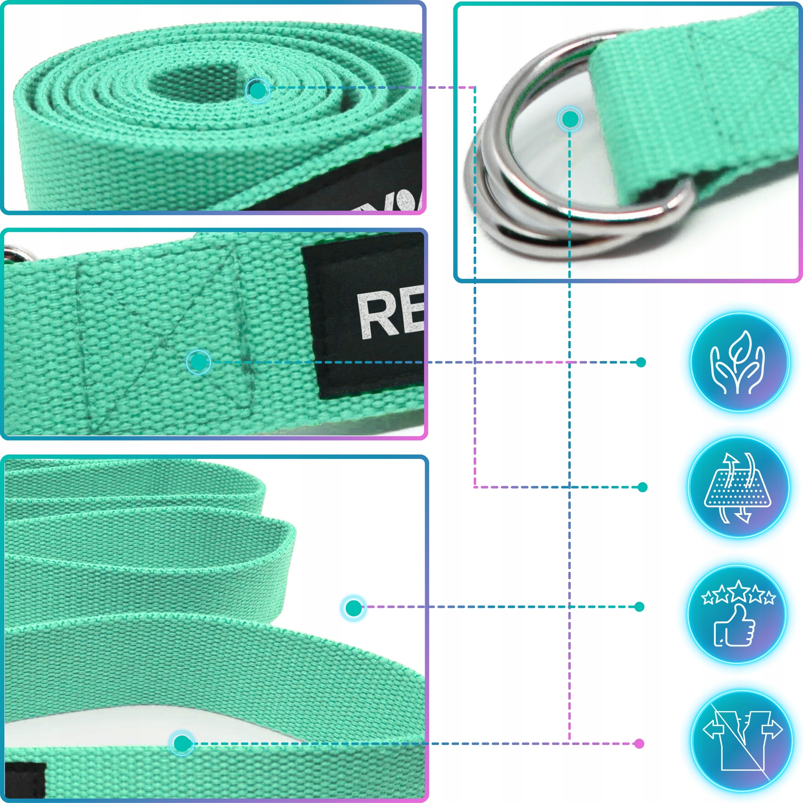 ✅ Pasek do jogi/stretchingu 200 cm x 3.8cm w miętowej wersji kolorystycznej (w innej ofercie znajdziesz go również w kolorze fioletowym ???? , niebieskim ???? lub czarnym ⚫ - jeśli preferujesz inny kolor niż przedstawiony na aukcji napisz w wiadomości do sprzedającego)