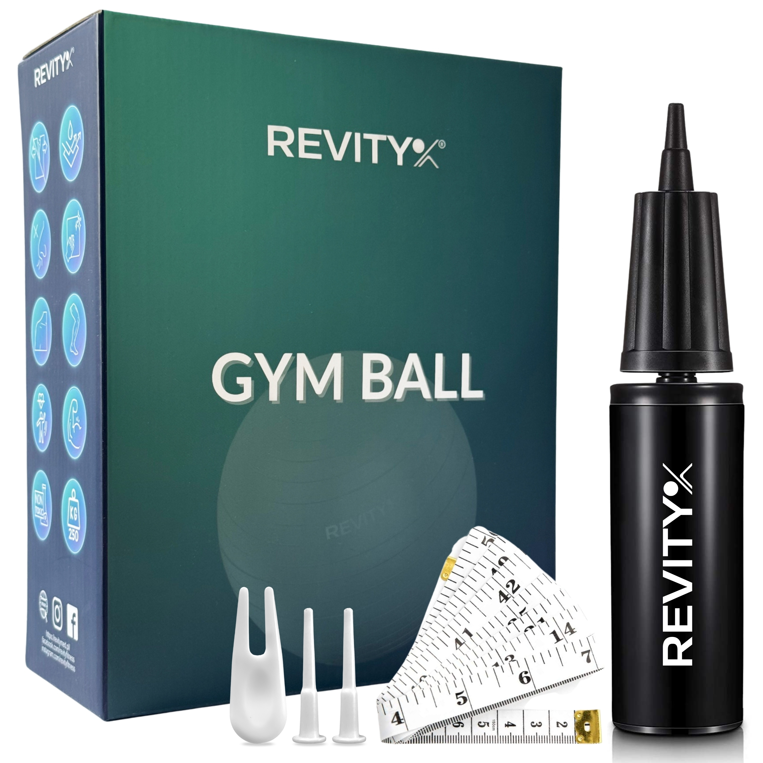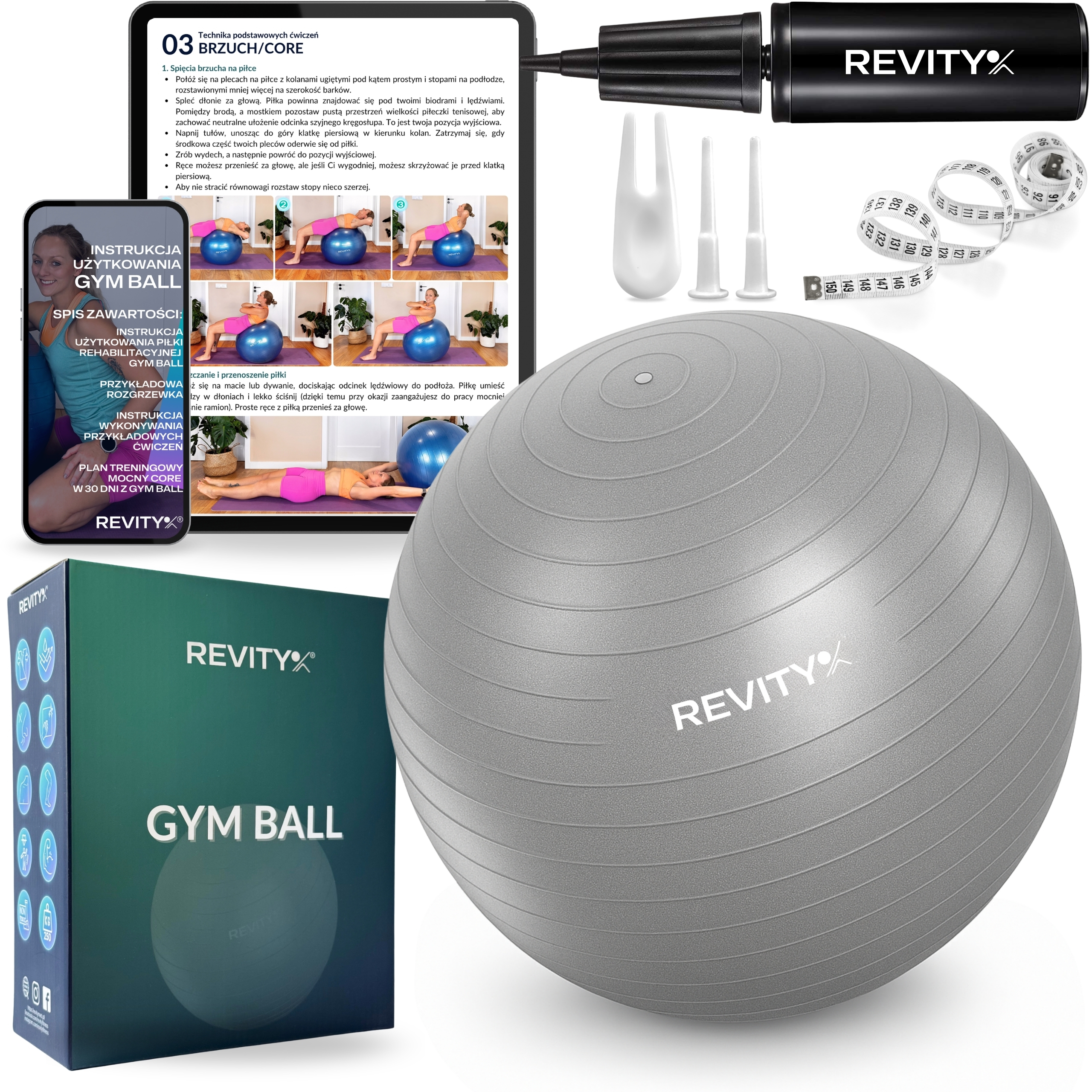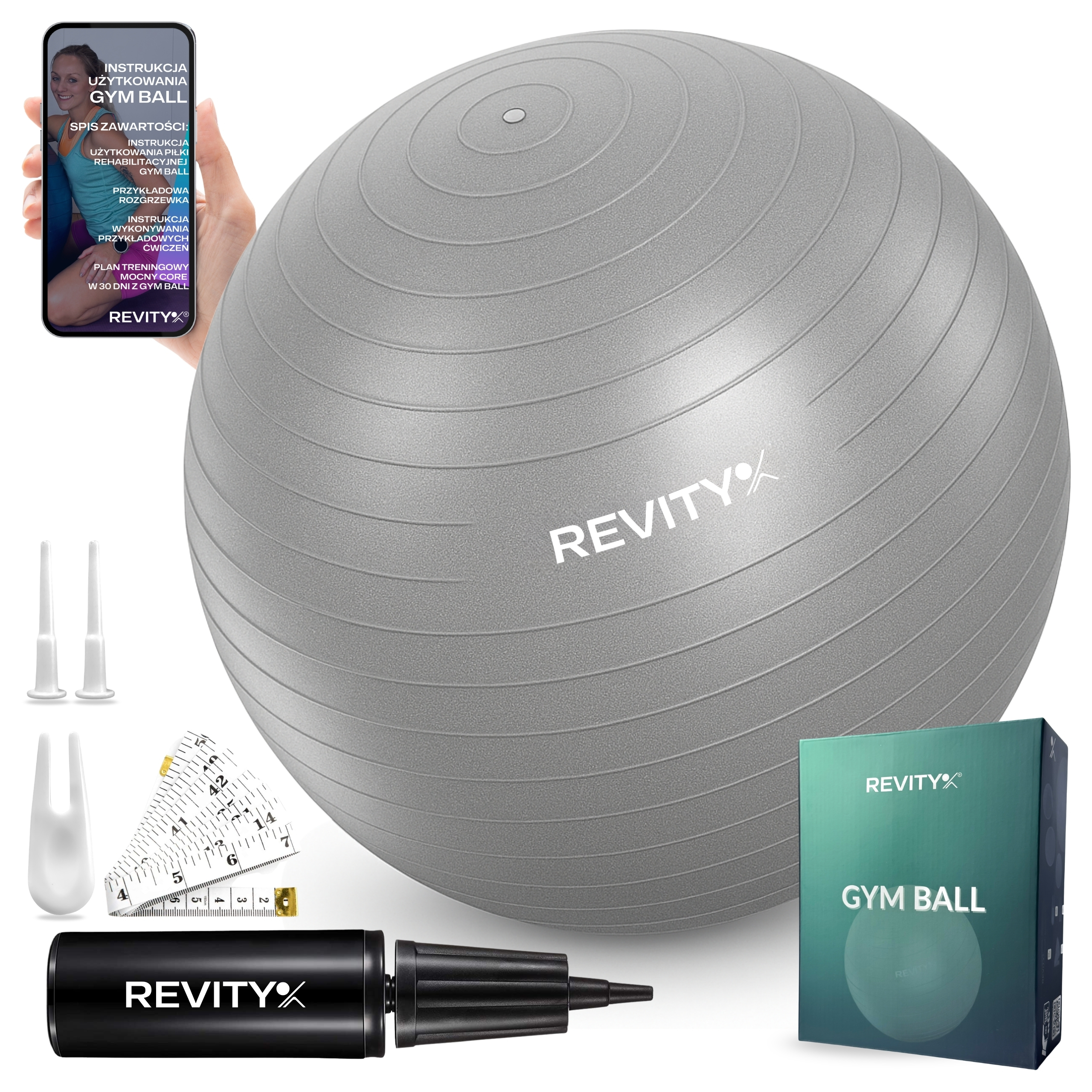 ✅ Dodatkowo: 2 korki do zatykania otworu, tasiemka do pomiarów siebie i piłki oraz przyrząd do usuwania korka (gdyby trzeba było spuścić powietrze).