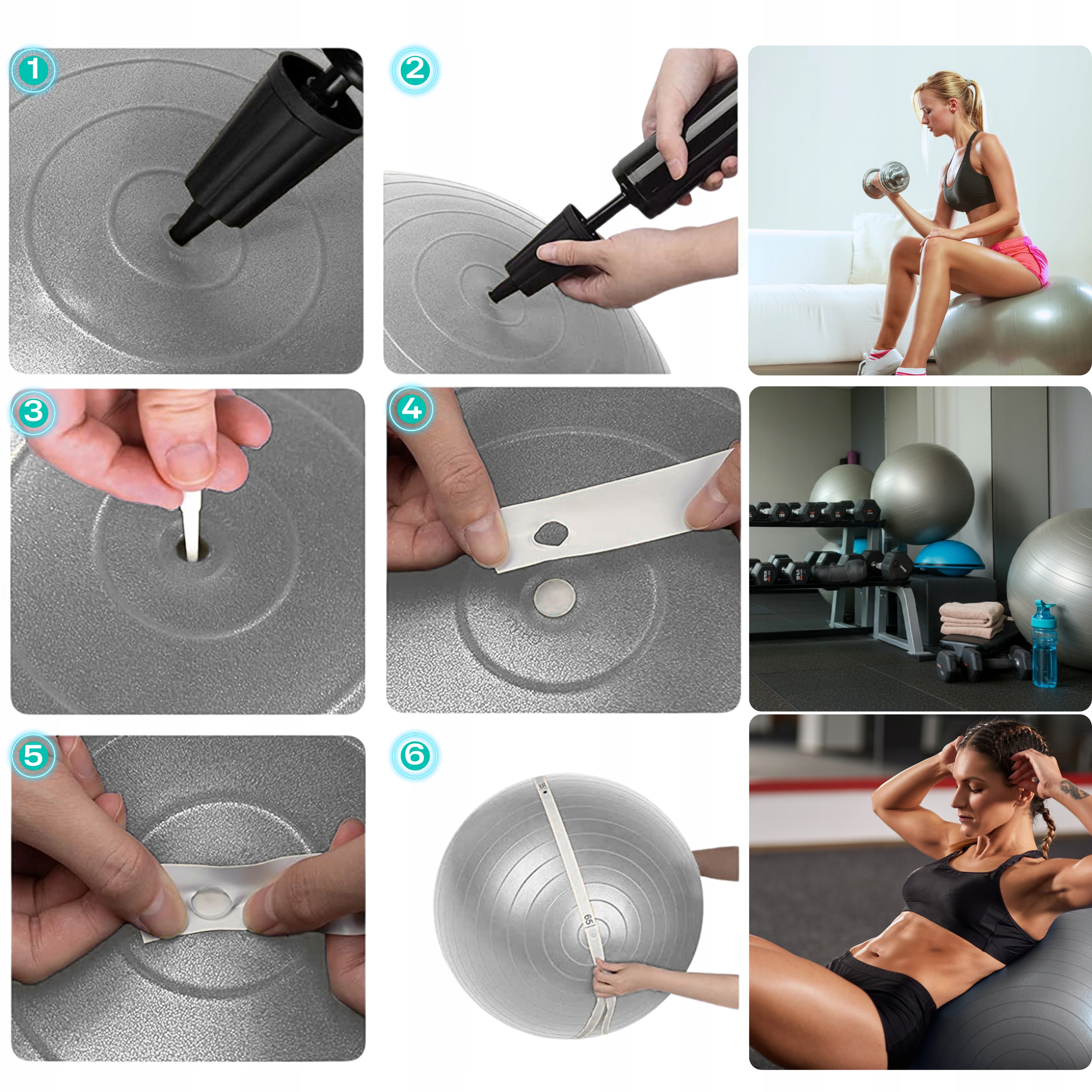Piłka do ćwiczeń GYM BALL PRO marki REVITY to wysokiej jakości piłka gimnastyczna (szwajcarska), która jest świetnym produktem nie tylko w sporcie i rehabilitacji ale wspaniale odnajduje się również w życiu codziennym i zawodowym. Poniżej znajdziesz przykładowe ćwiczenia jakie możesz wykonać razem z piłką. Więcej znajdziesz w poradniku PDF, który jest częścią tej oferty.