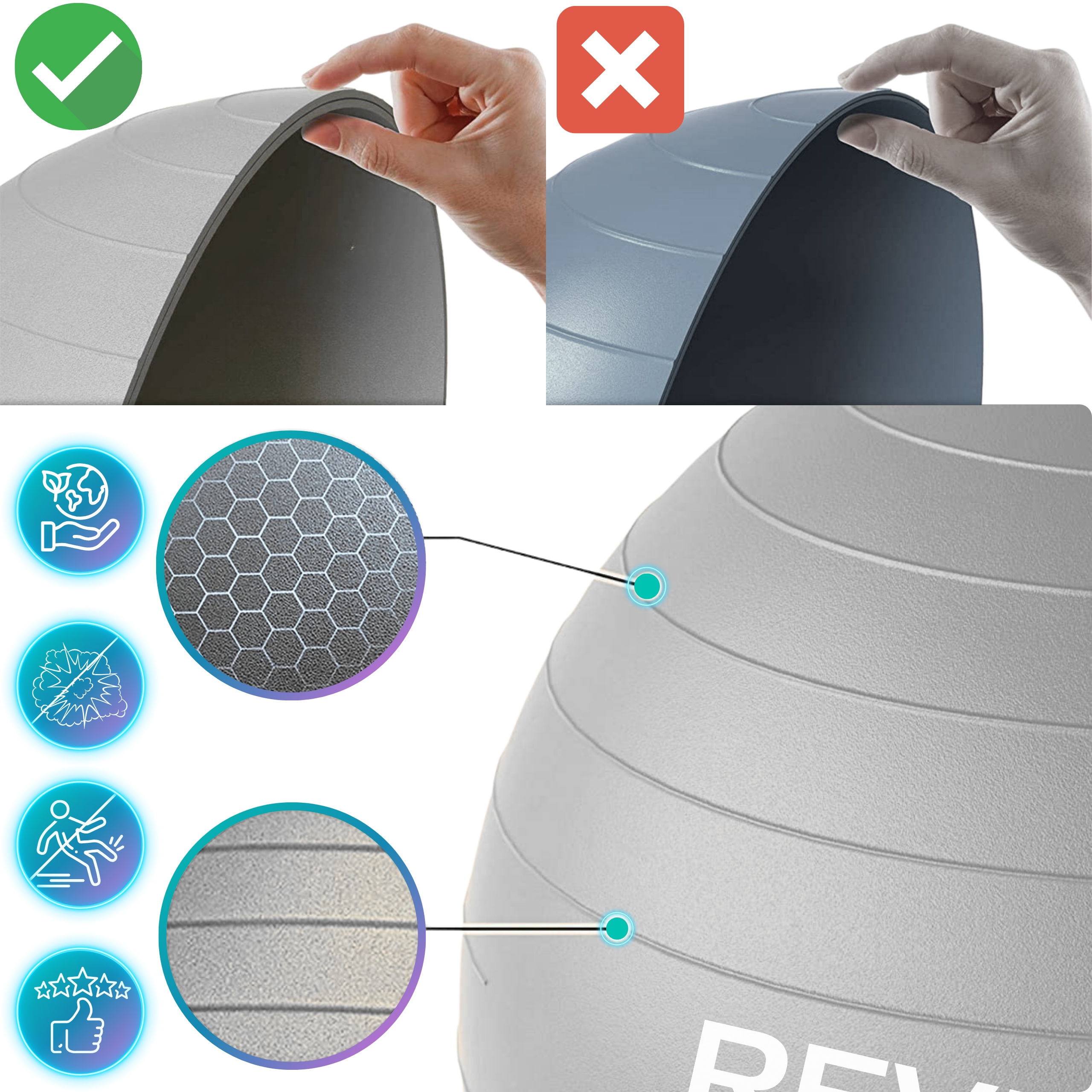 ✅ TECHNOLOGIA ANTI-BURST - Jeśli obawiasz się, że Twoja piłka pęknie, to możesz spać spokojnie :) REVITY GYM BALL wyposażono w technologię Anti-Burst. Co to dla Ciebie oznacza? Jeśli z jakiegoś powodu dojdzie do uszkodzenia powierzchni, to materiał nie pozwala na gwałtowną utratę powietrza. Dzięki temu możesz ćwiczyć bezpiecznie bez obawy o groźną kontuzję.