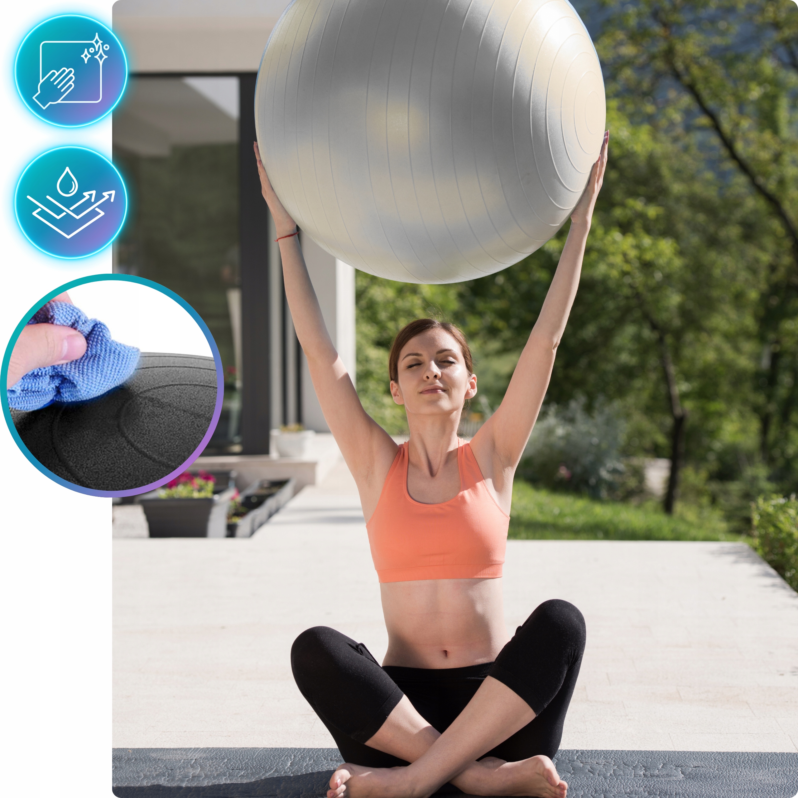 ✅ TECHNOLOGIA ANTI-SLIP - Powierzchnia piłki została dodatkowo uszlachetniona. Dzięki temu jest matowa, a nie błyszcząca. Oprócz walorów estetycznych, zachowuje przyczepność zarówno do Twojego ciała jak i do powierzchni na której ćwiczysz. Niezależnie od tego czy jest to podłoga w siłowni, w Twoim domu czy w Twoim biurze.