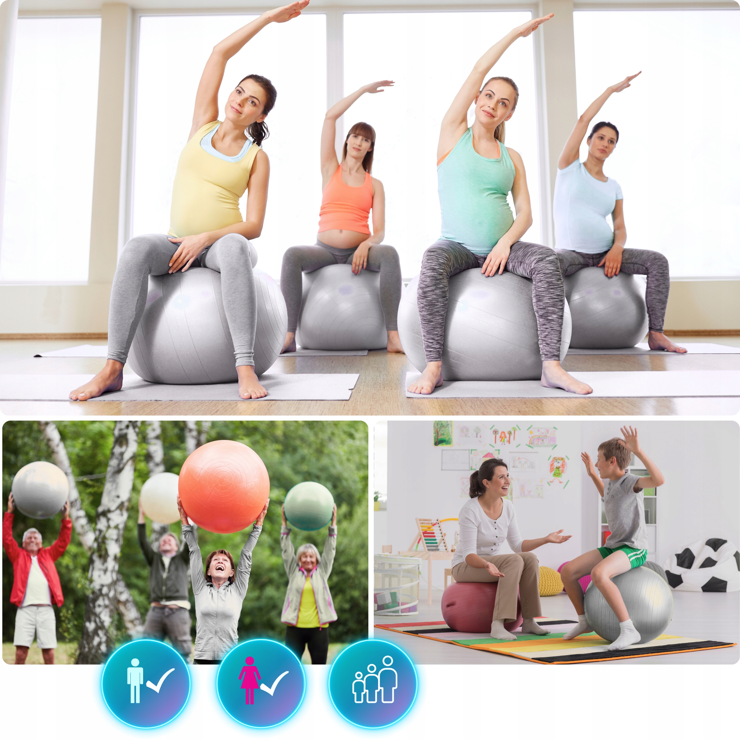 Ciąża to wyjątkowy czas dla każdej kobiety. Niewiele osób jednak mówi o tym, że ciąży towarzyszy obciążenie fizyczne i psychiczne. Piłka to jeden z niewielu przyrządów jakie poleca się właśnie kobietom w ciąży, aby odciążyć kręgosłup i zmobilizować do pracy mięśnie głębokie, które są odpowiedzialne za utrzymywanie prawidłowej postawy. Można na piłce siedzieć w ciągu dnia i odpoczywać, jak również wykonywać krótkie sesje ćwiczeń w pozycji siedzącej. Dzięki temu znacznie łatwiej po ciąży wrócisz do świetnej formy i nienagannej sylwetki. Pamiętaj, żeby przed użyciem skonsultować wszelkie przeciwwskazania ze swoim lekarzem.