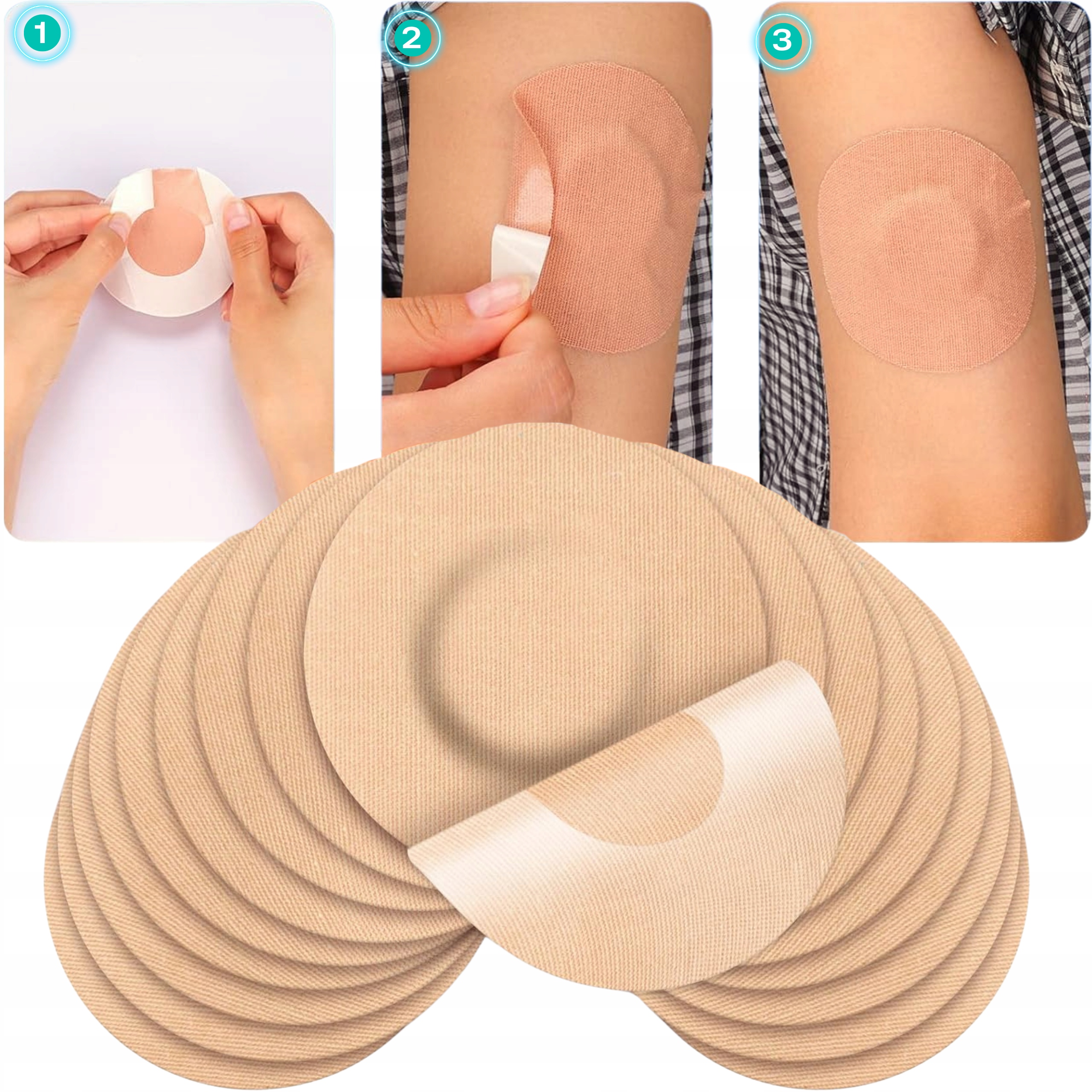 ✅ Przedmiotem tej oferty jest 10 szt. wysokiej jakości plastrów ochronnych do sensora Freestyle Libre o średnicy 7.5 cm w kolorze jasny beż. Plastry posiadają warstwę wolną od kleju o średnicy 3 cm od środka (zgodnie ze zdjęciami)