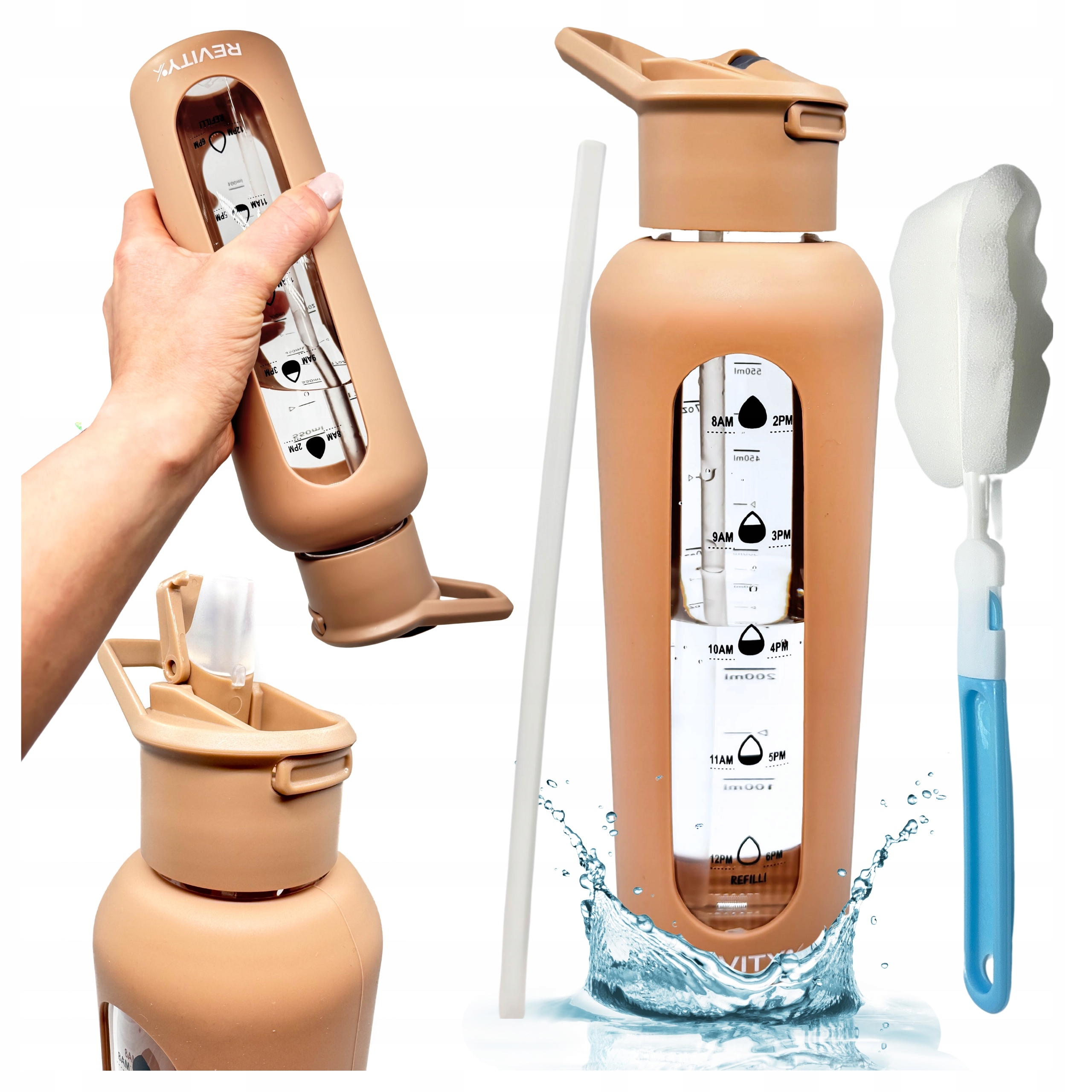 ✅ Wysokiej jakości szklana butelka na wodę w silikonowym rękawie