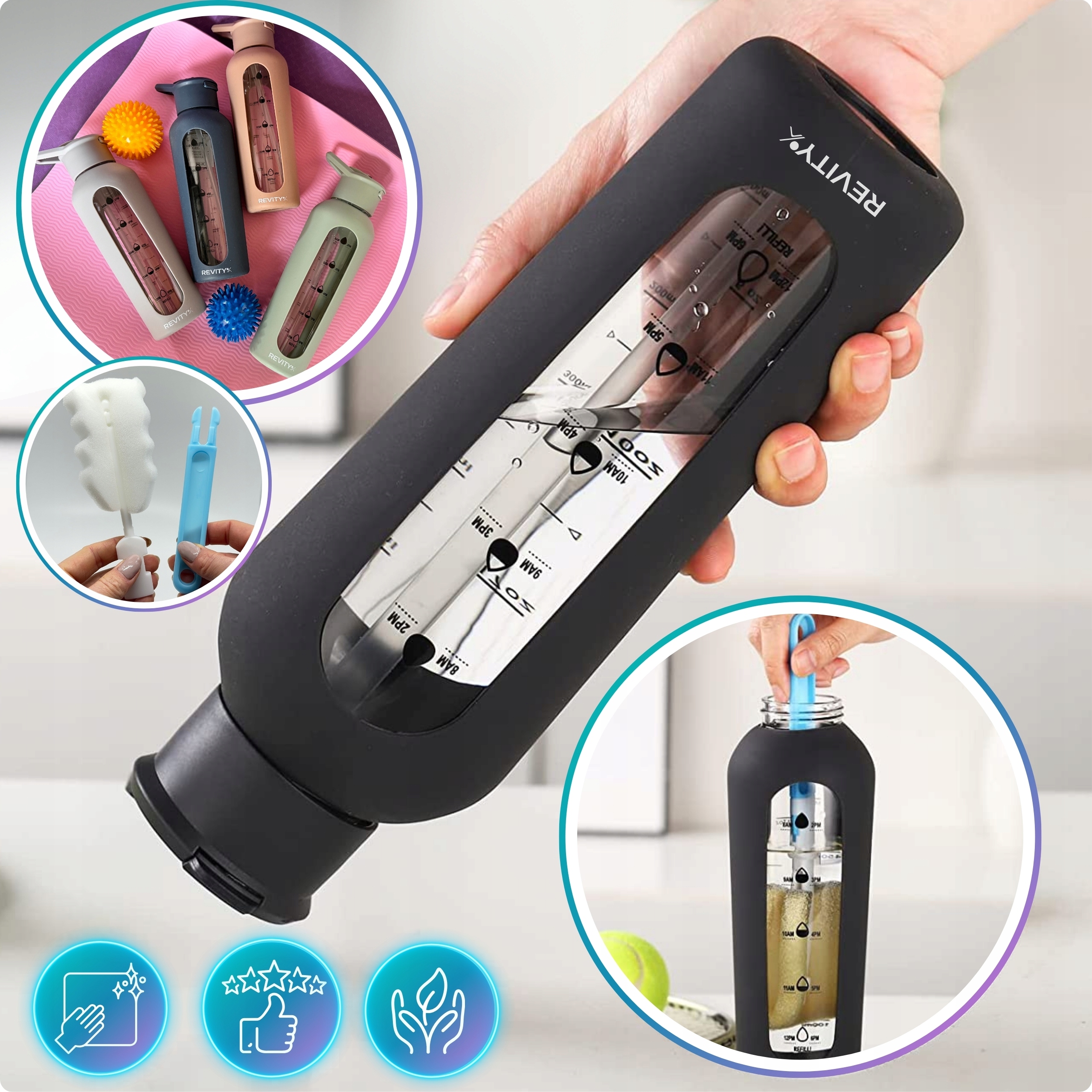 ✅ SILIKONOWY RĘKAW - szkło użyte do wyprodukowania butelki zostało odpowiednio zahartowane, a jako dodatkowe zabezpieczenie dodaliśmy silikonowy rękaw, dzięki któremu ryzyko zbicia butelki jest zminimalizowane do granic możliwości. Teraz nawet przy przypadkowym trąceniu butelki, szansa, na to, że butelka ulegnie uszkodzeniu, jest minimalne.