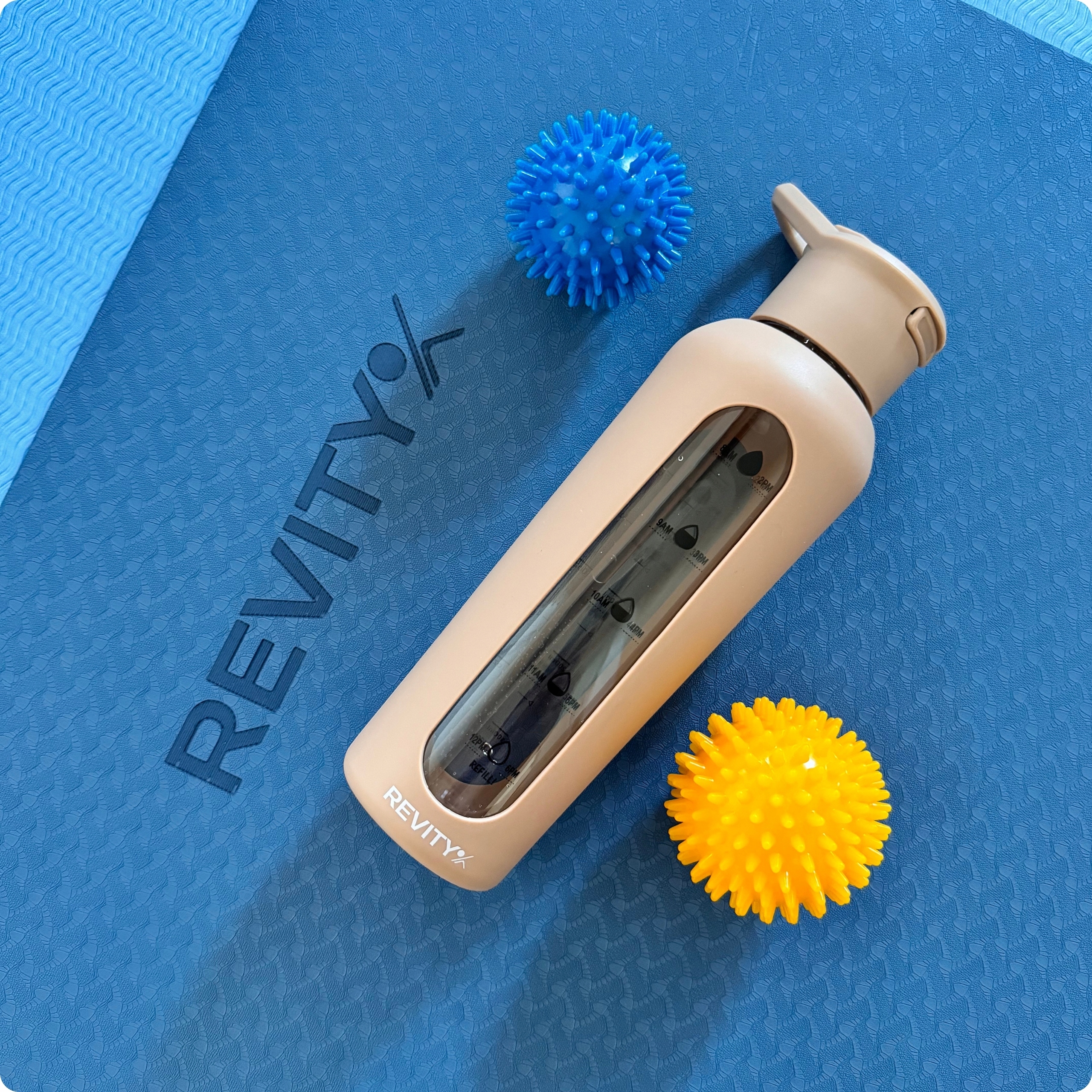 Czyli szklaną butelkę na wodę w silikonowym etui.