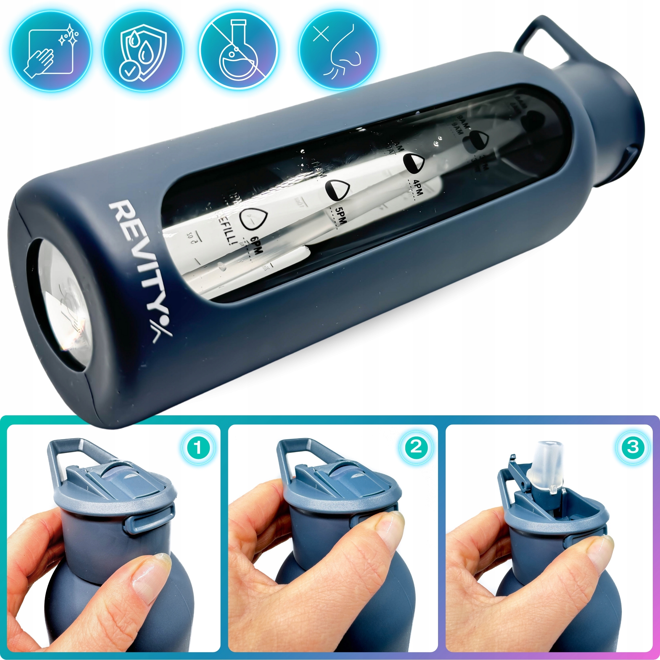 ✅ AUTOMATYCZNE WIECZKO ZE SŁOMKĄ - w Revity zawsze stawiamy na wygodę użytkowania, dlatego nasza butelka posiada słomkę (aby można było z niej pić w pozycji pionowej) oraz zakrętkę z przyciskiem z dziubkiem, dzięki której łatwo i szybko możesz ją otworzyć. Nie ma potrzeby ciągłego odkręcania i zakręcania. Pijesz kiedy chcesz i raz dwa zamykasz.