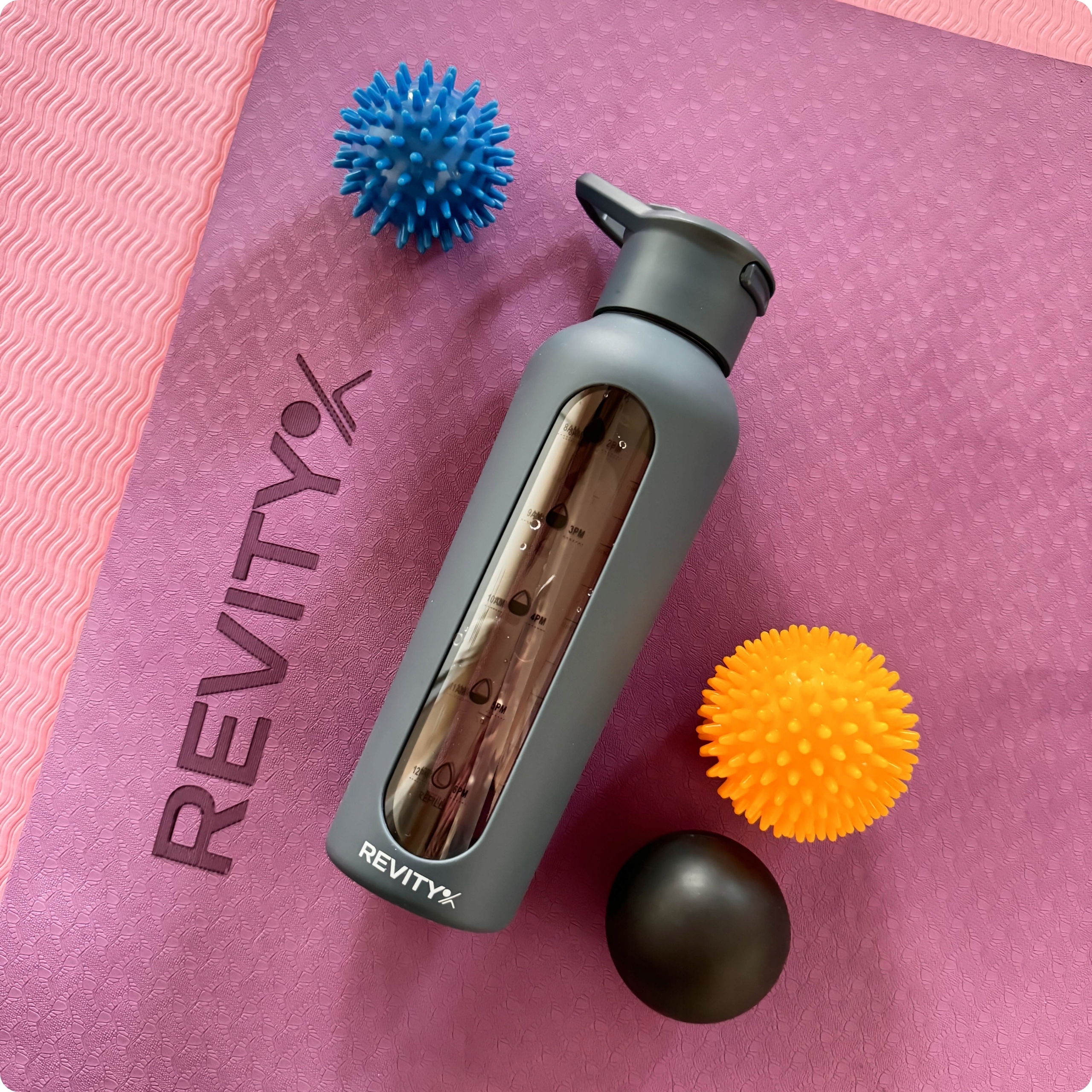 Czyli szklaną butelkę na wodę w silikonowym etui.