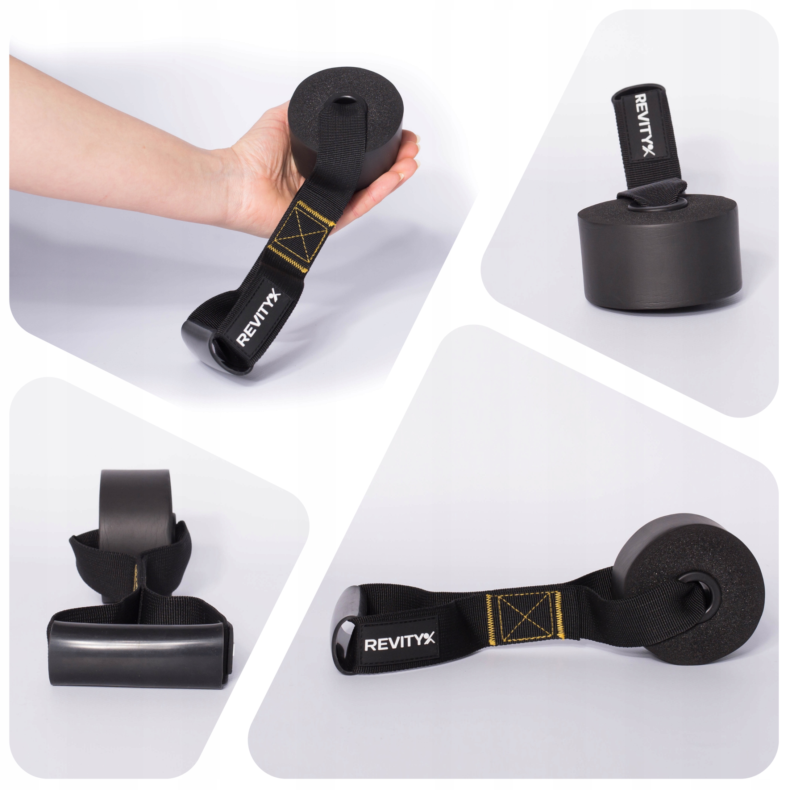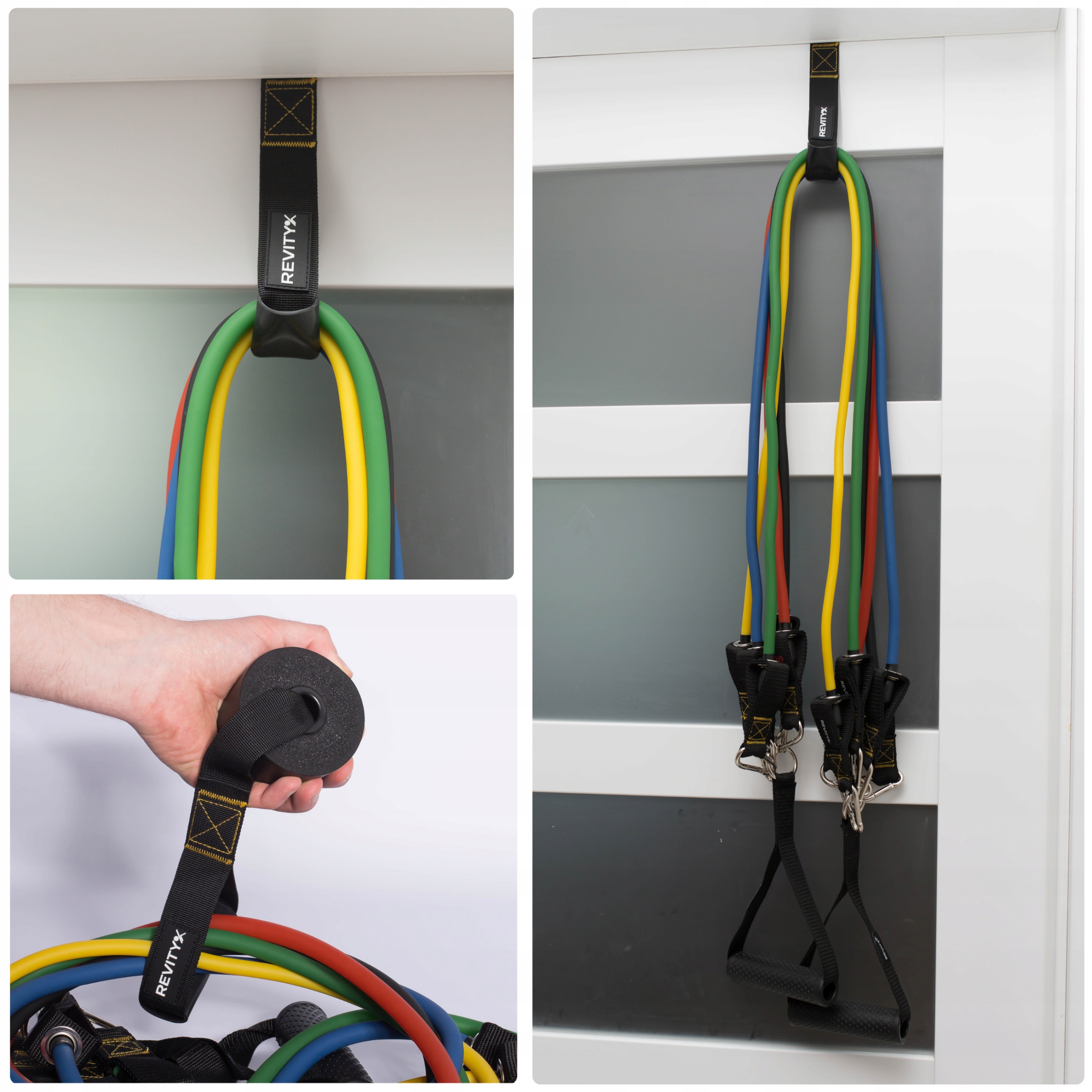 Kilka uchwytów jest przydatnych, gdy chcesz szybko wykonywać zmiany ćwiczeń, lub przepleść swój zestaw gum przez dwa lub nawet trzy uchwyty jednocześnie. Dzięki temu możesz stworzyć bramę i poszerzyć zakres zastosowania Twoich gum.