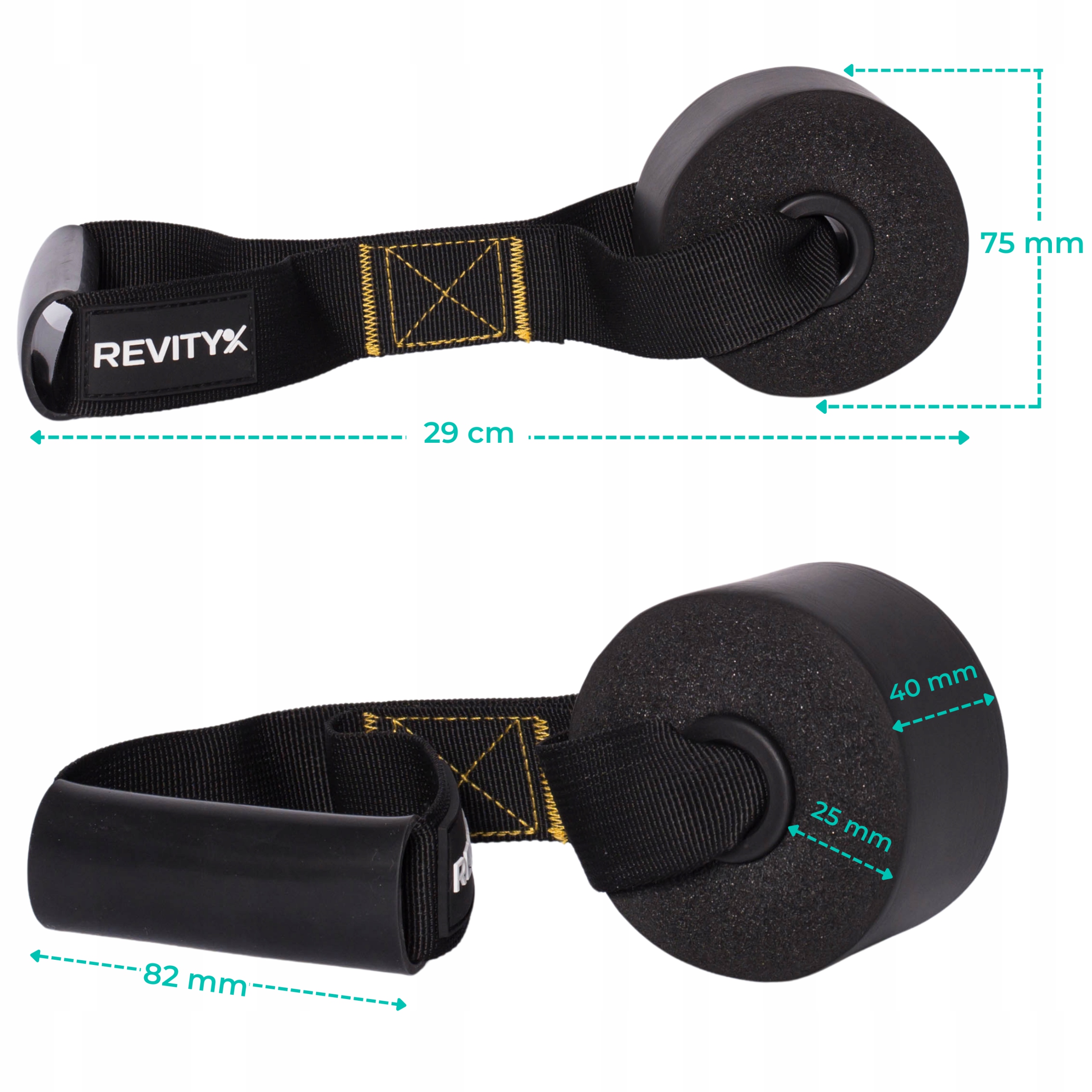 ✅ Uchwyt jest dodatkowo zabezpieczony dwoma solidnymi przeszyciami nićmi poliamidowymi, dzięki temu jego wytrzymałość w stosunku do rozwiązań konkurencji jest znacznie wyższa. Ćwiczenia z naszym uchwytem są znacznie bezpieczniejsze.