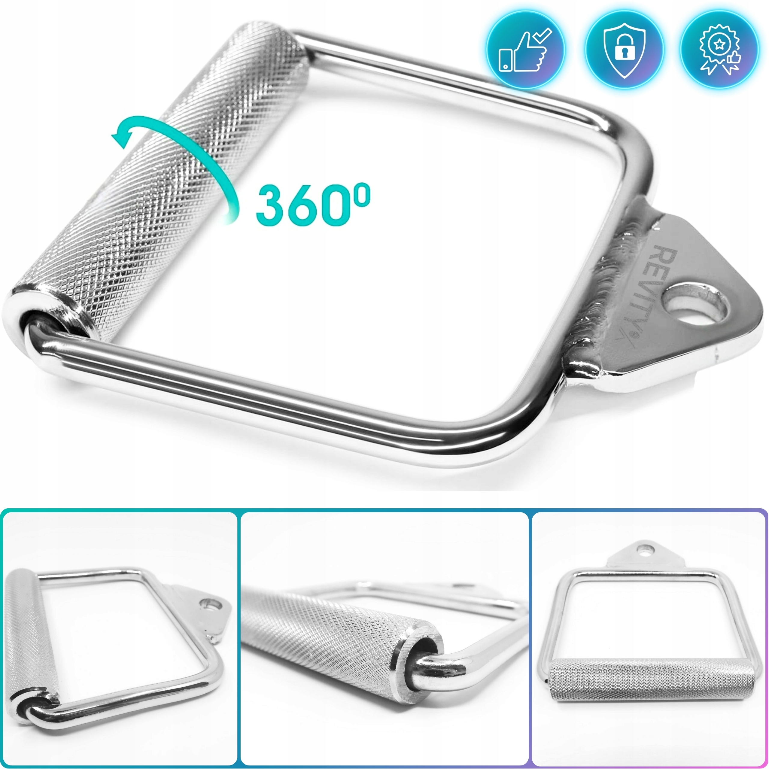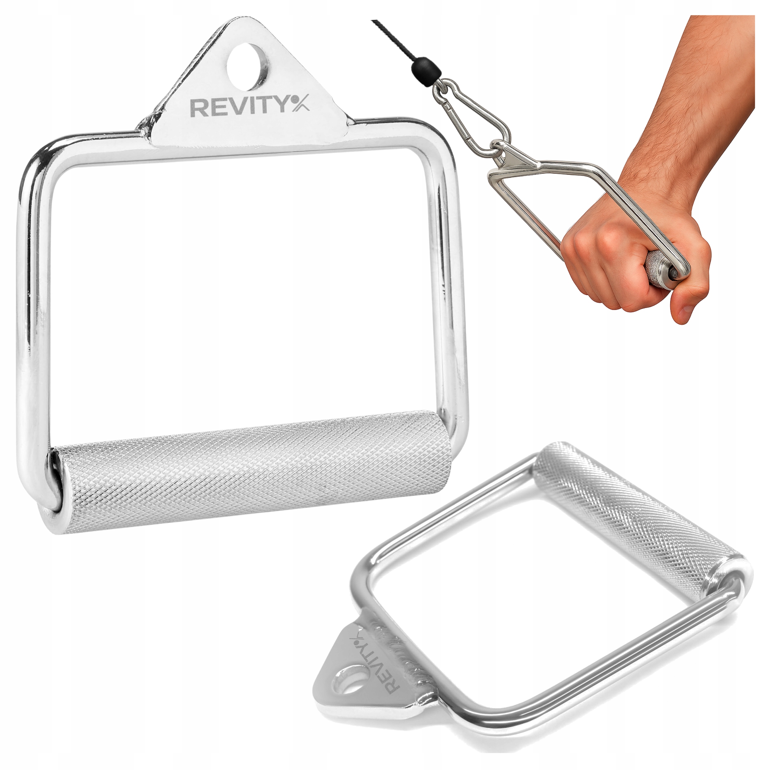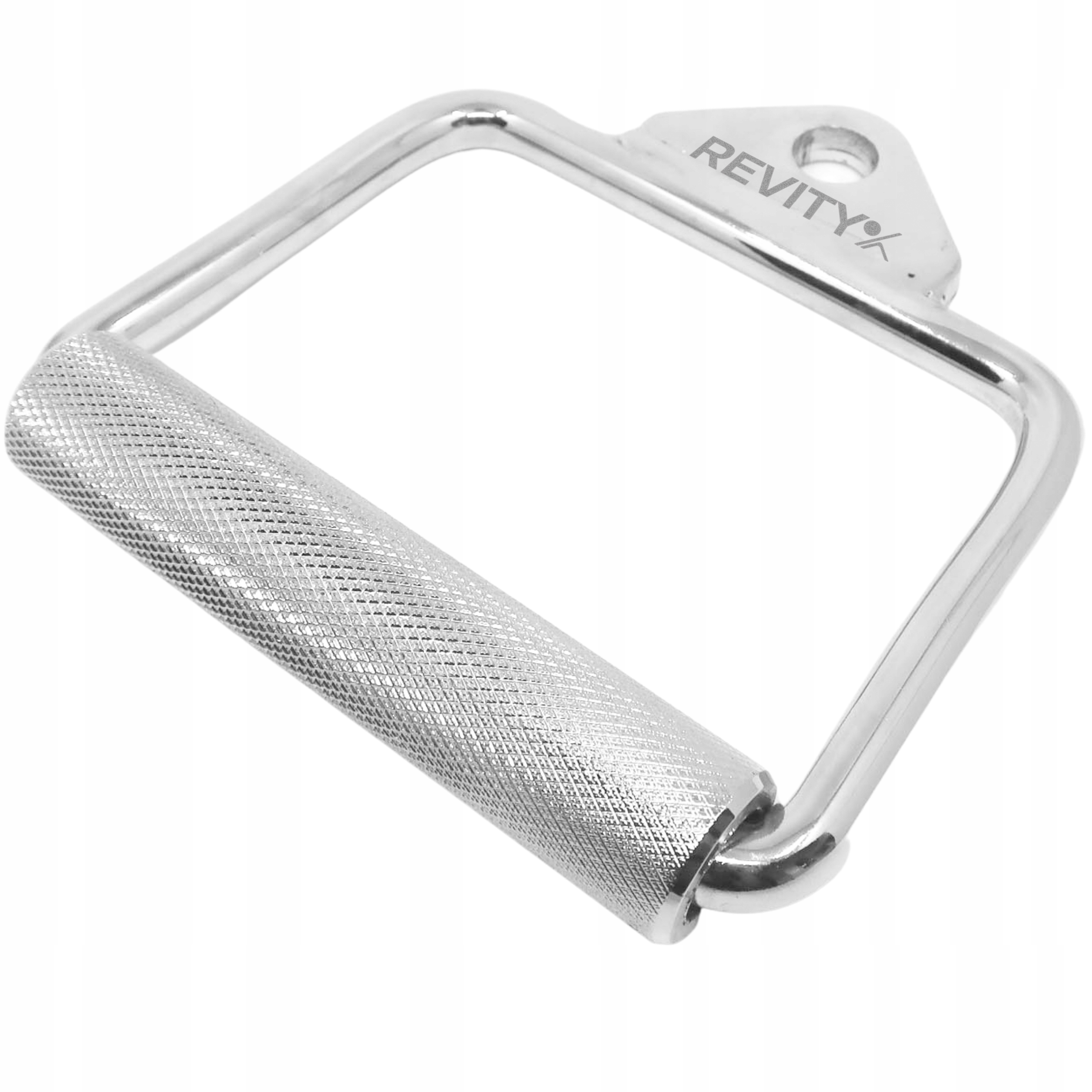 Stalowy uchwyt do wyciągu marki Revity to profesjonalne akcesorium treningowe przeznaczone do użytku z maszynami siłowymi wyposażonymi w system wyciągu górnego lub dolnego. Umożliwia wykonywanie szeregu ćwiczeń wzmacniających górne i środkowe partie ciała. Dzięki swojej konstrukcji zapewnia wygodny, bezpieczny i stabilny chwyt, nawet przy dużych obciążeniach. Obrotowa rączka 360° i radełkowanie zapewnia maksymalny komfort podczas ćwiczeń. Jest to niezbędny element wyposażenia każdej domowej i profesjonalnej siłowni, który pozwala zróżnicować trening i poprawić jego efektywność.