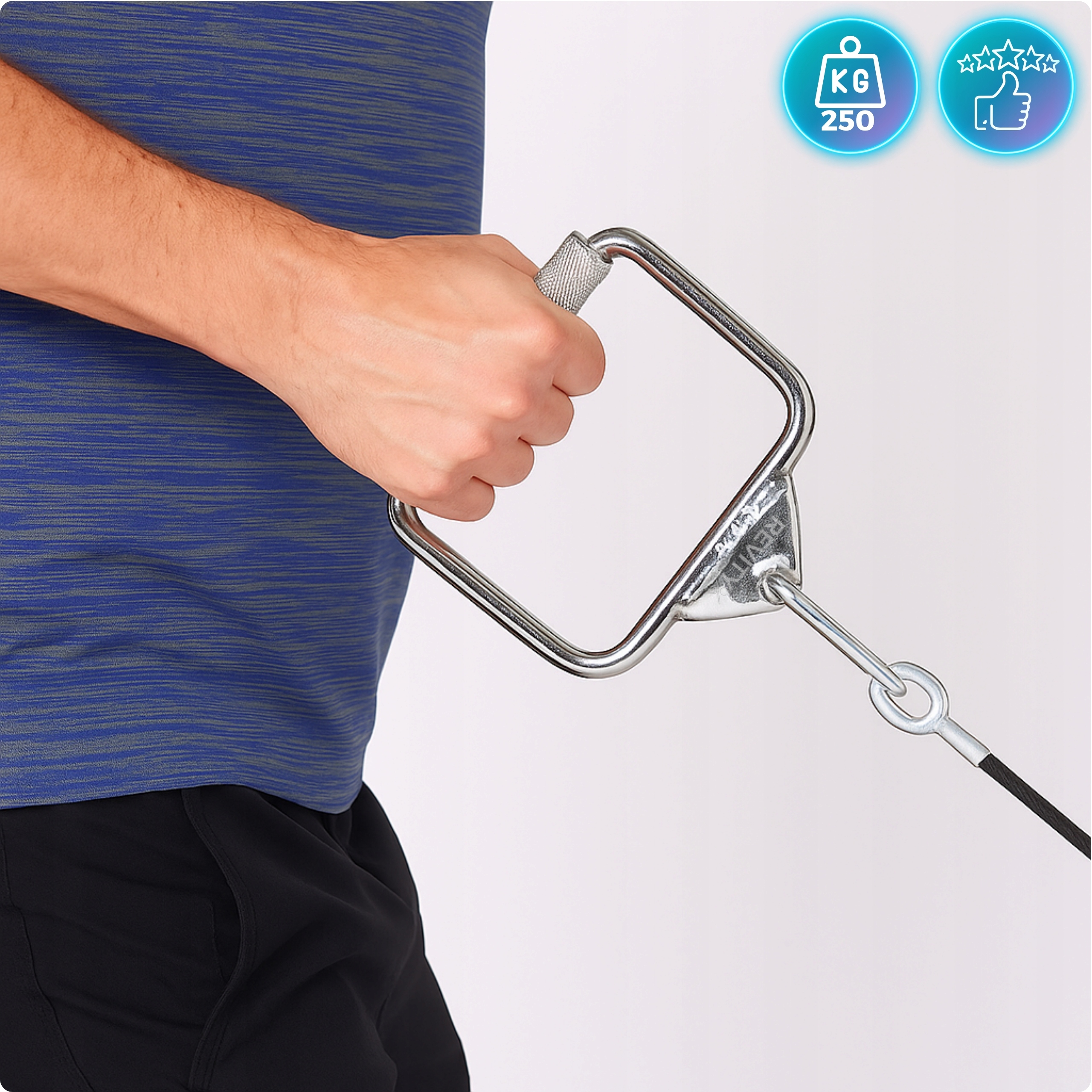 ✅ UNIWERSALNOŚĆ ZASTOSOWANIA. Pasuje do każdego standardowego wyciągu – dolnego i górnego – wyposażonego w karabińczyk. Idealny do ćwiczeń na plecy, ramiona, biceps, triceps i barki.