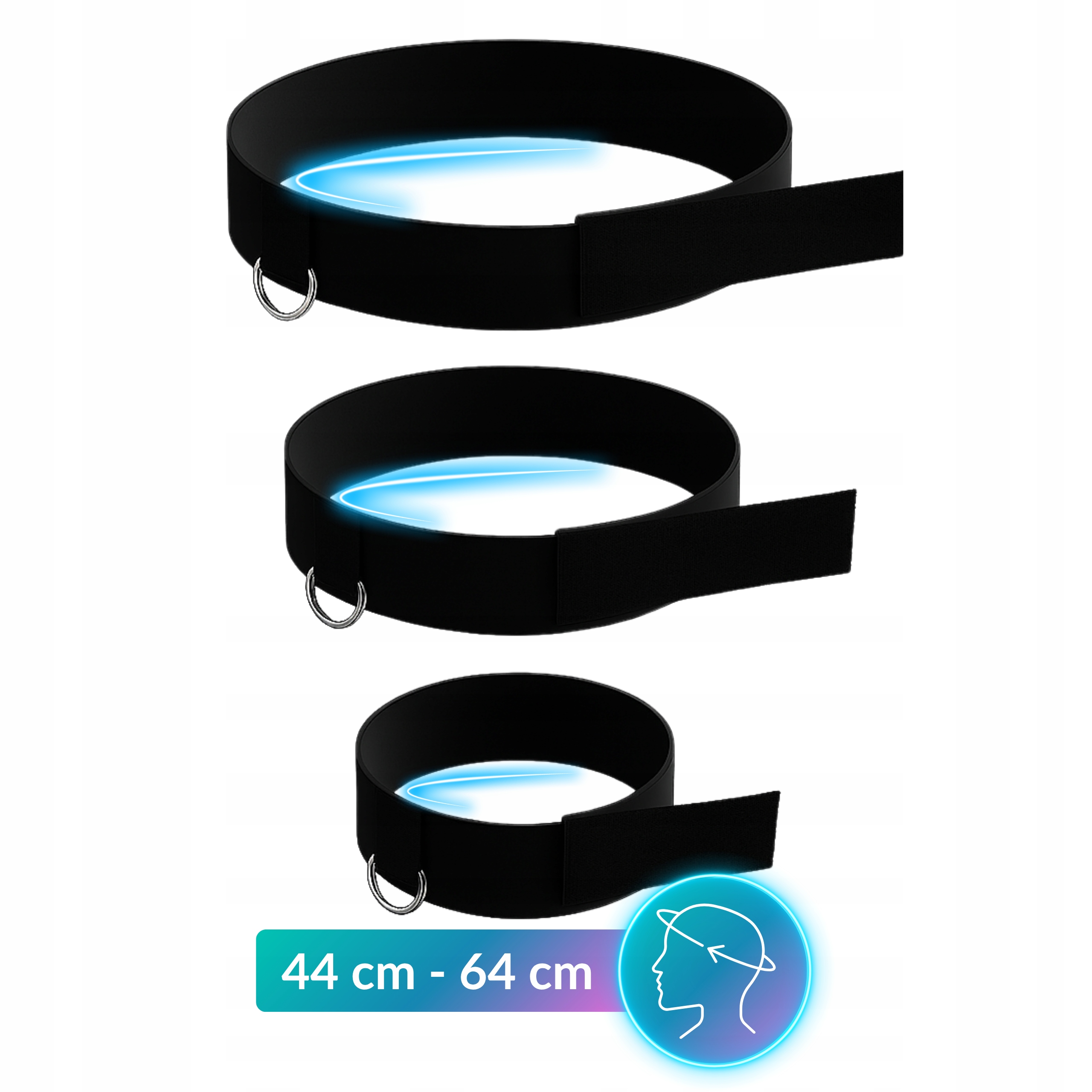 ✅ REGULOWANA OPASKA NA GŁOWĘ – komfort i stabilność. Miękka i przyjemna w dotyku, szeroka opaska (44–64 cm obwodu) zapinana na rzep idealnie dopasowuje się do każdej głowy. Solidne mocowanie D-ring gwarantuje bezpieczeństwo podczas intensywnych sesji.
